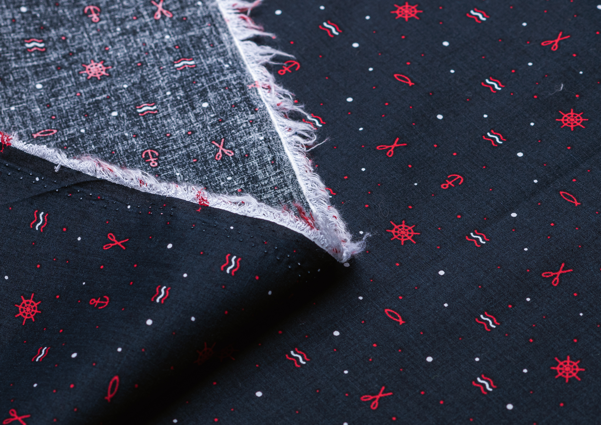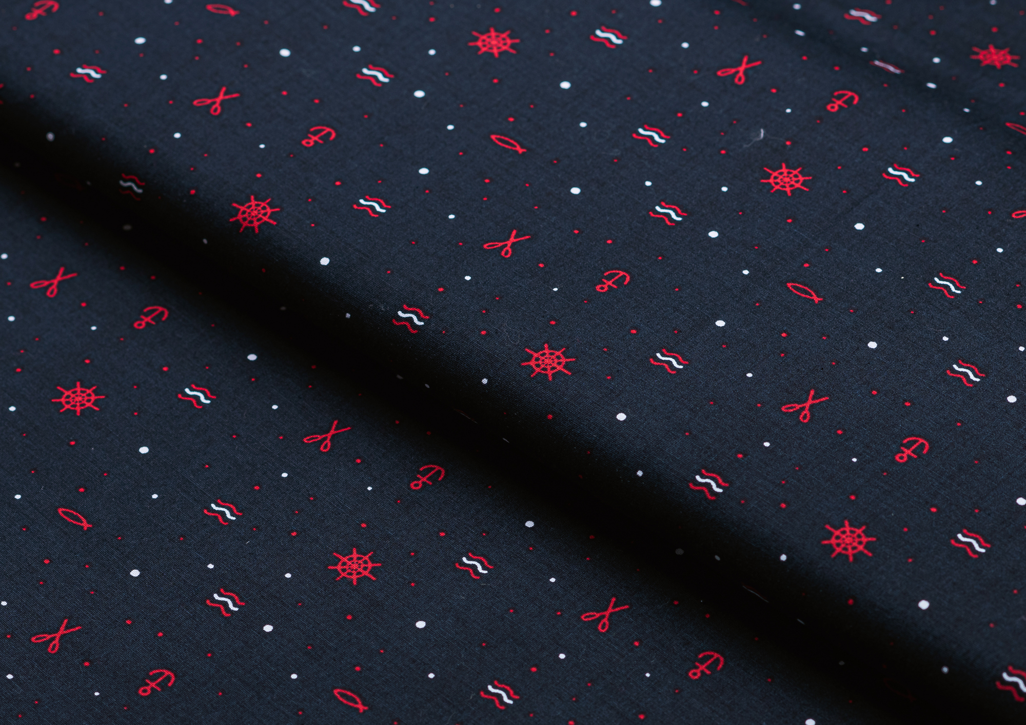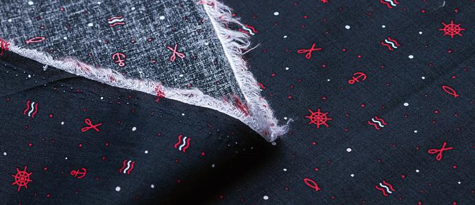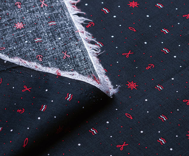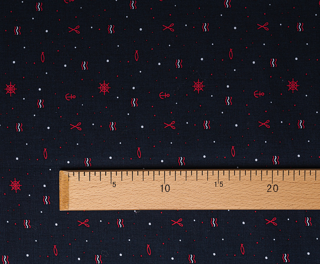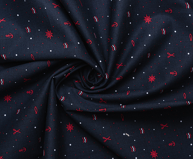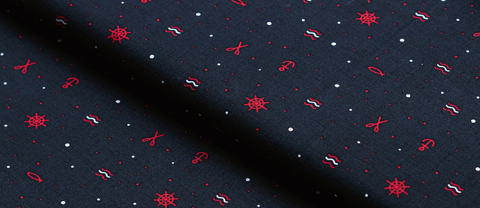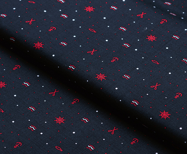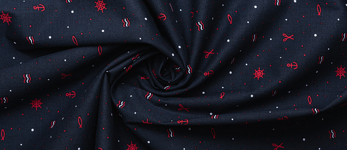 Ткань поплин стрейч принт "Штурвалы "