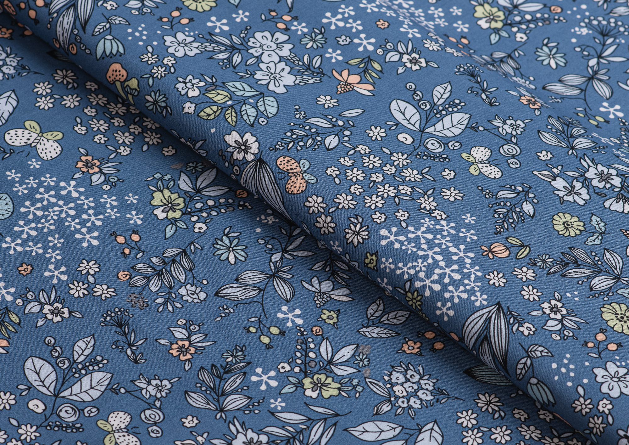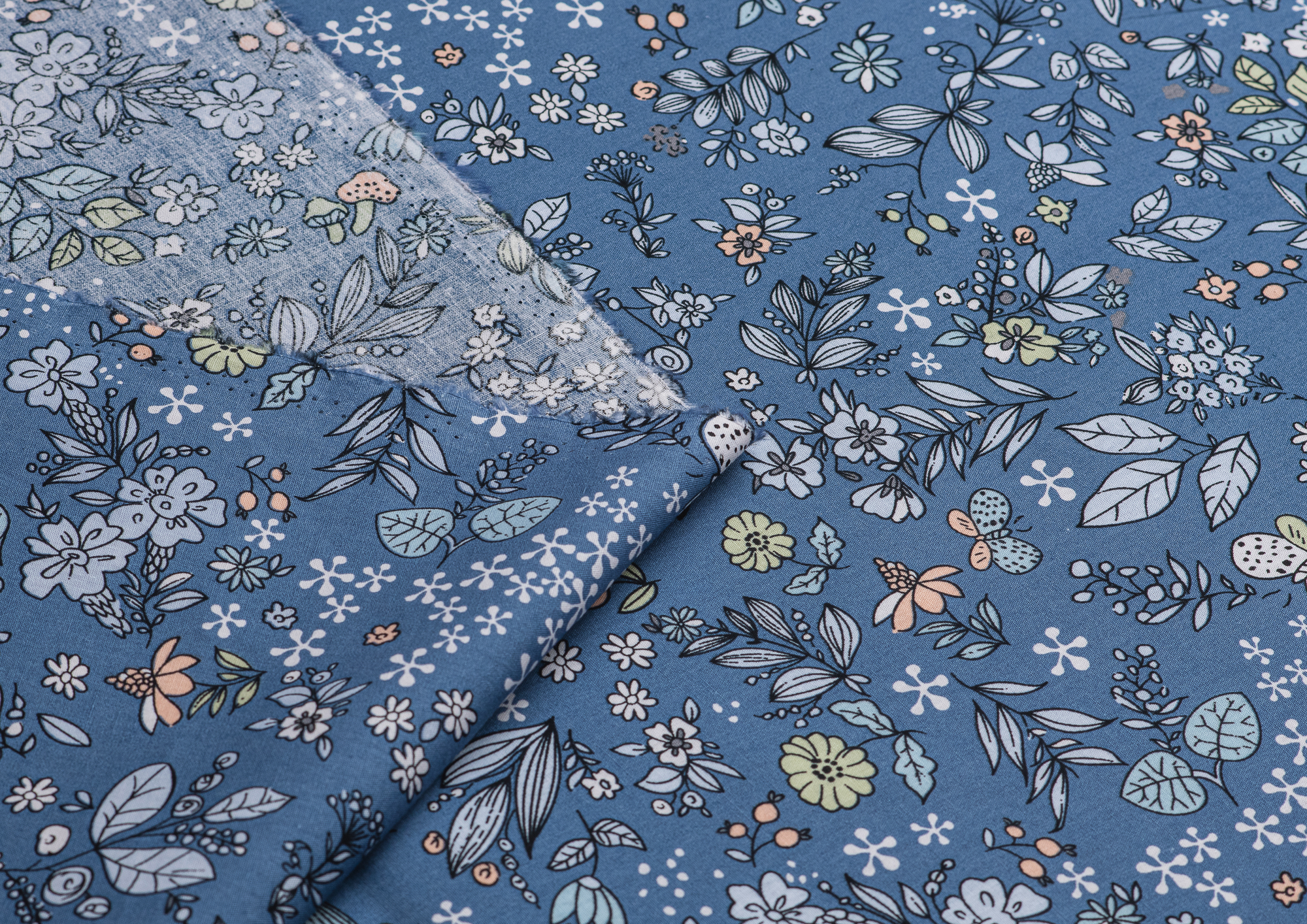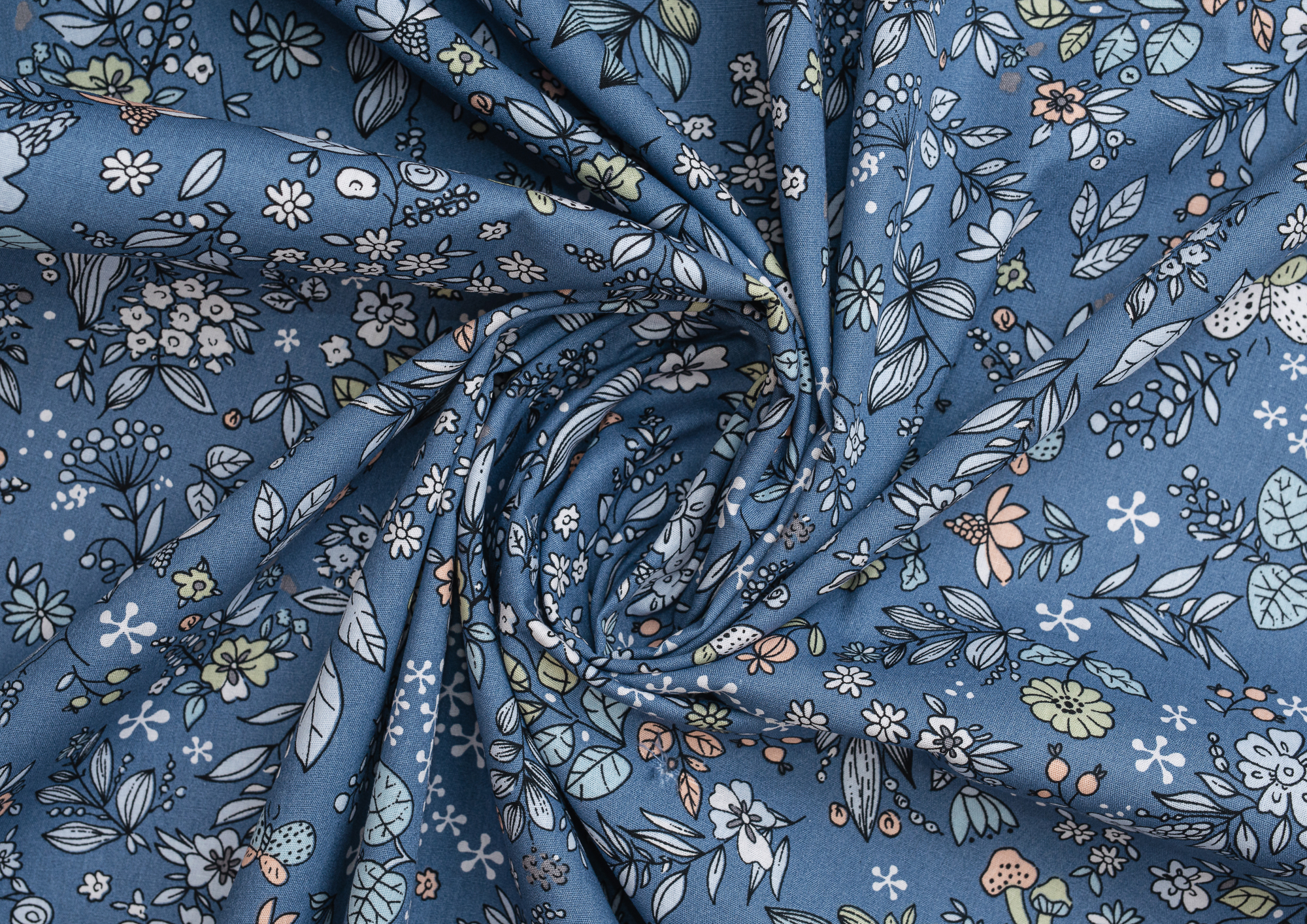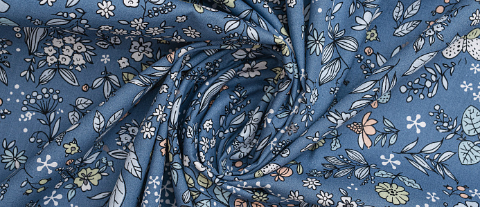 Хлопковая , средней плотности ткань с эластаном. По всей поверхности полотна расположен растительны принт. Ткань тонкая, при этом прочная , хорошо держит форму . Отлично подходит для пошива платьев , сарафанов , мужских и женских рубашек .