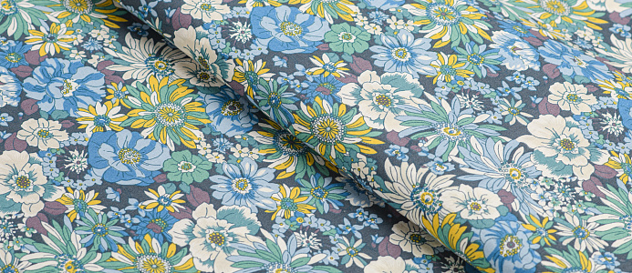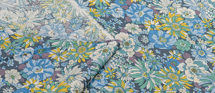 Хлопковая плотная ткань по всей поверхности которой расположен мелкий цветочный принт. Материал тонкий, эластичный, но при этом прочный и формоустойчивый. Подходит для пошива легких блуз и рубашек, платьев и сарафанов.