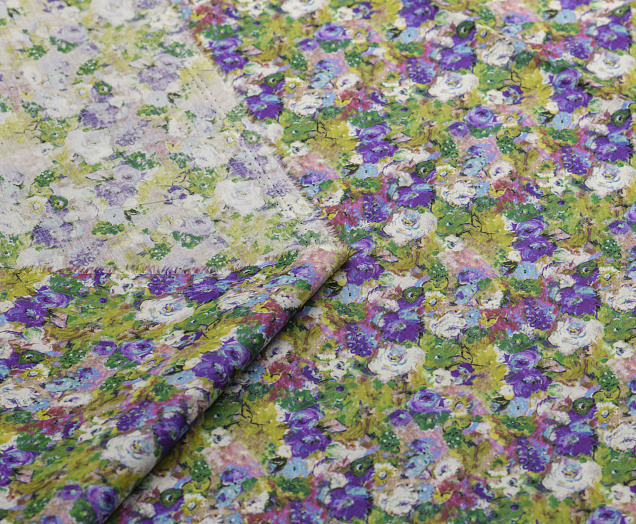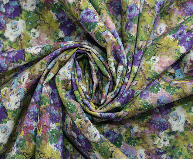 Хлопковая, средней плотности ткань с эластаном. По всей поверхности полотна расположен принт. Ткань тонкая, при этом прочная, хорошо держит форму. Отлично подходит для пошива платьев, сарафанов, мужских и женских рубашек .