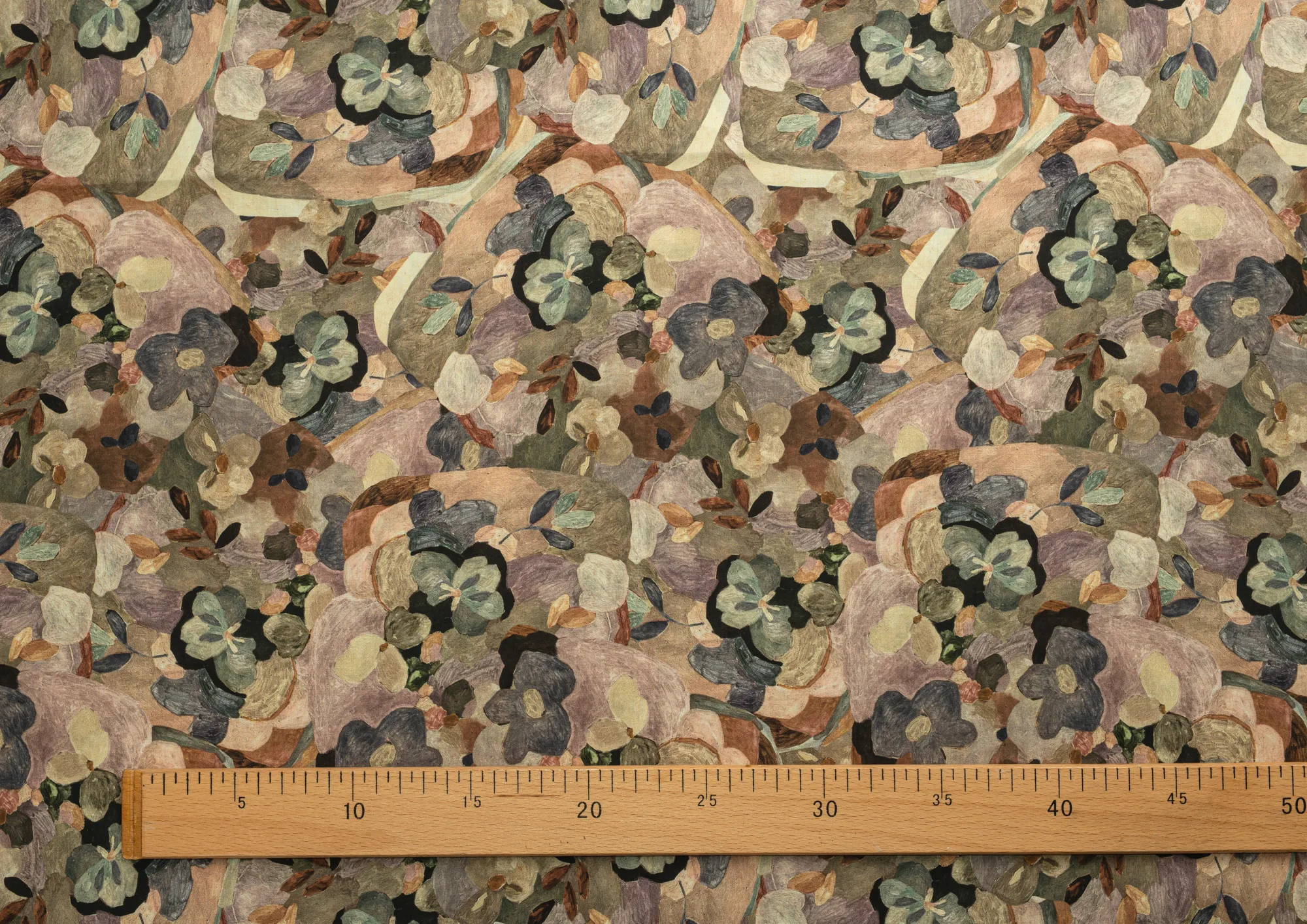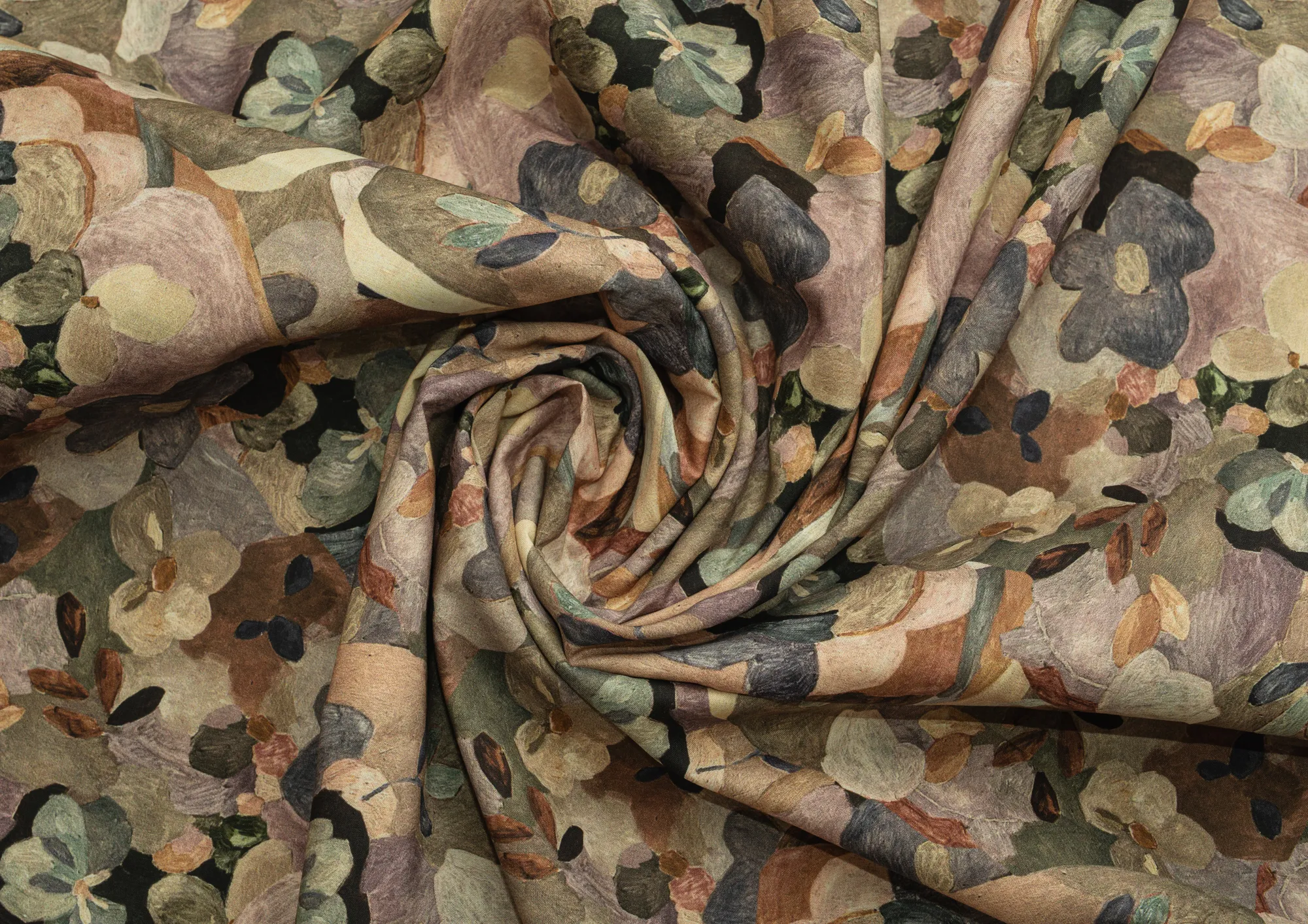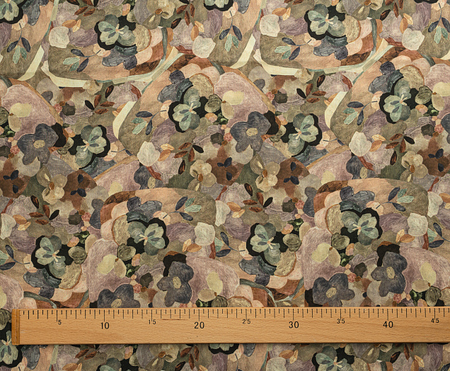 Ткань Поплин стрейч принт Зеленые цветы