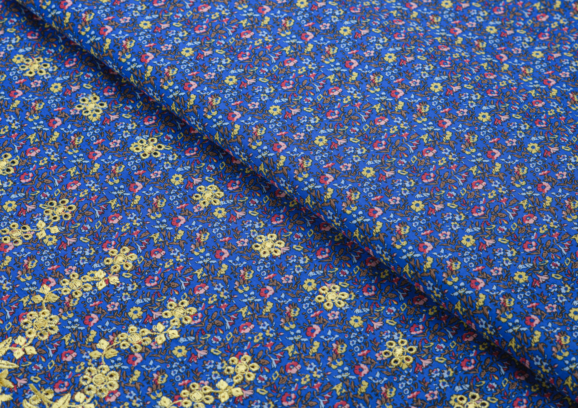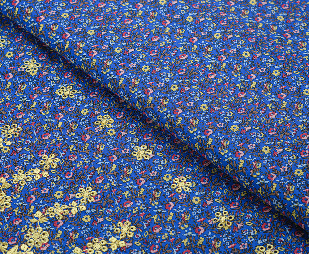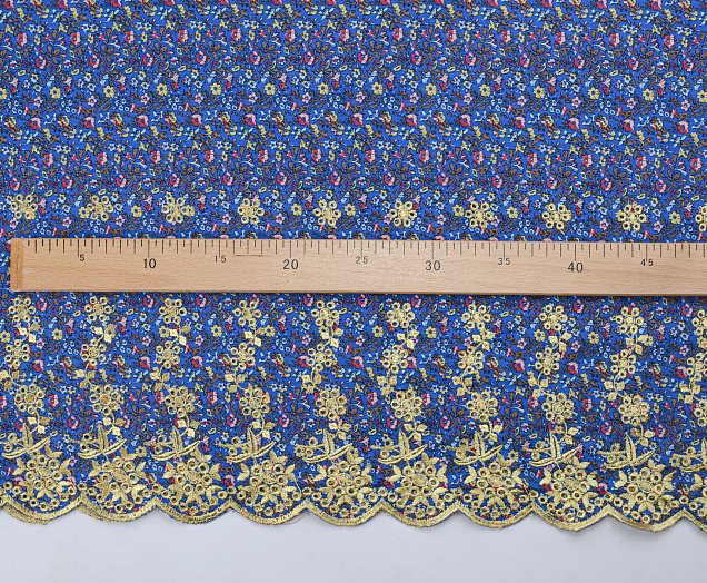 Ткань поплин вышивка №1 синий