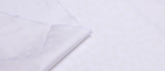 Тонкая , натуральная , слегка эластичная ткань. По всей поверхности нанесен мелкий жаккардовый принт . Ткань дышит , хорошо пропускает воздух , отличается повышенной теплопроводностью. Подходит для пошива женских и мужских рубашек, сарафанов , платьев.