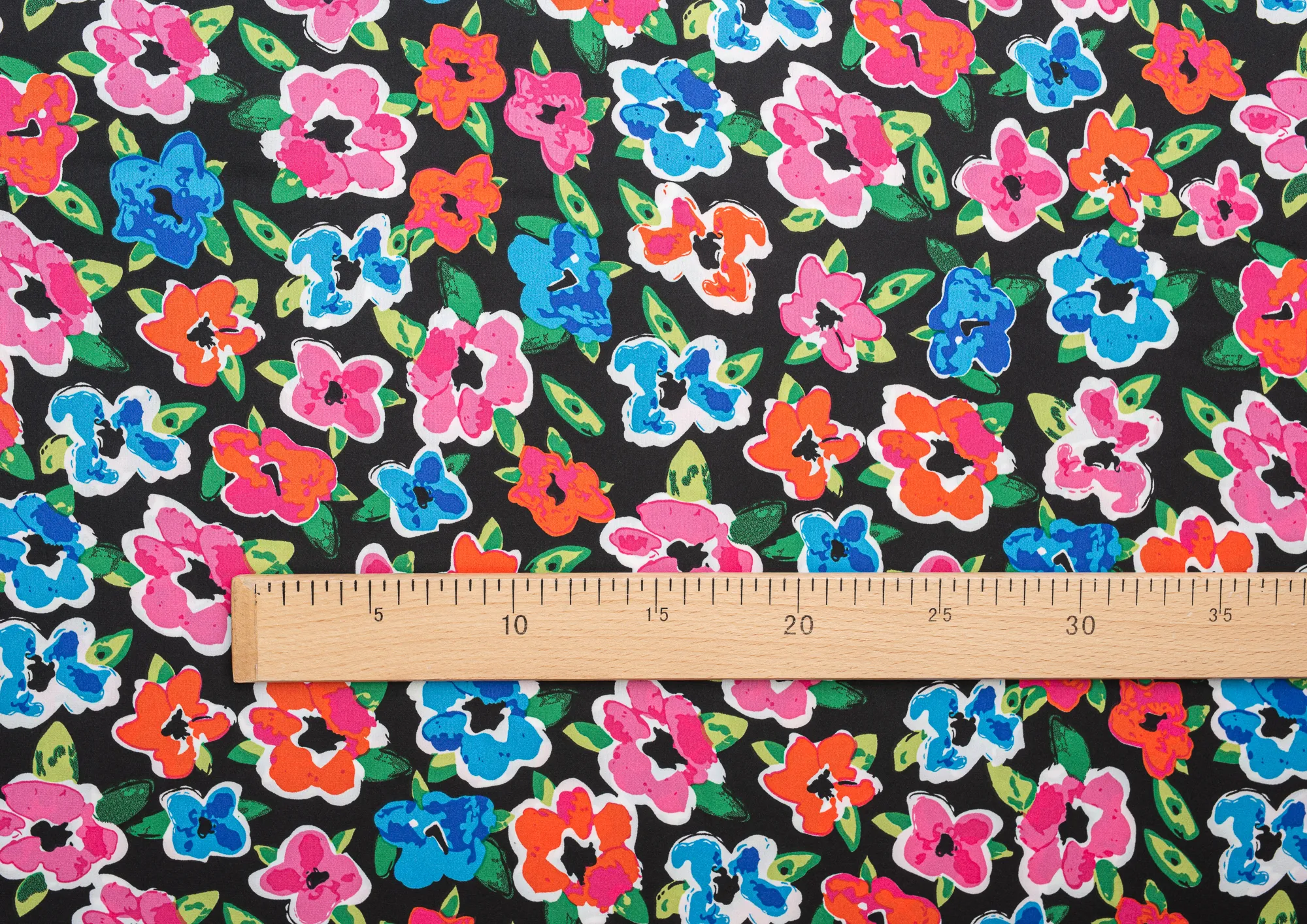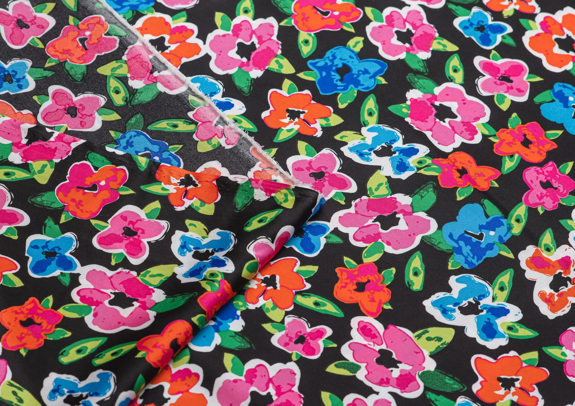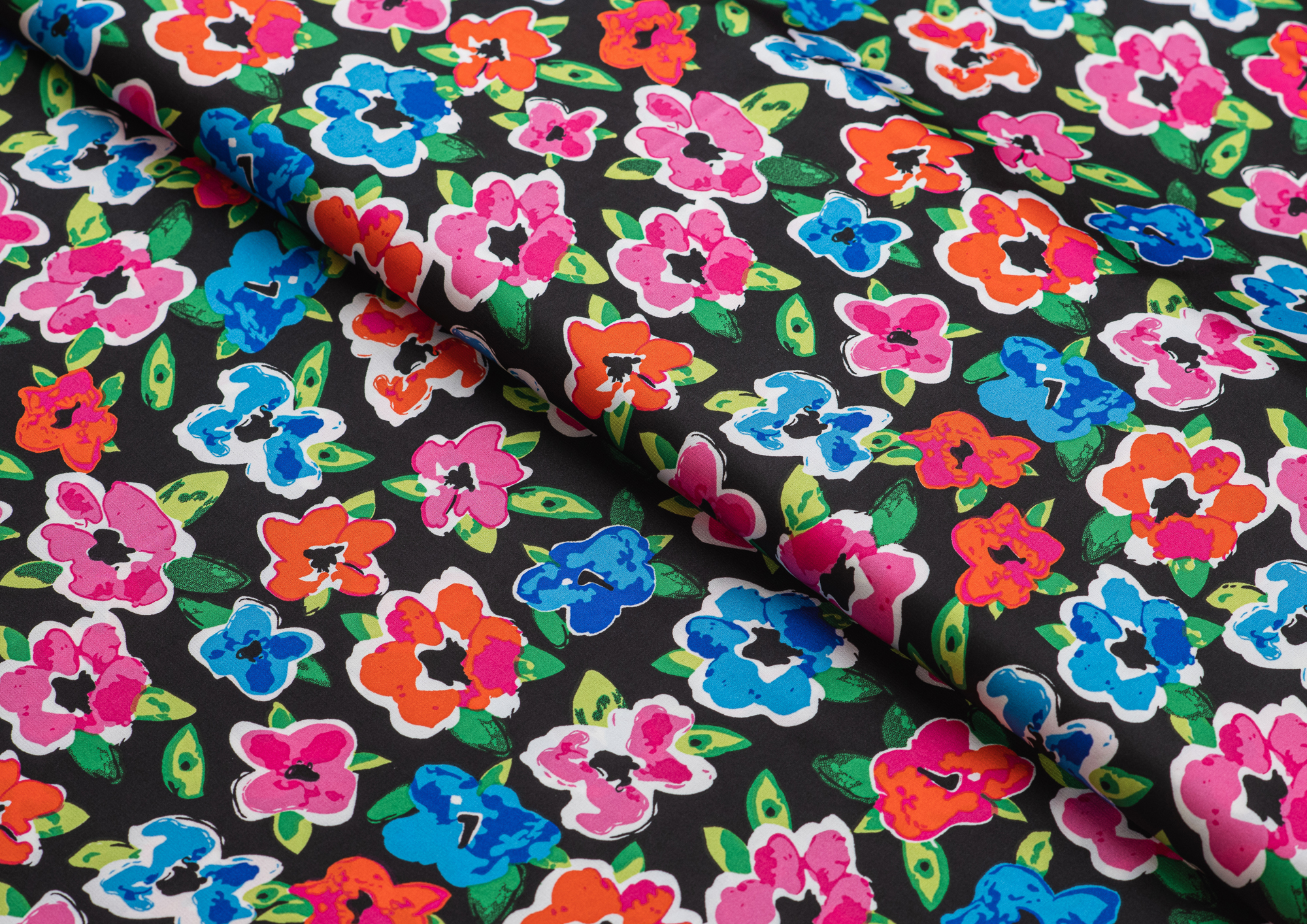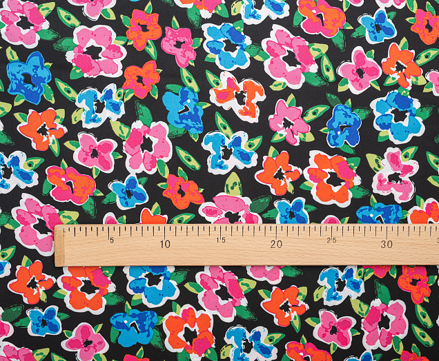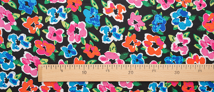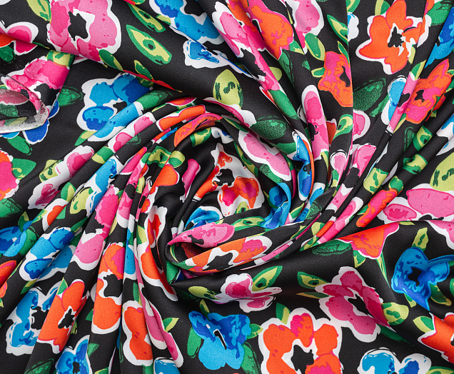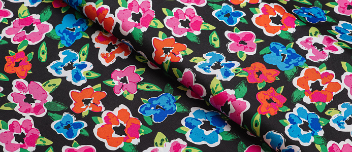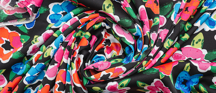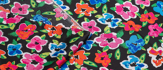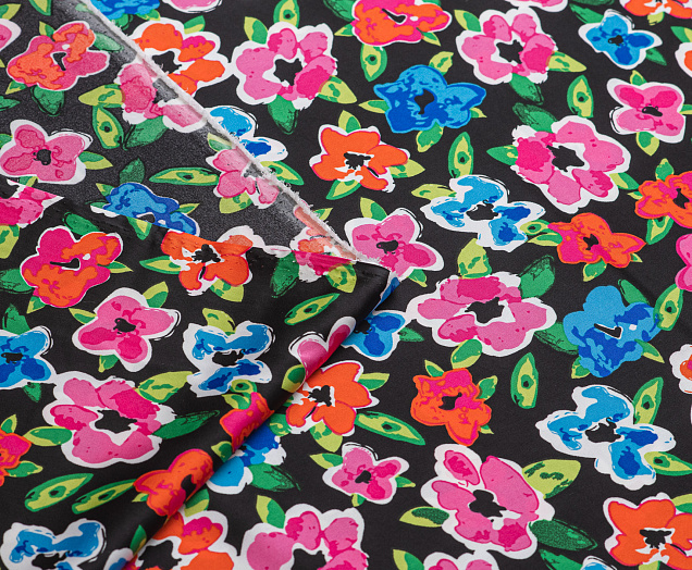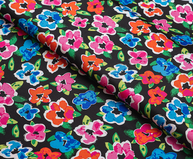 Ткань шелк Бавария принт № 18 Розово-синие цветы