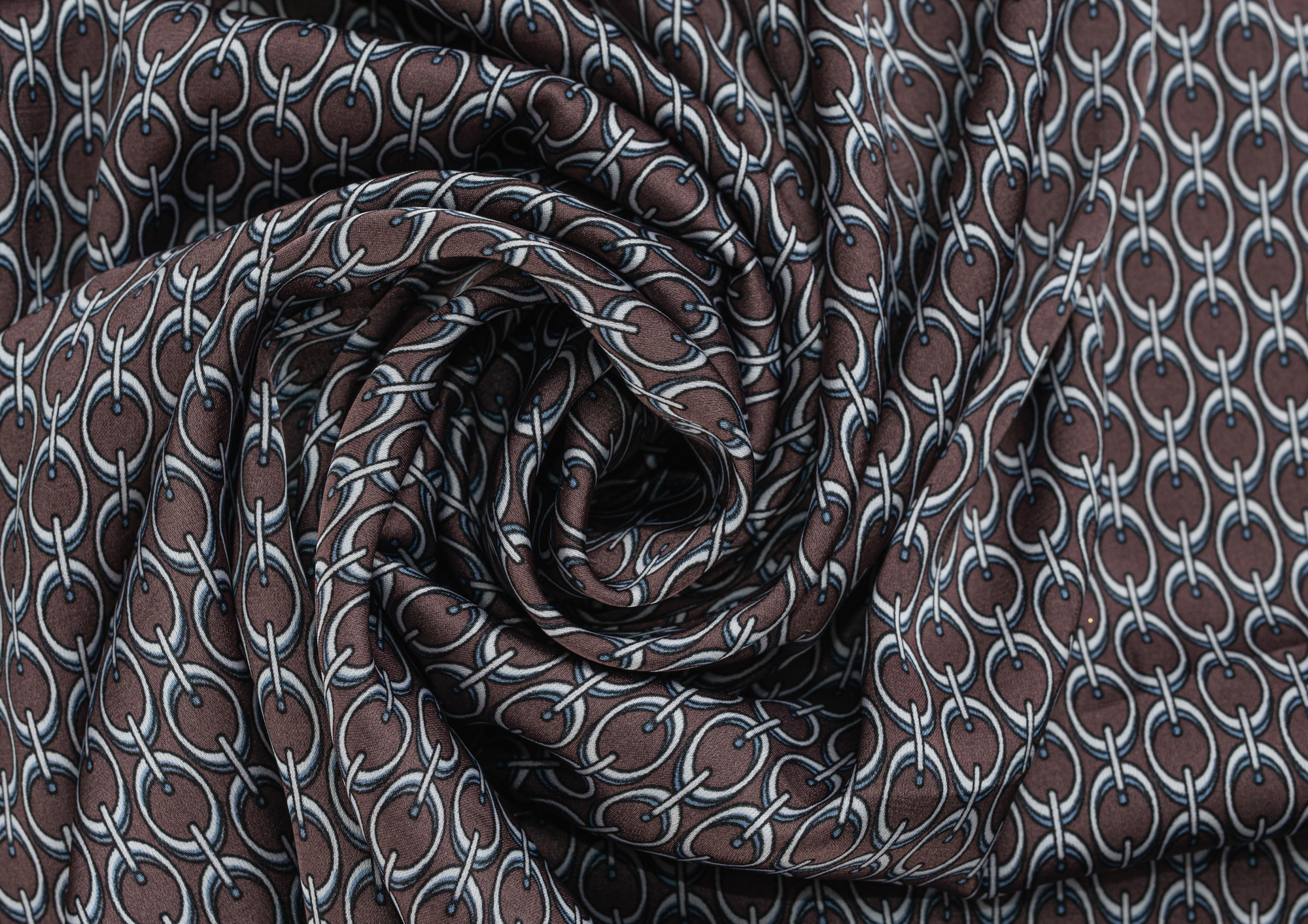 Ткань шелк Бавария принт № 54 Цепочка на коричневом