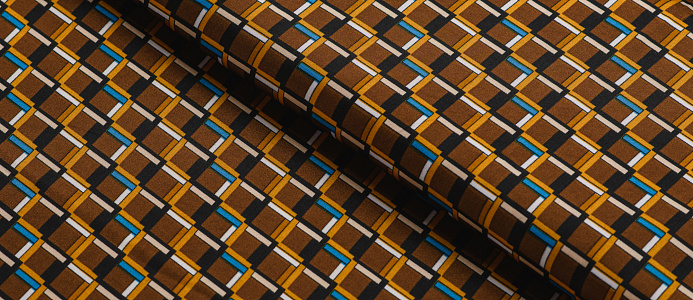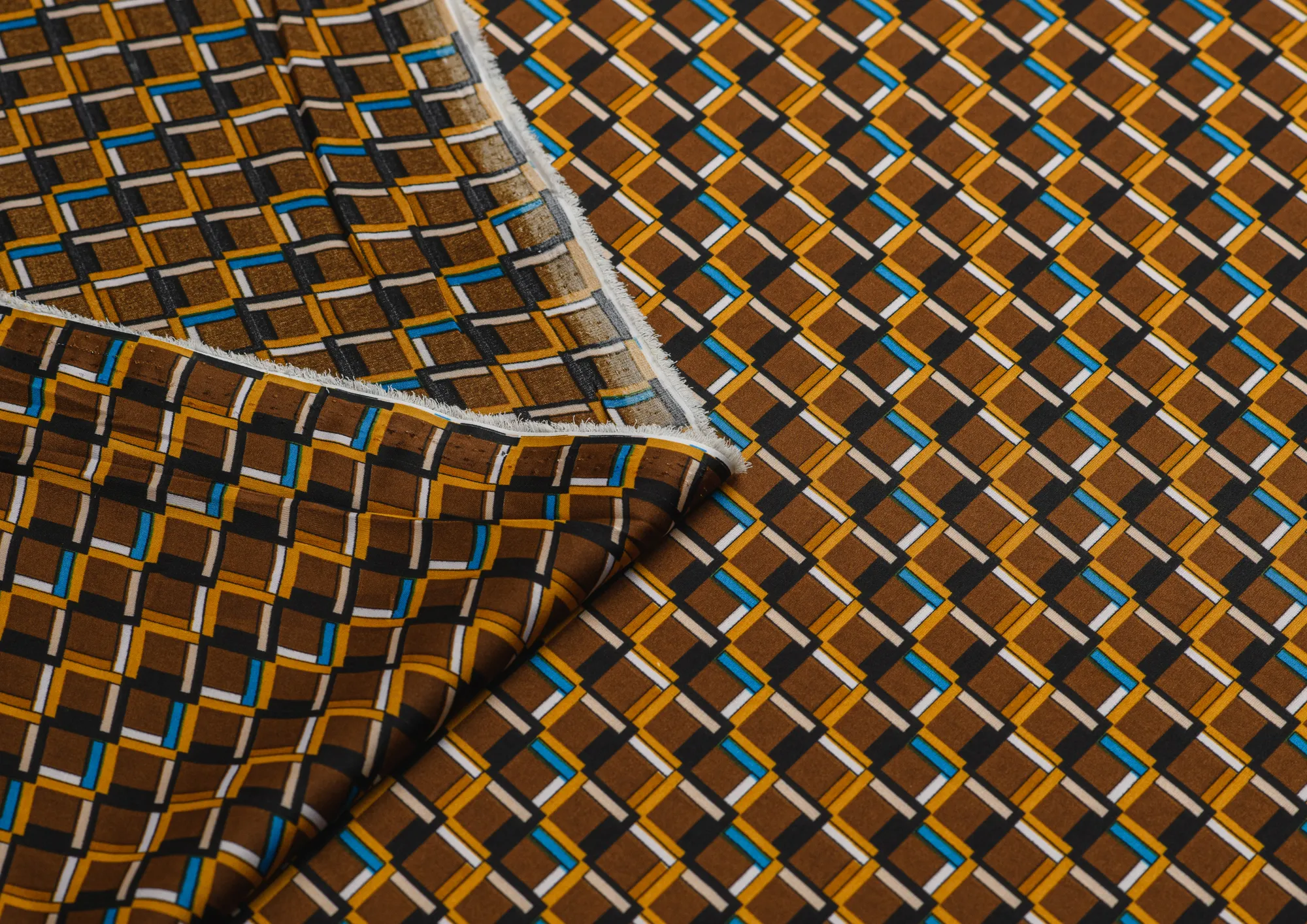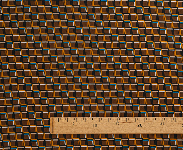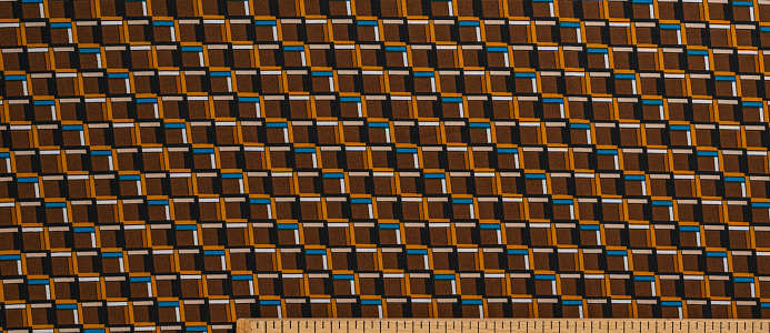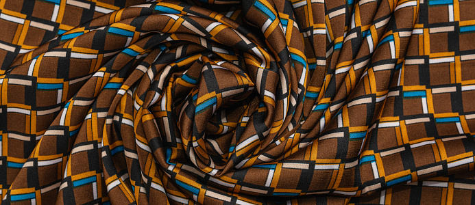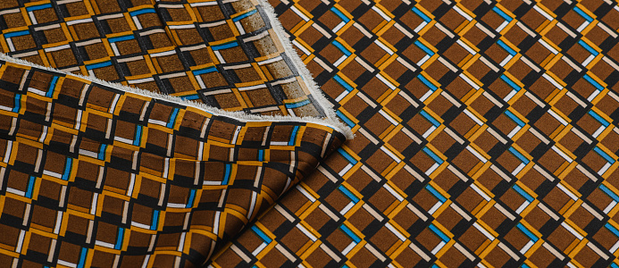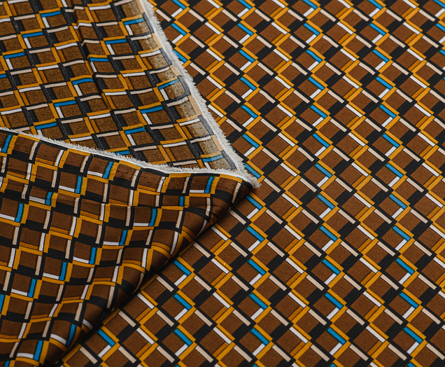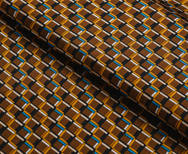 Ткань шелк Бавария принт № 55 Квадраты желто-синие