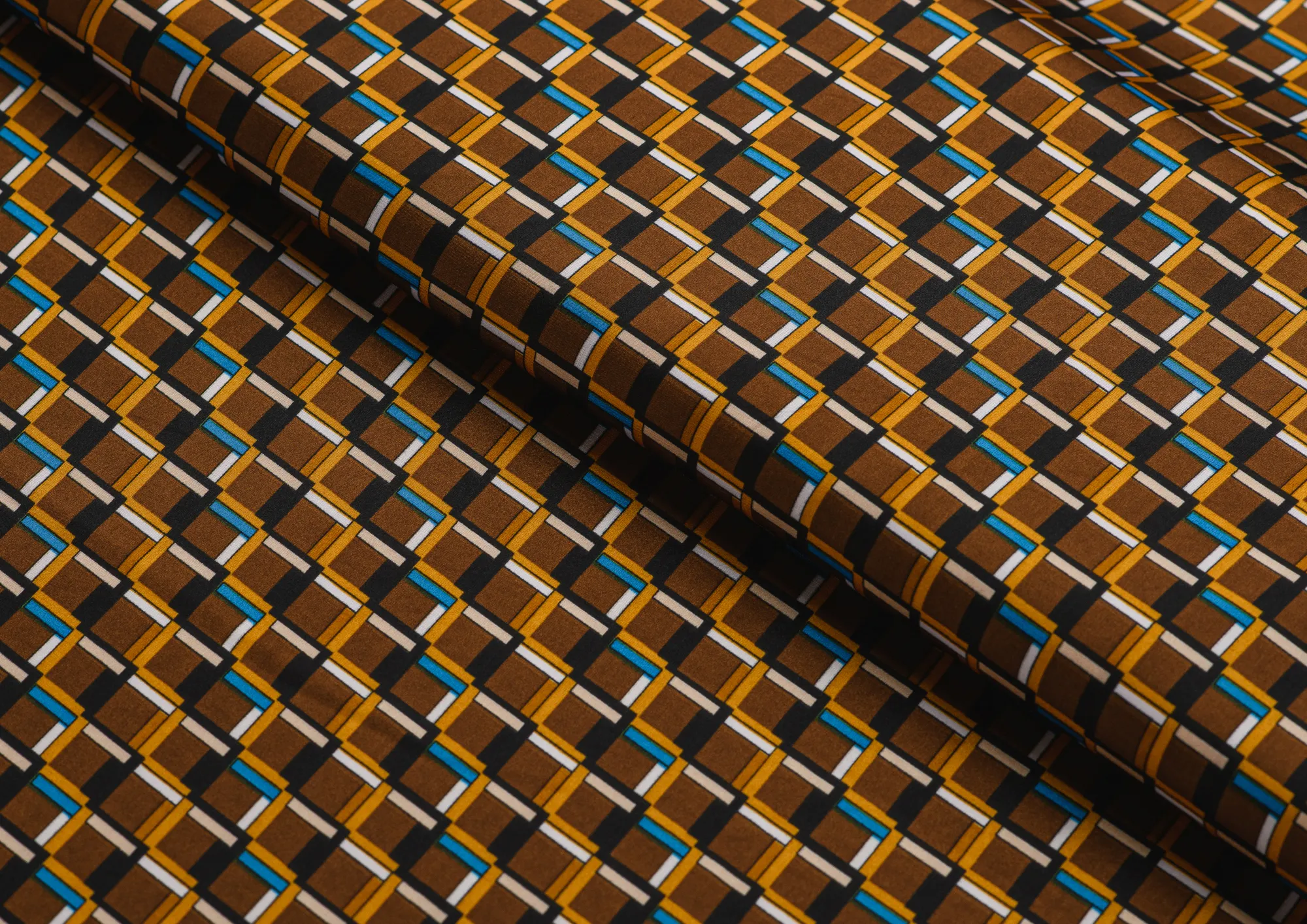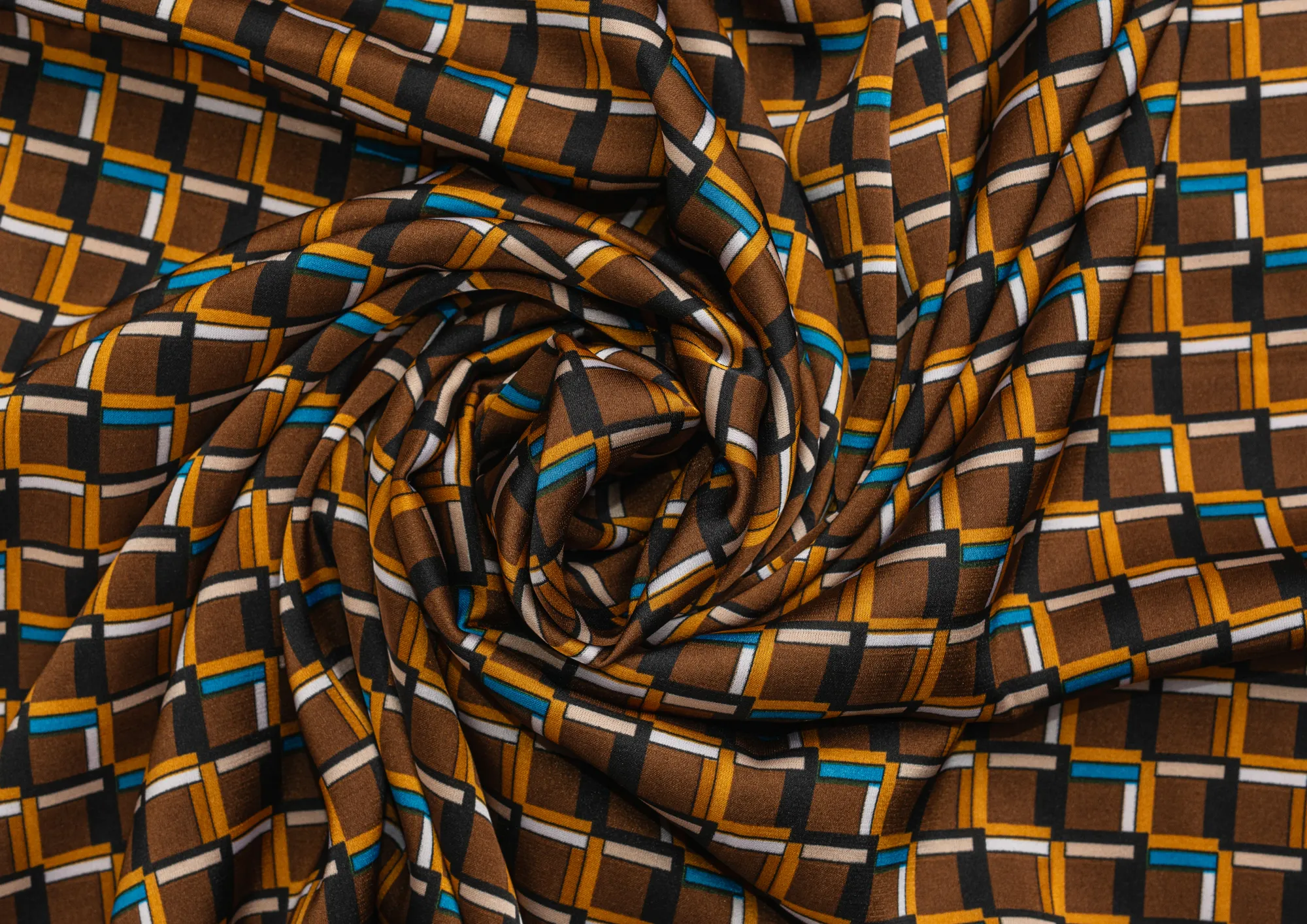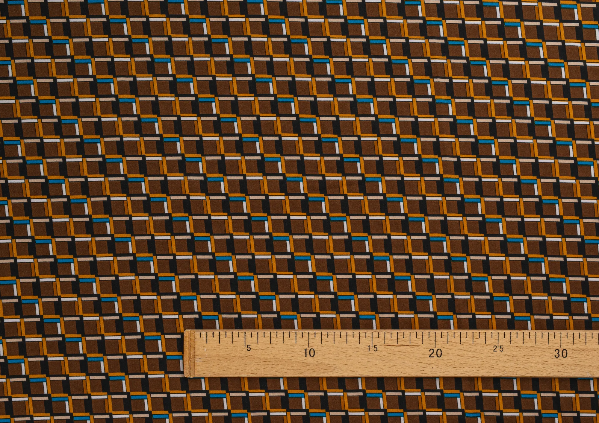 Ткань шелк Бавария принт № 55 Квадраты желто-синие