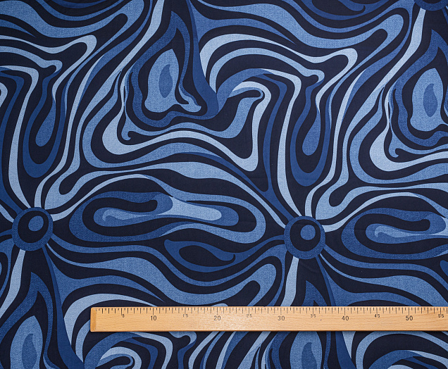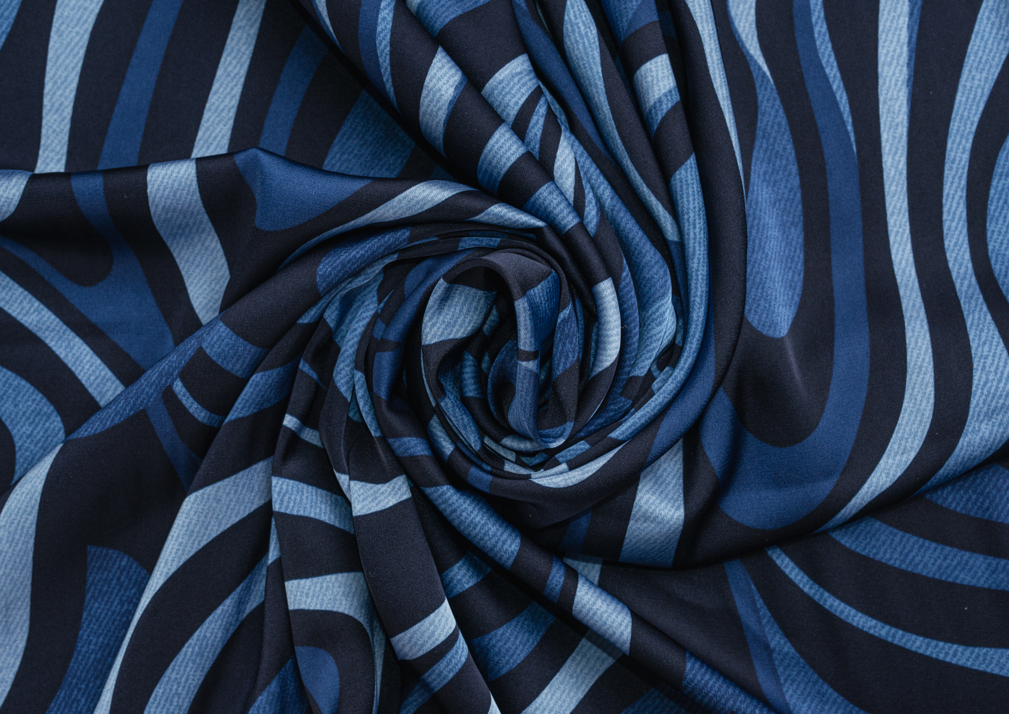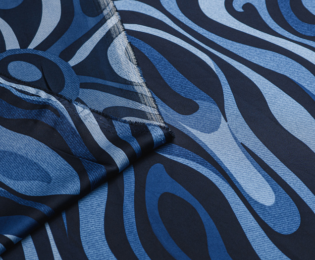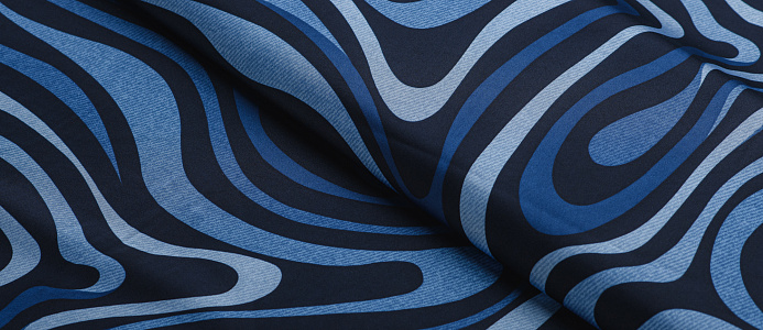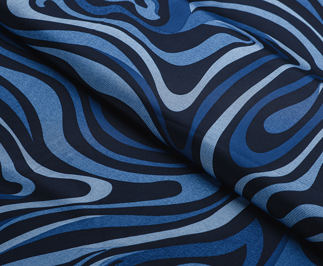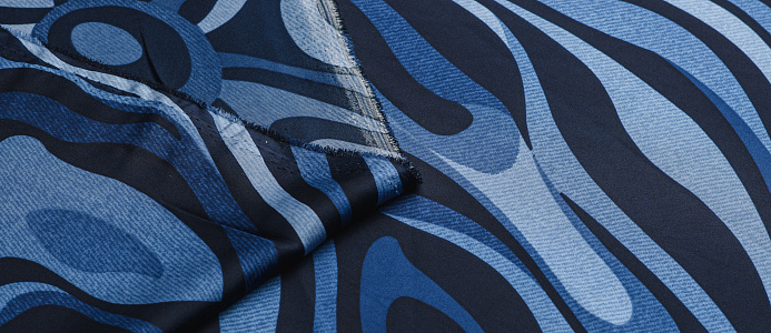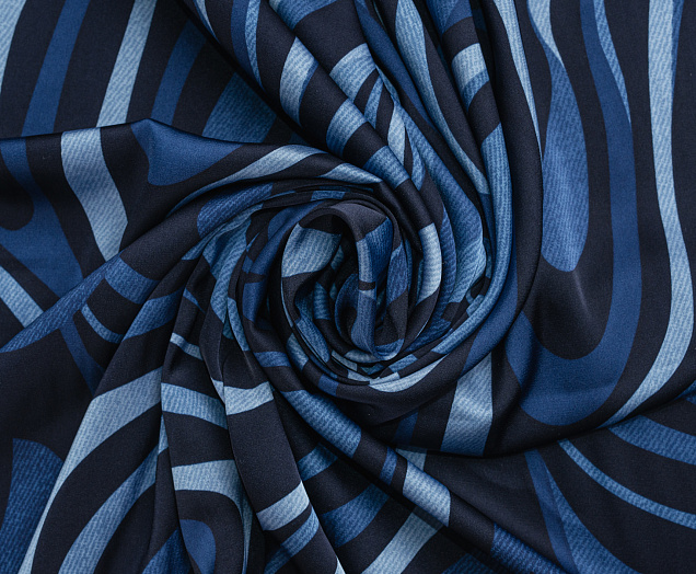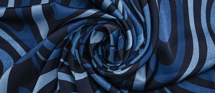 Ткань шелк Бавария принт № 61 Абстракция черно-синяя