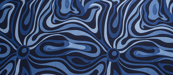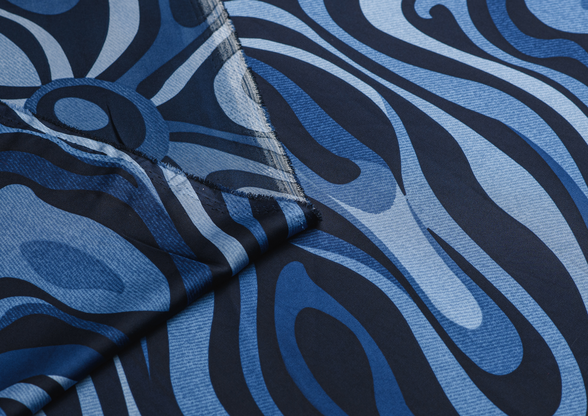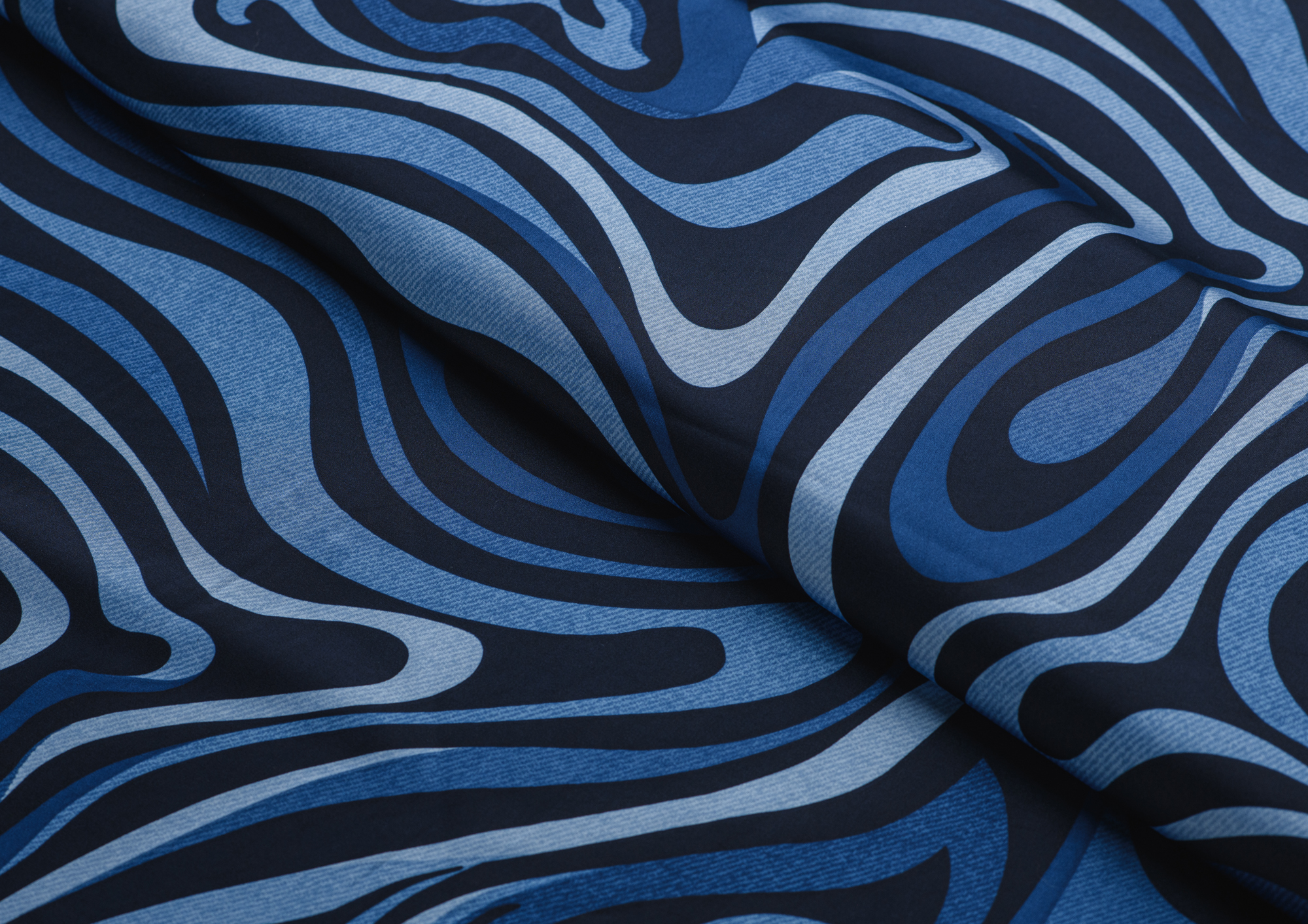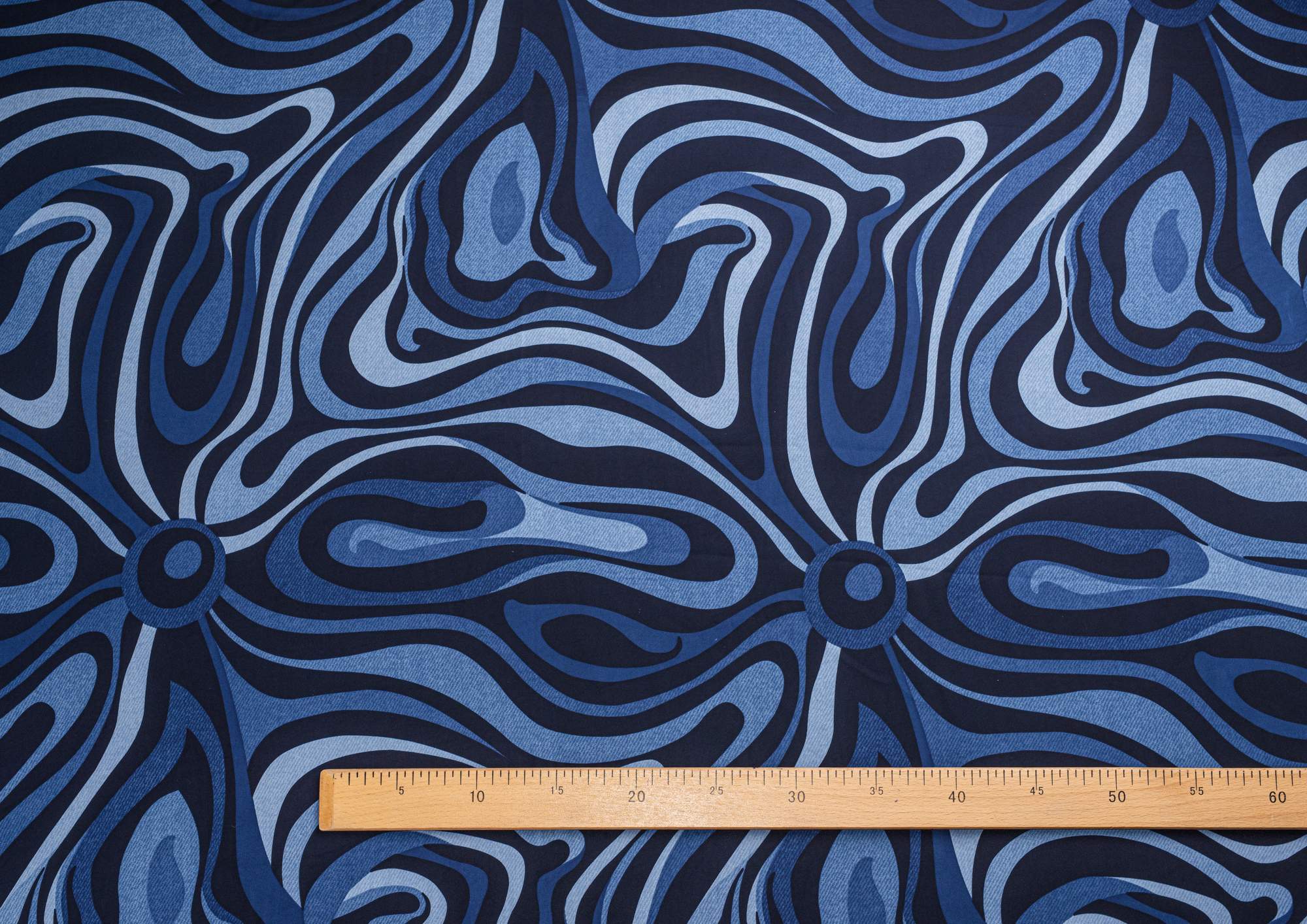 Ткань шелк Бавария принт № 61 Абстракция черно-синяя