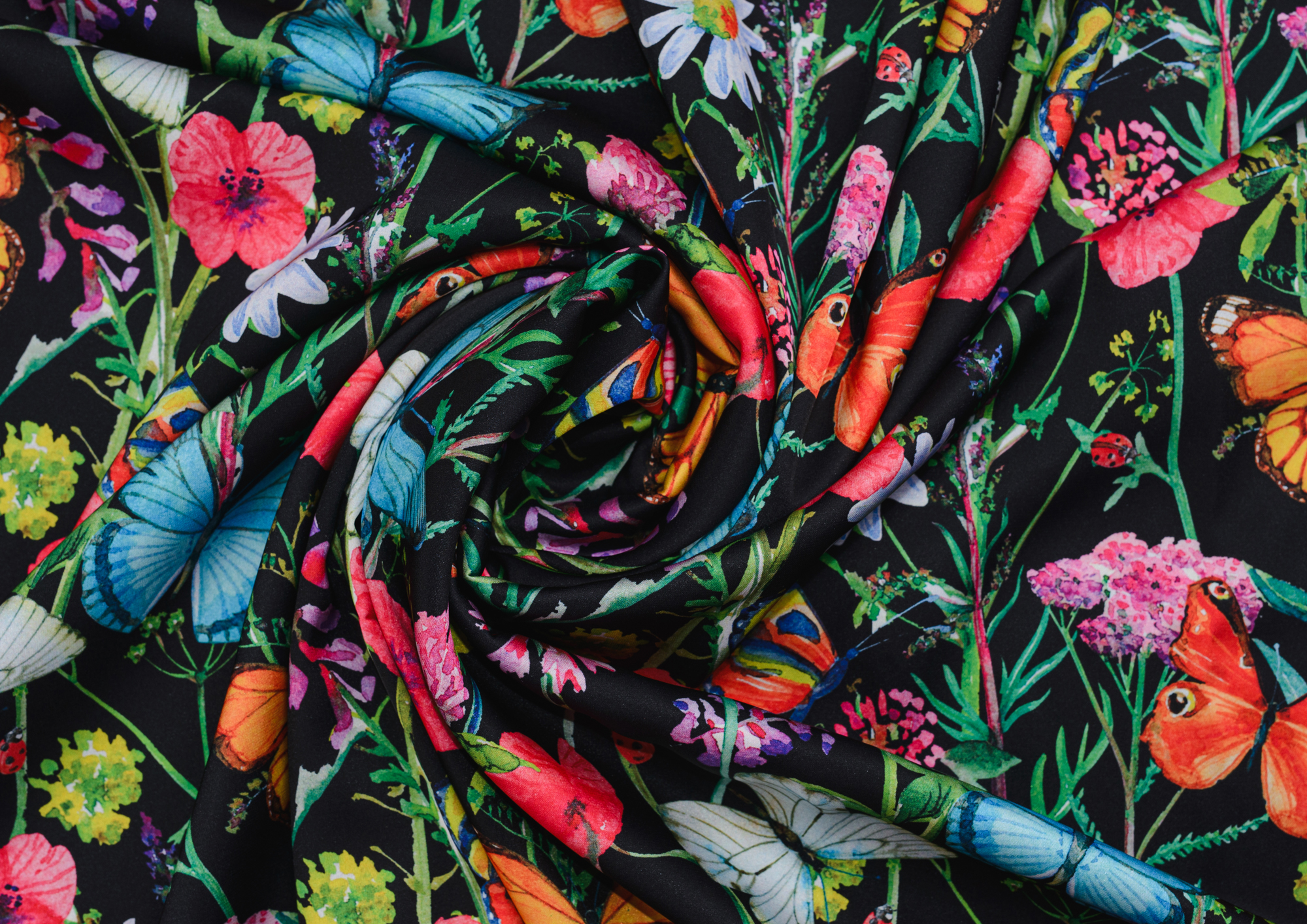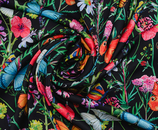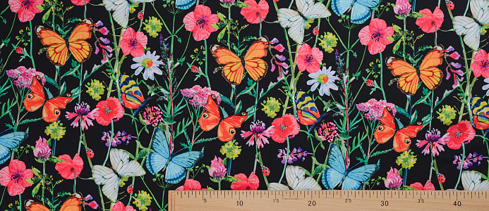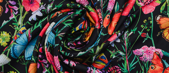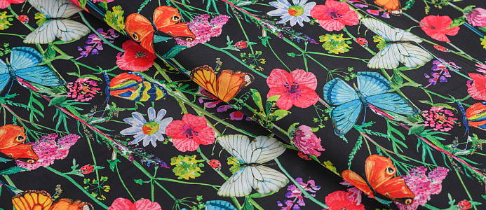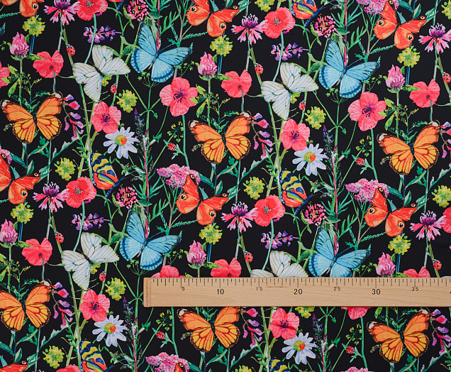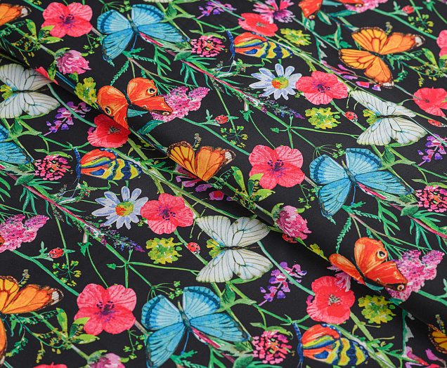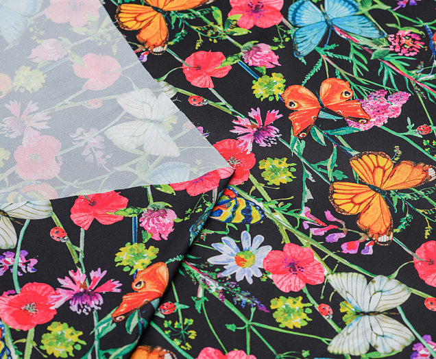 Ткань Шелк принт Бабочки на черном