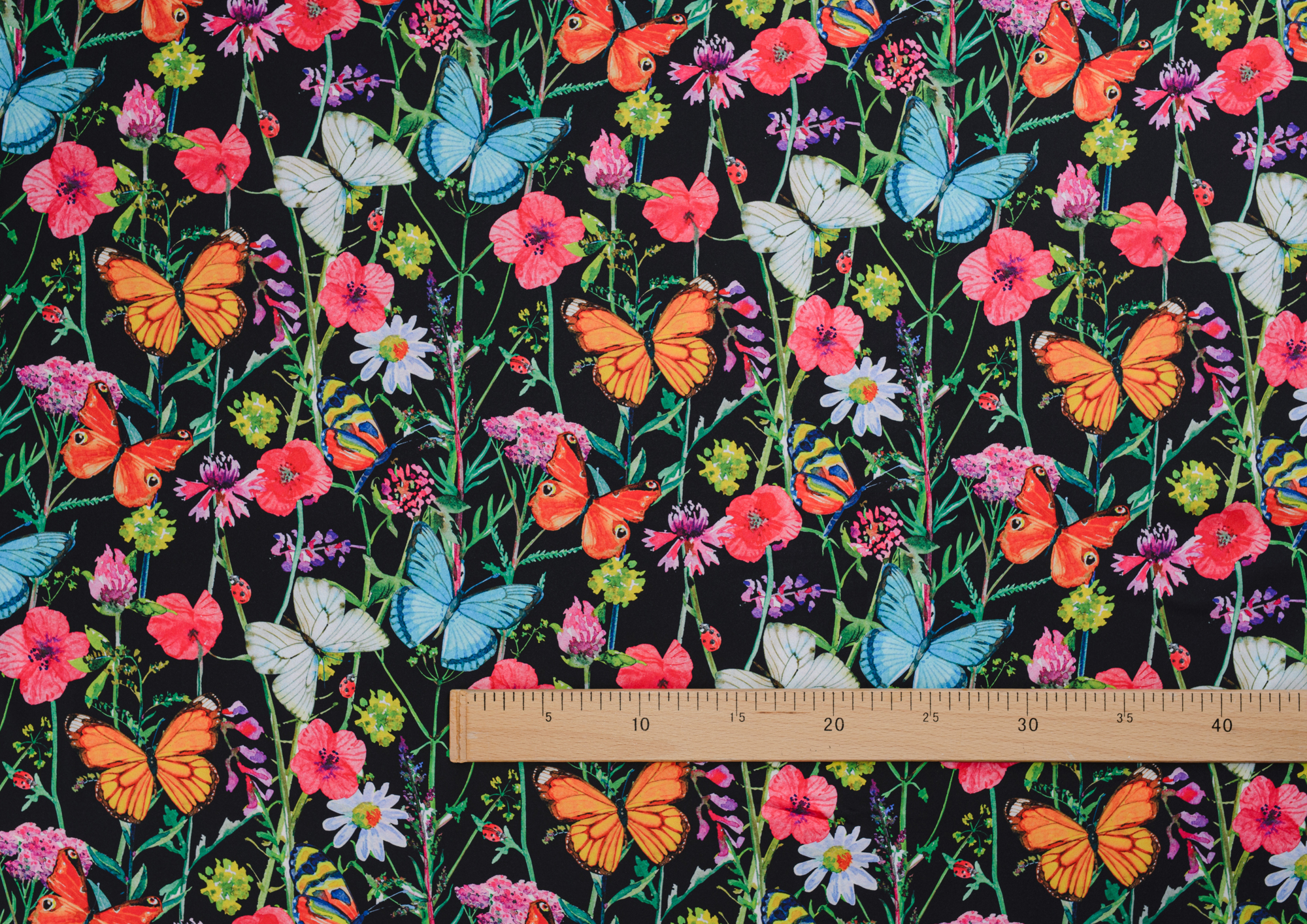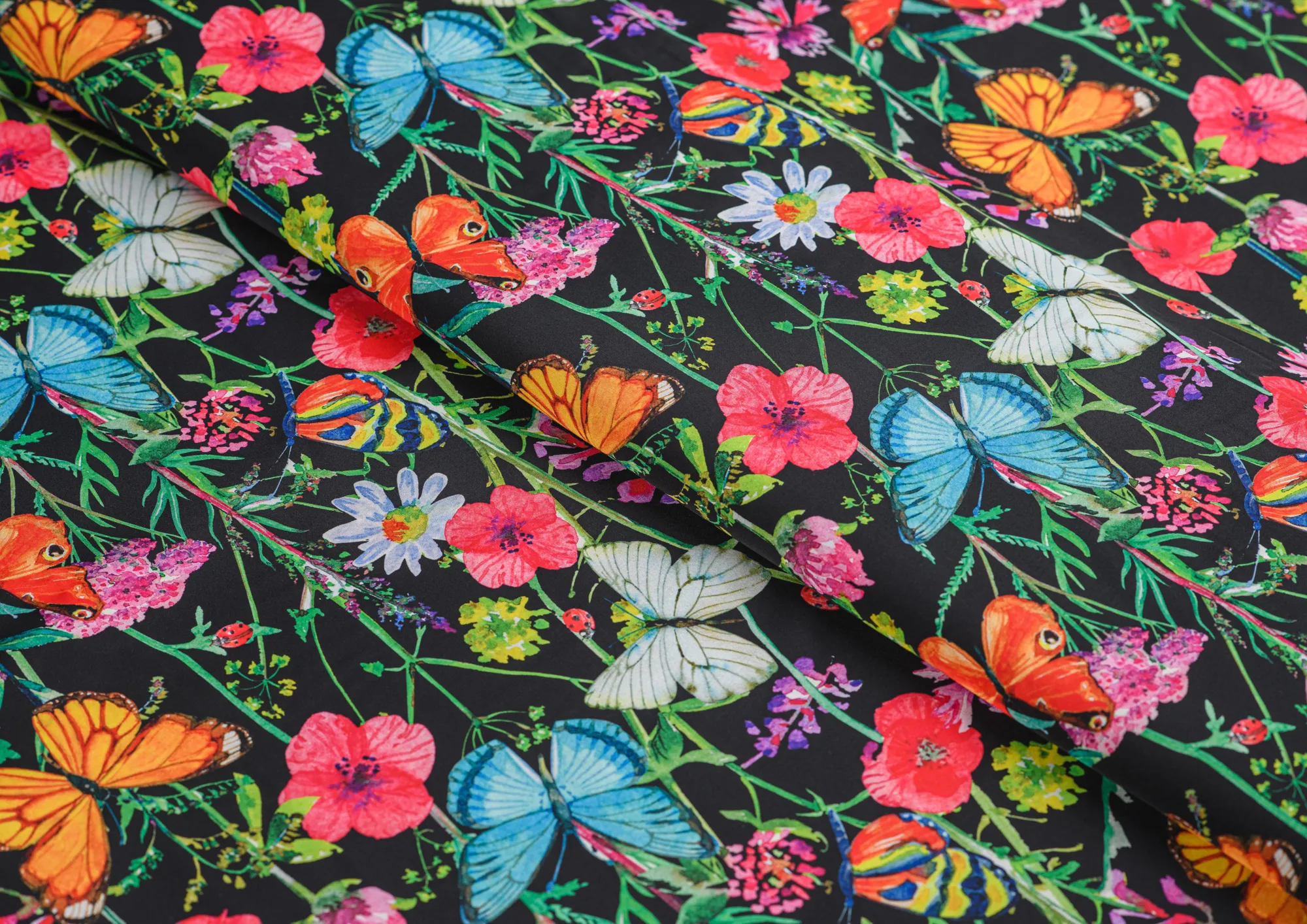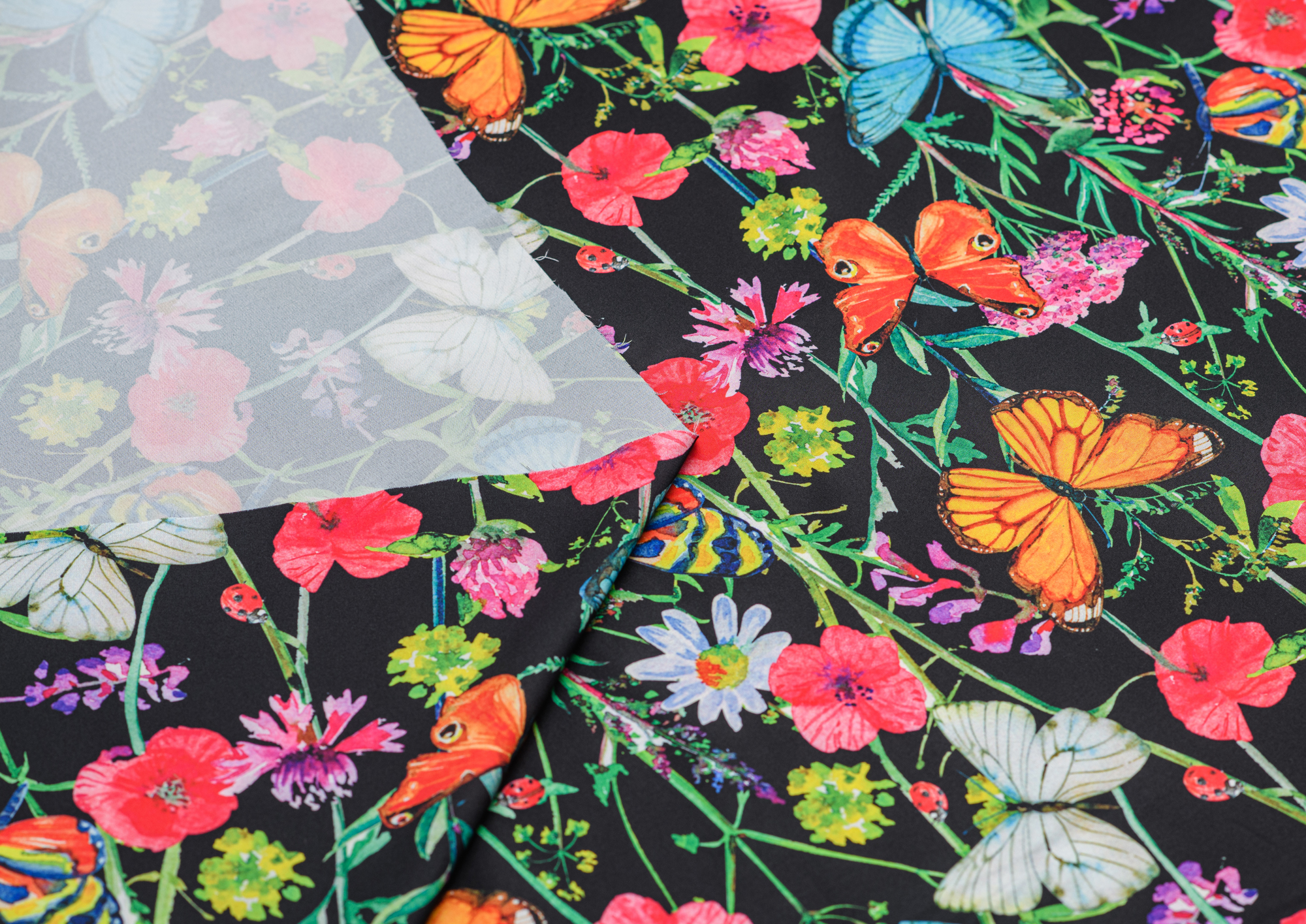 Ткань Шелк принт Бабочки на черном