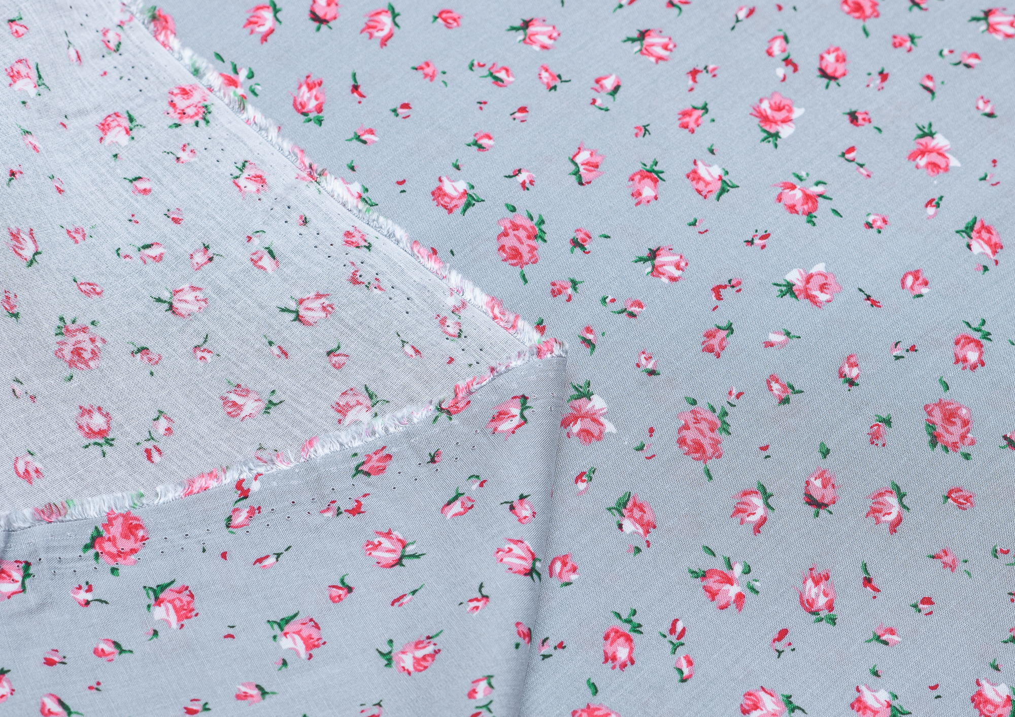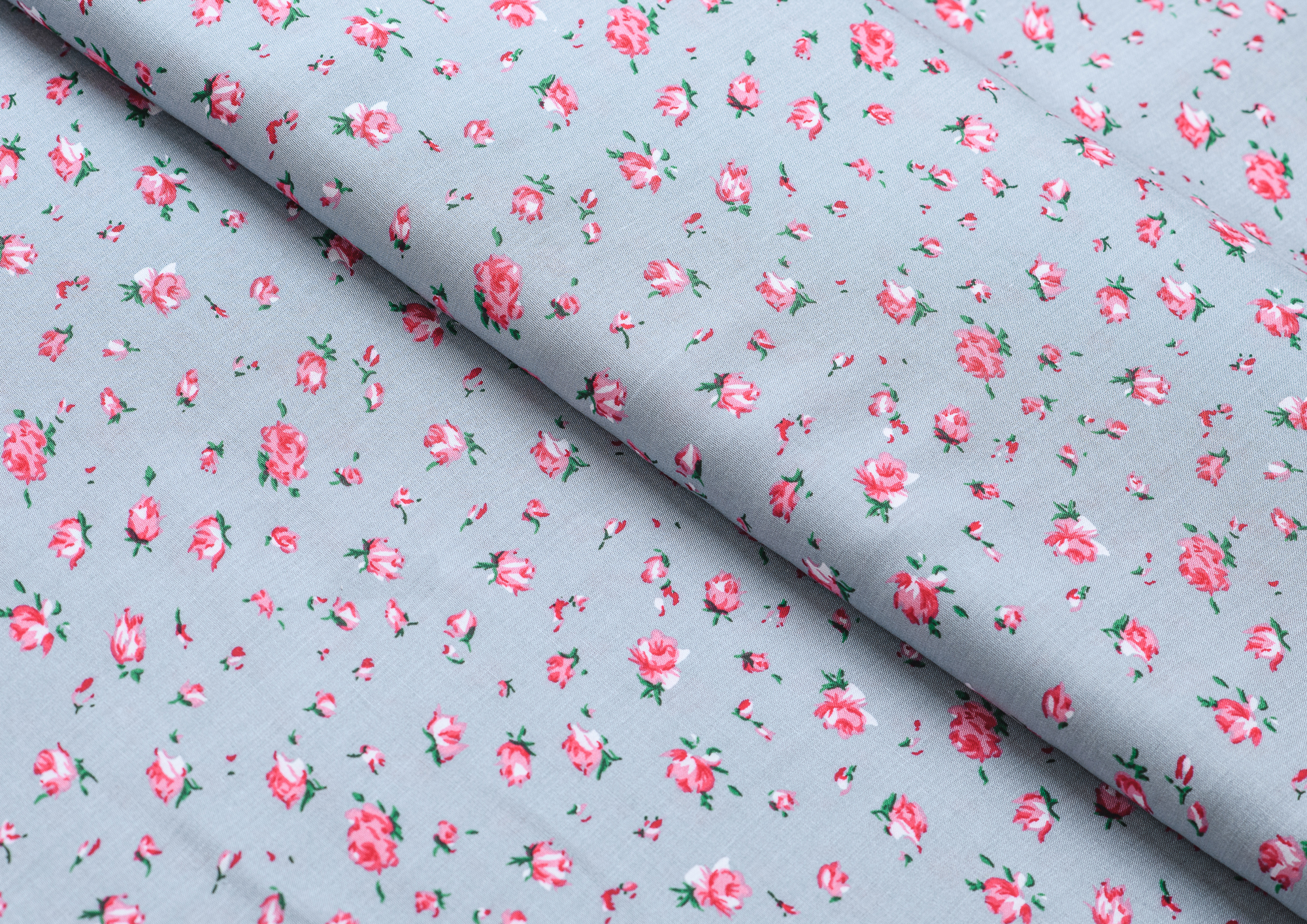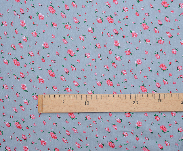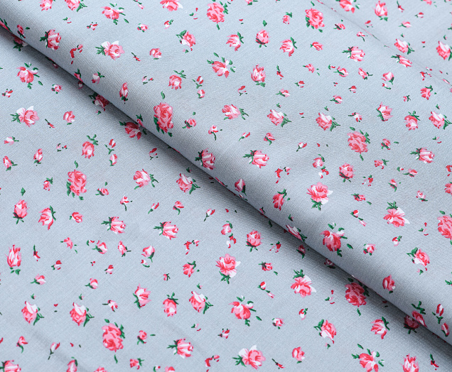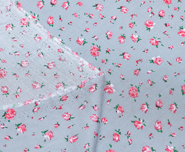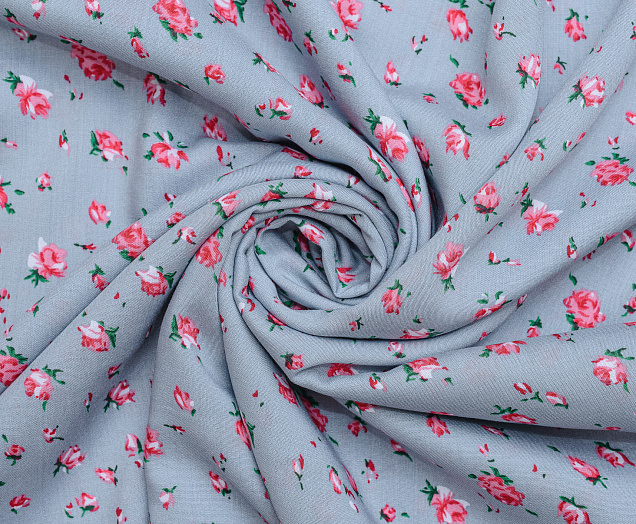 Штапель №1 принт Розочки на сером