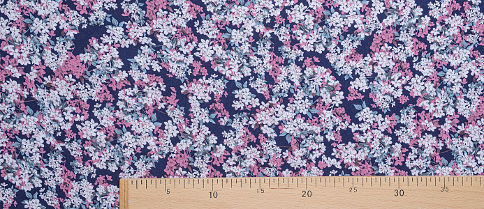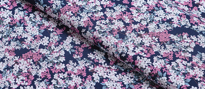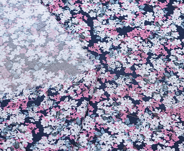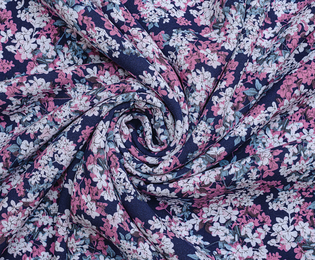 Легкая , мягкая , приятная на ощупь ткань . Поверхность шелковистая . По всей поверхности ткани расположен цветочный принт. Ткань воздухопроницаемая, хорошо подходит для жаркой погоды. Отлично драпируется , образовывая мягкие складки. Подходит для пошива платьев, сарафанов, халатов, юбок.