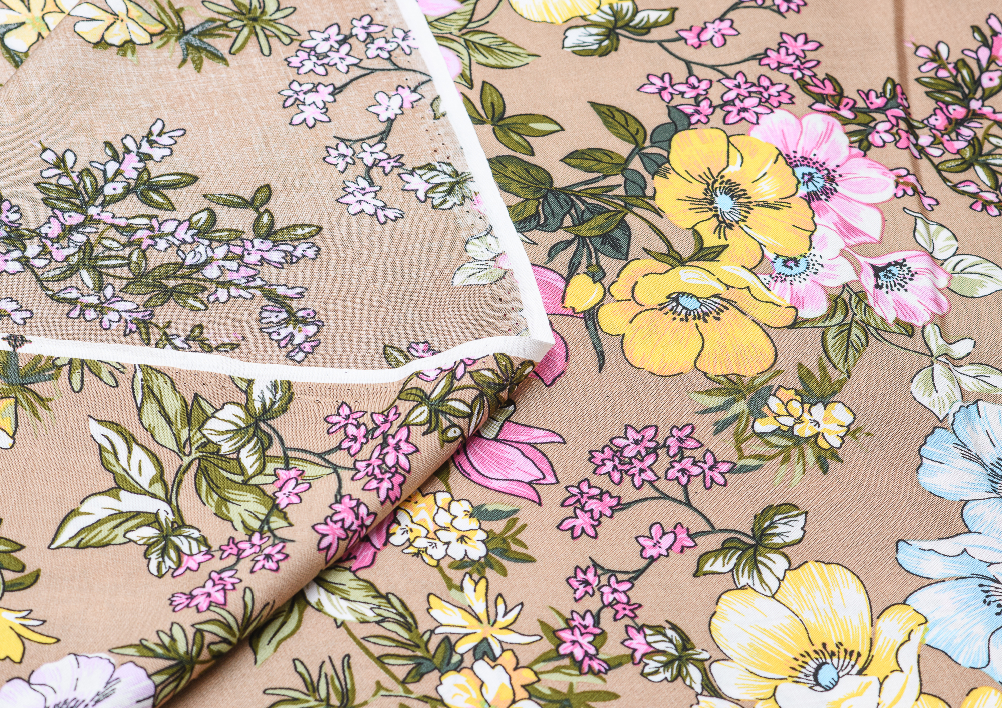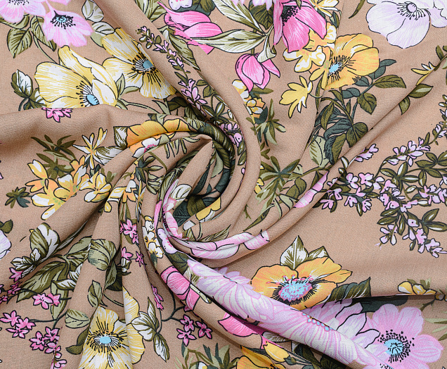 Штапель 3161 Цветы на бежевом