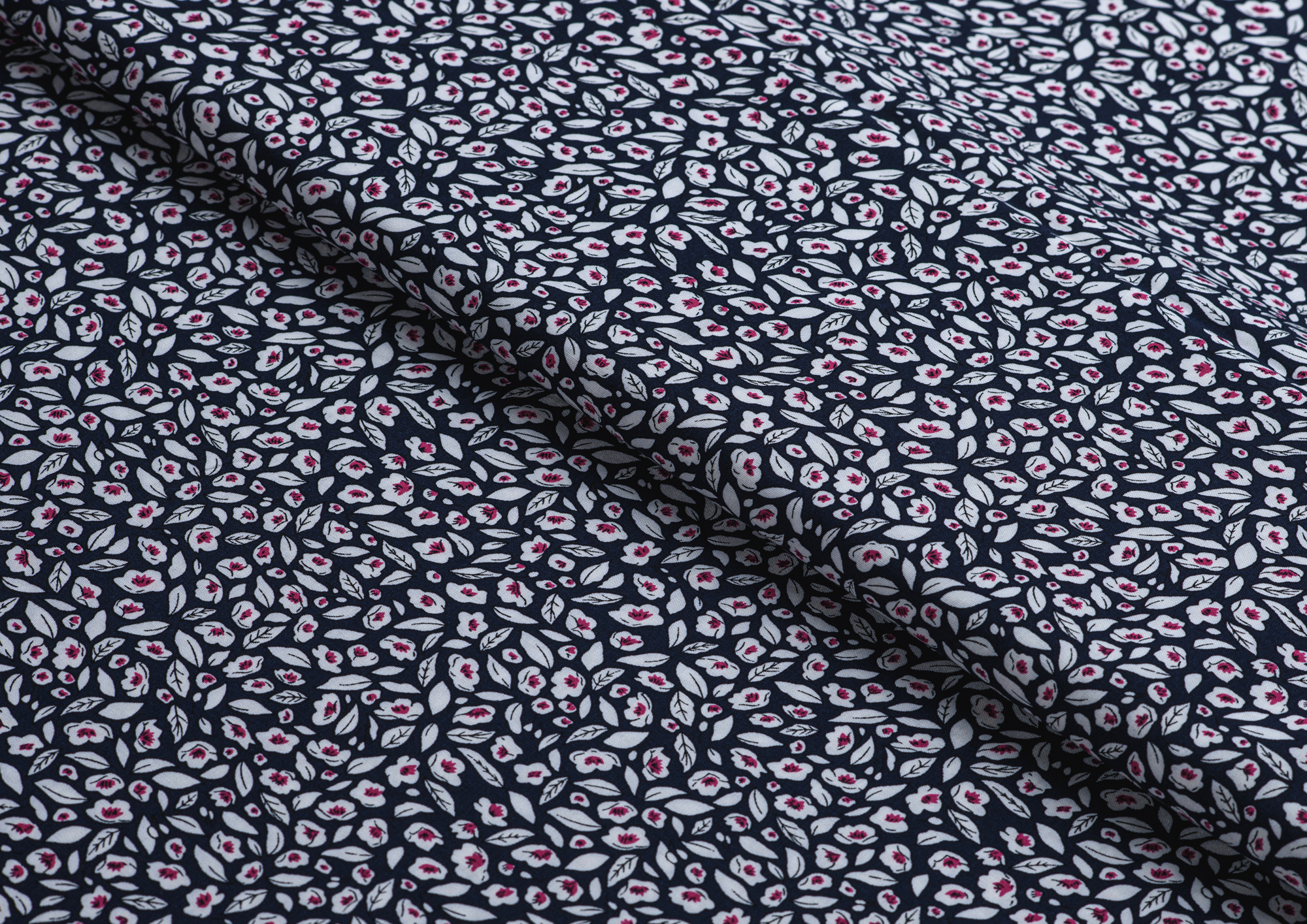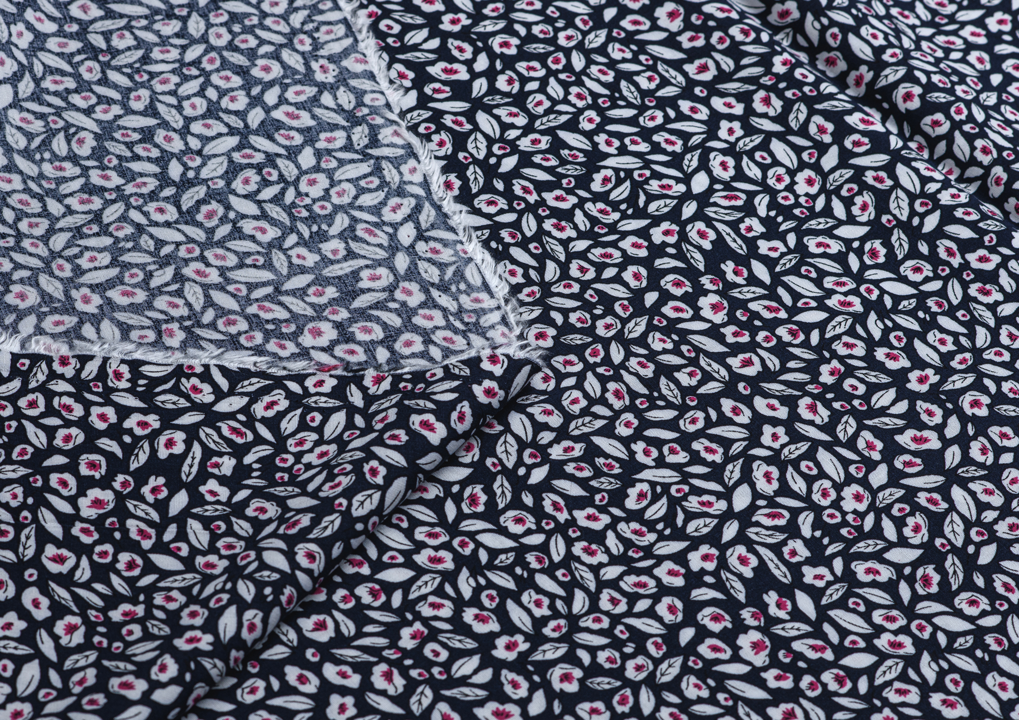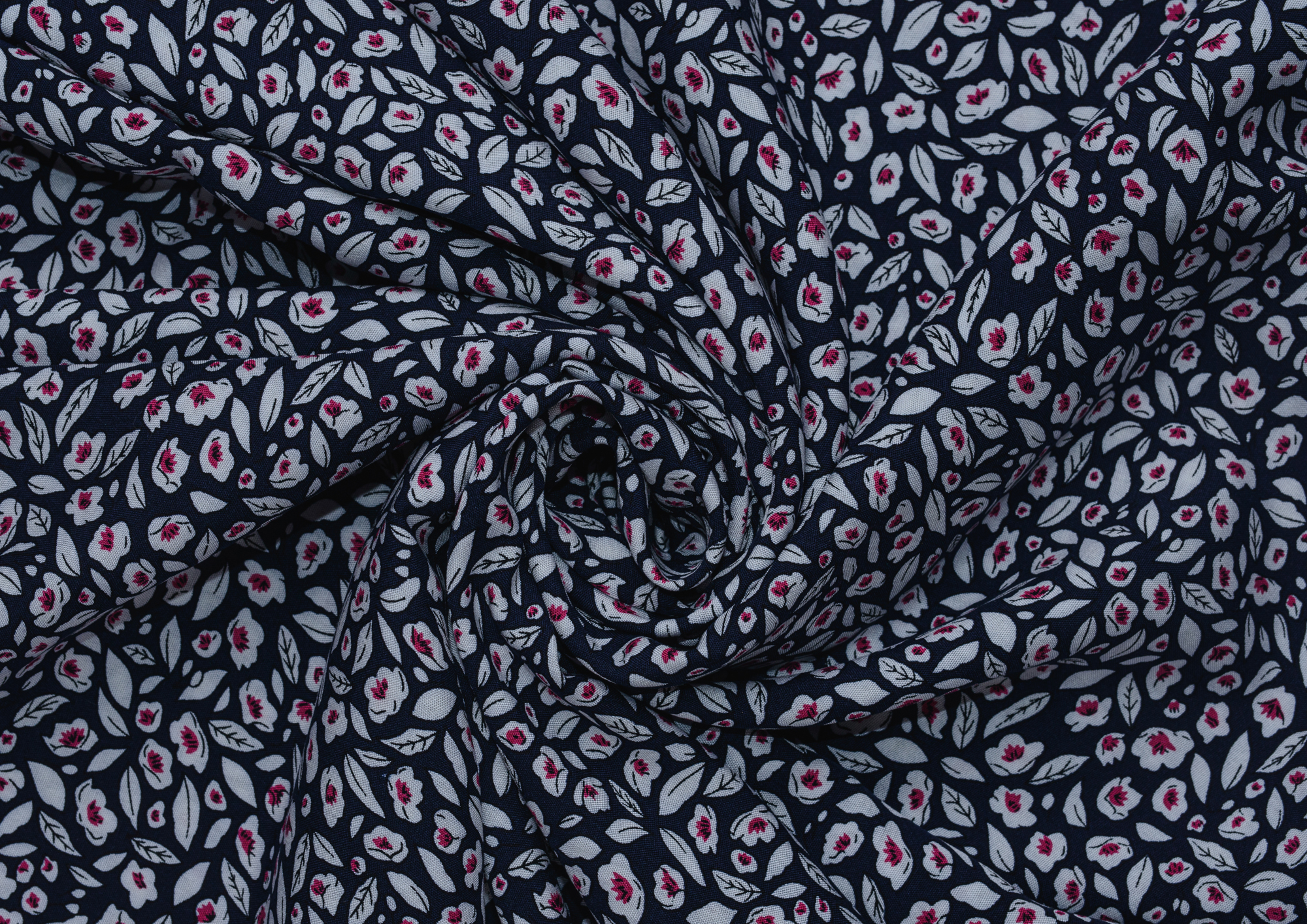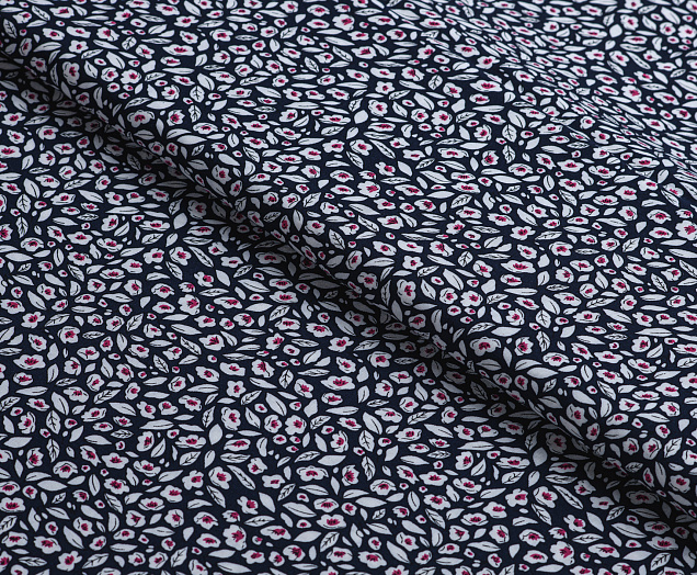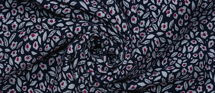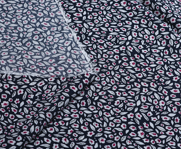 Ткань Штапель 3363 принт №5 цветочки на темно синем