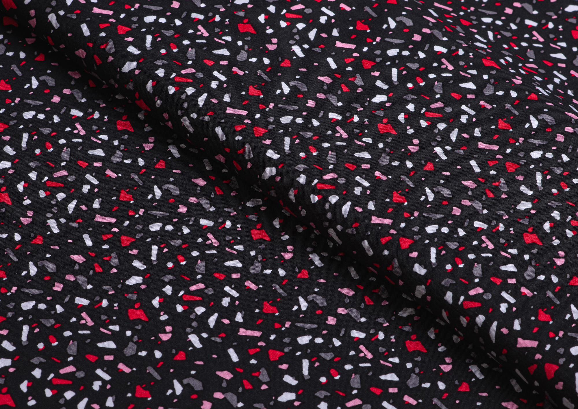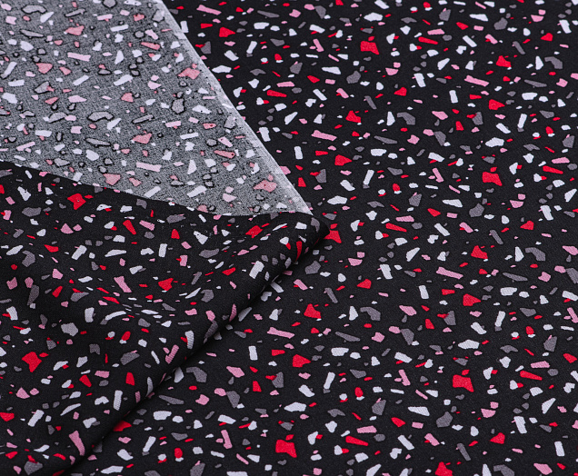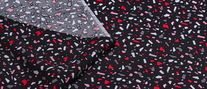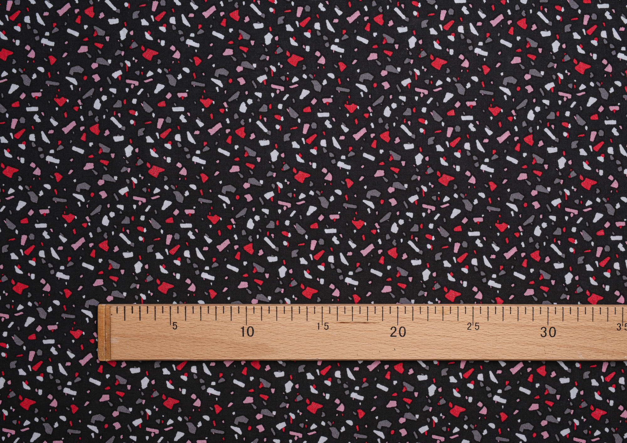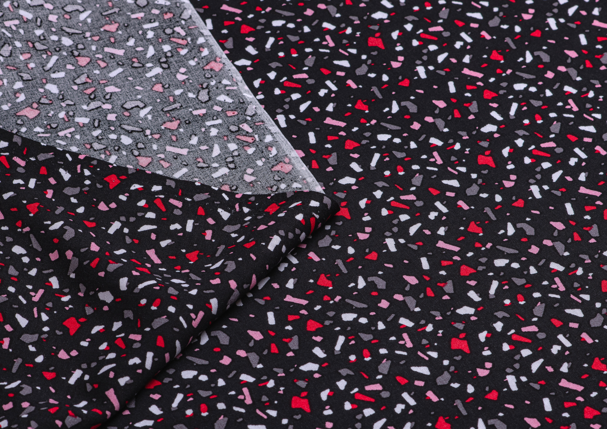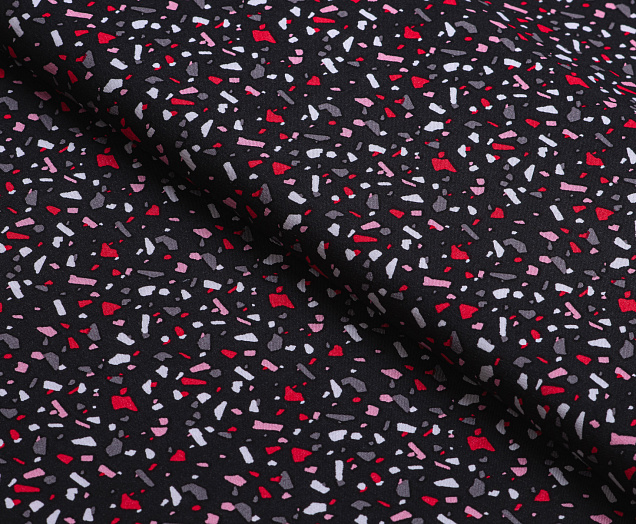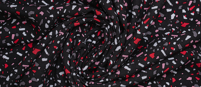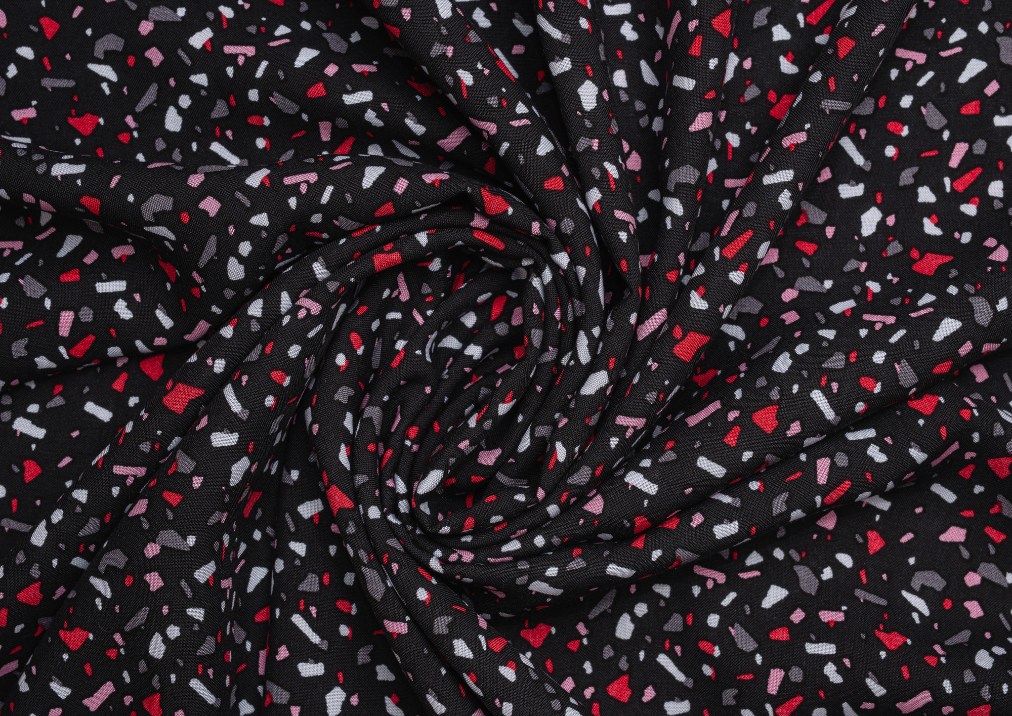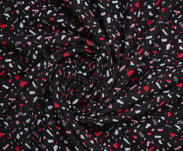 Ткань Штапель 3401 принт1 красная мозаика на черном