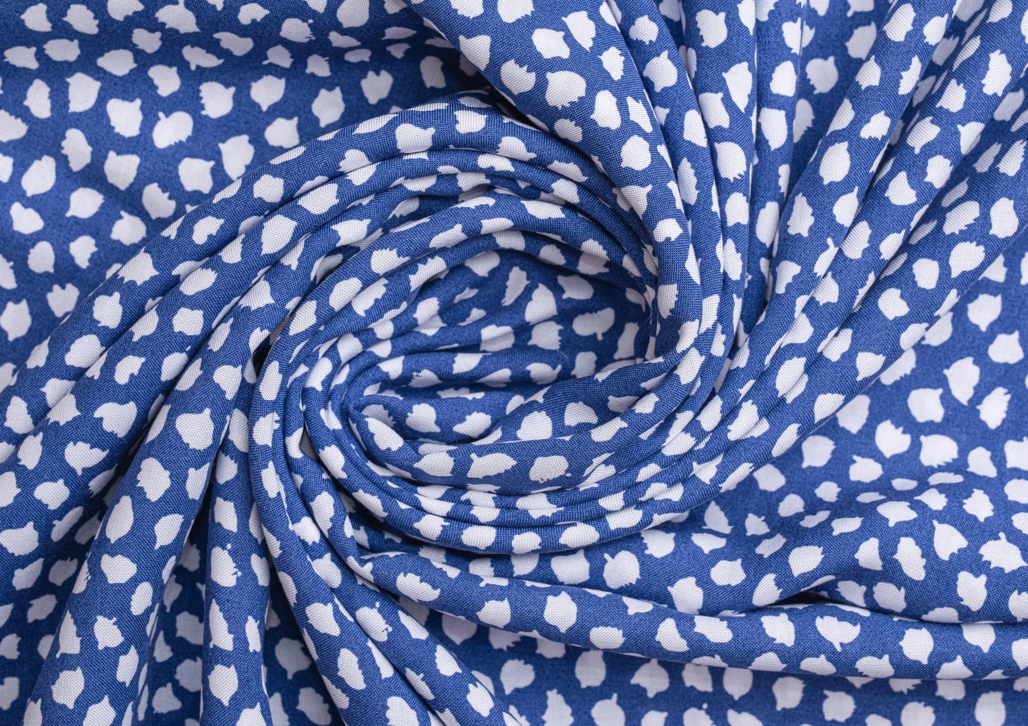 Ткань Штапель 3401 принт 20 Белые кляксы на голубом