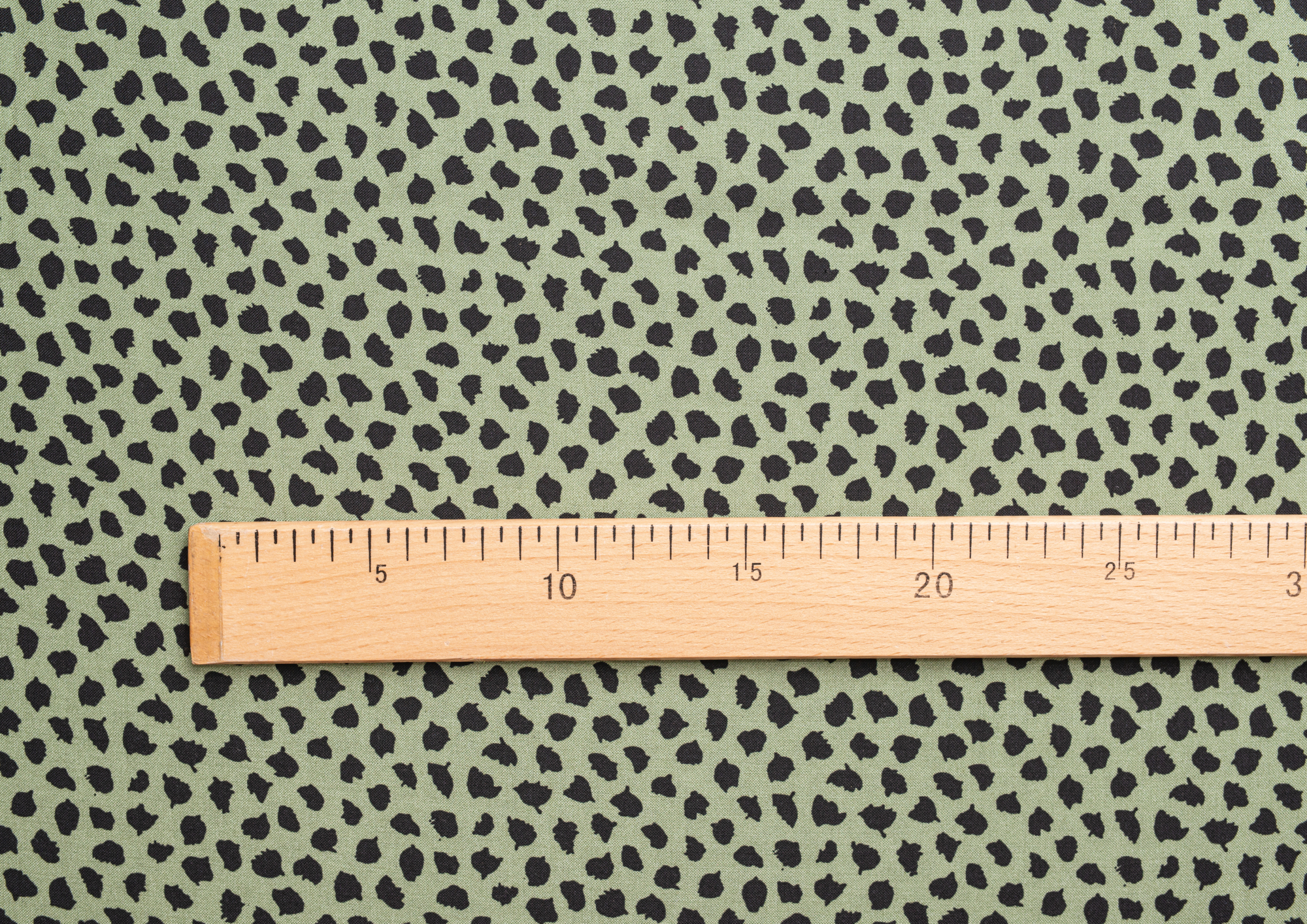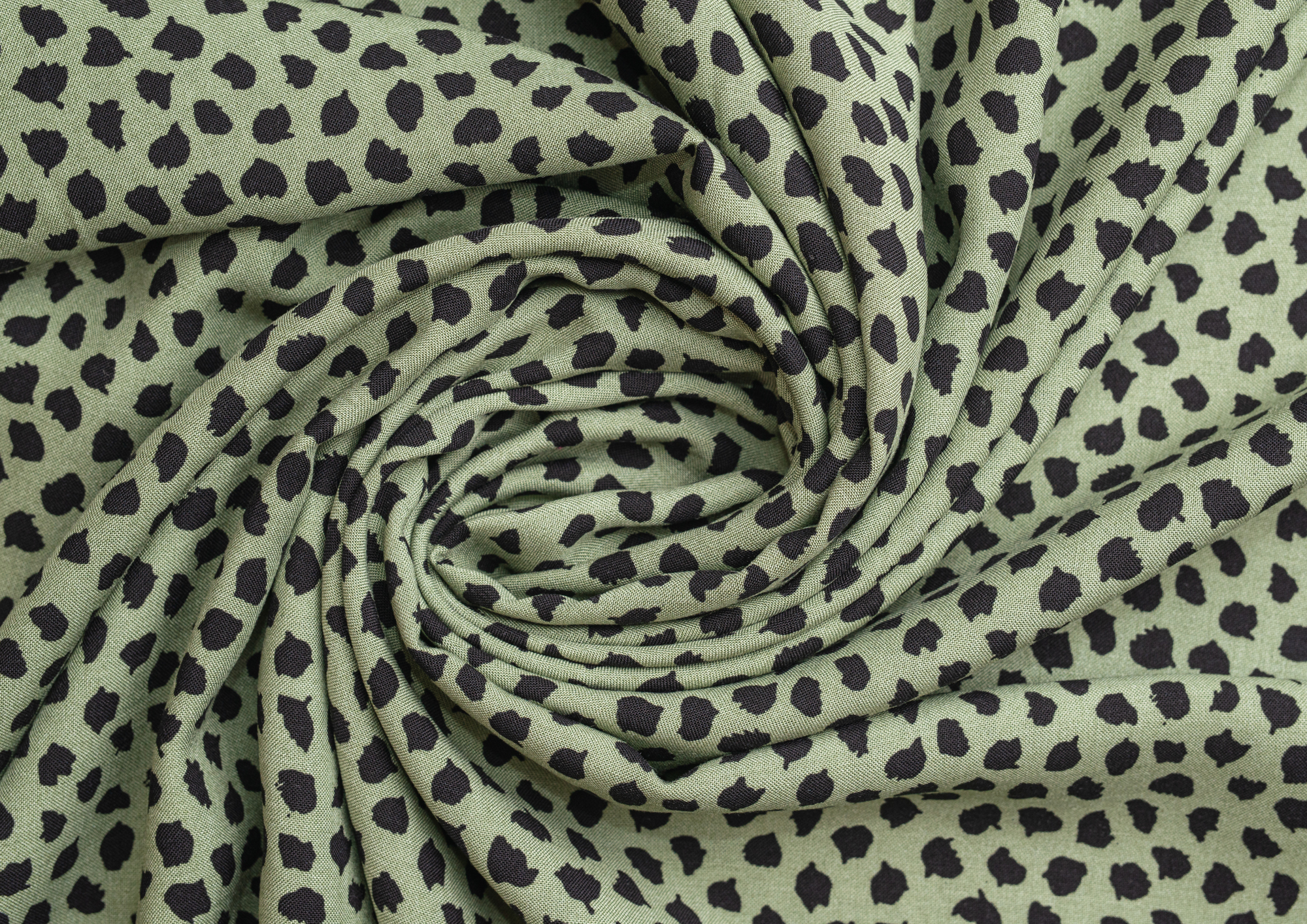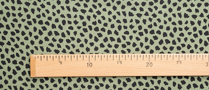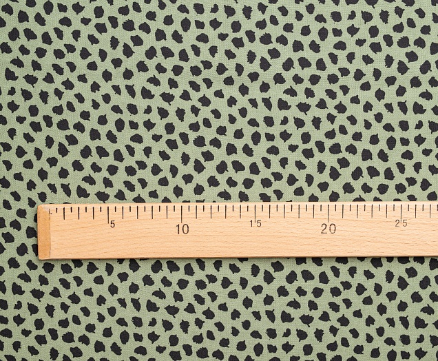 Ткань Штапель 3401 принт 21 Черные кляксы на зеленом