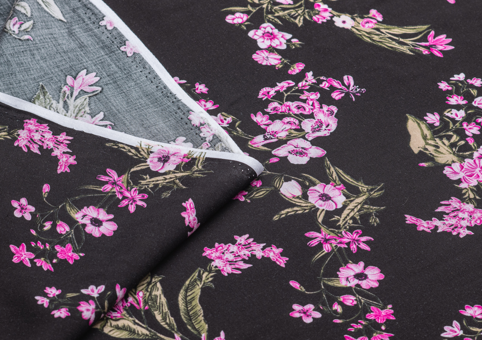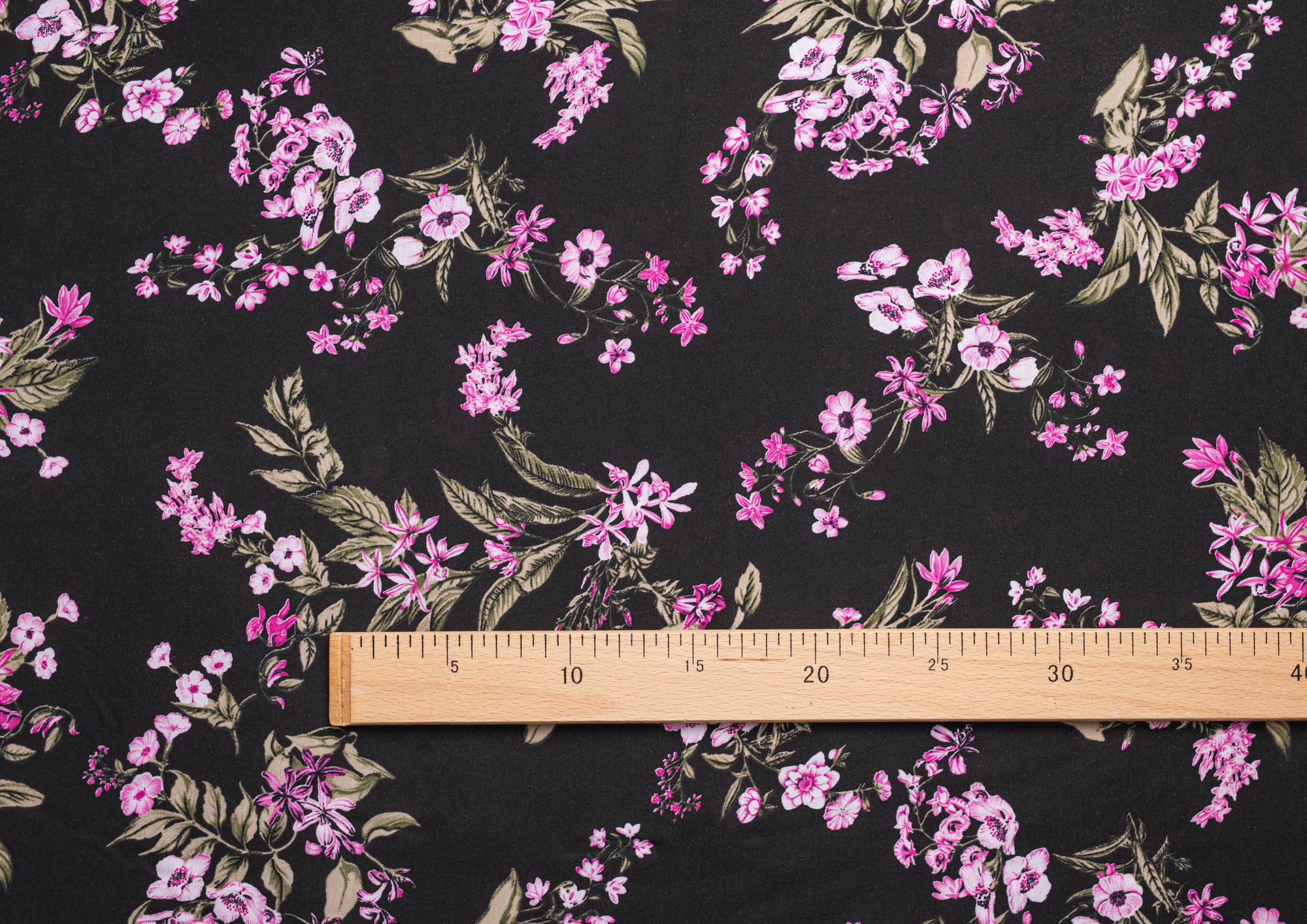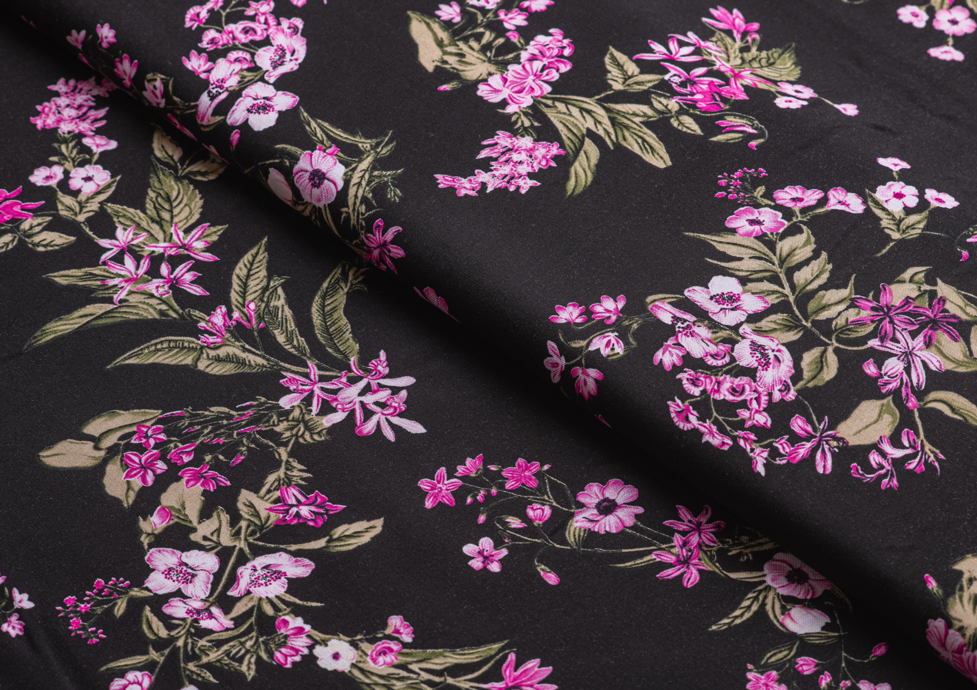 Ткань Штапель 3401 принт 6 Розовые цветы на черном