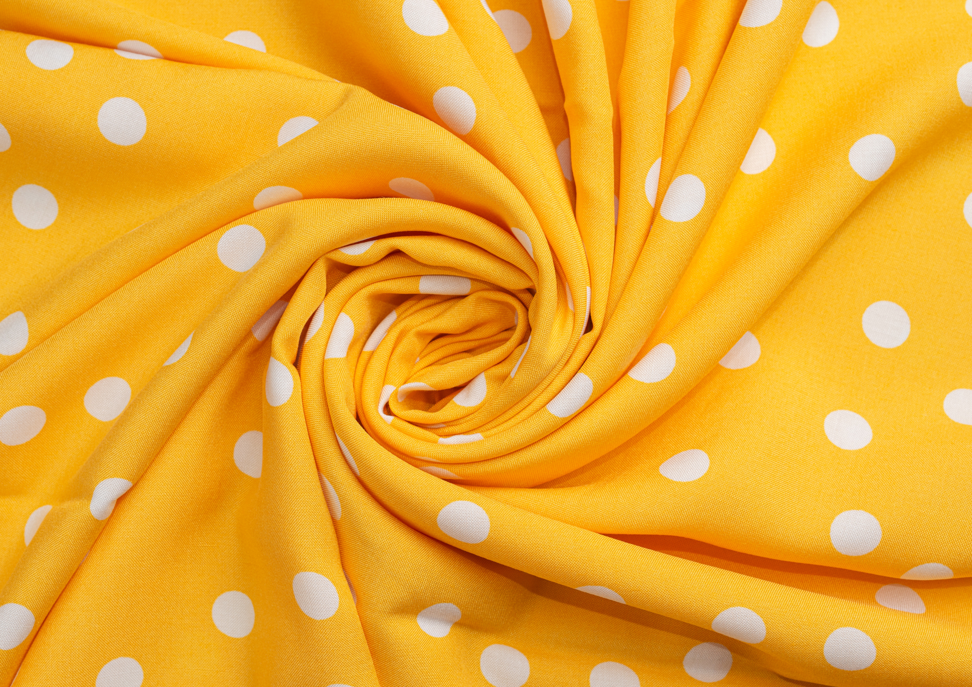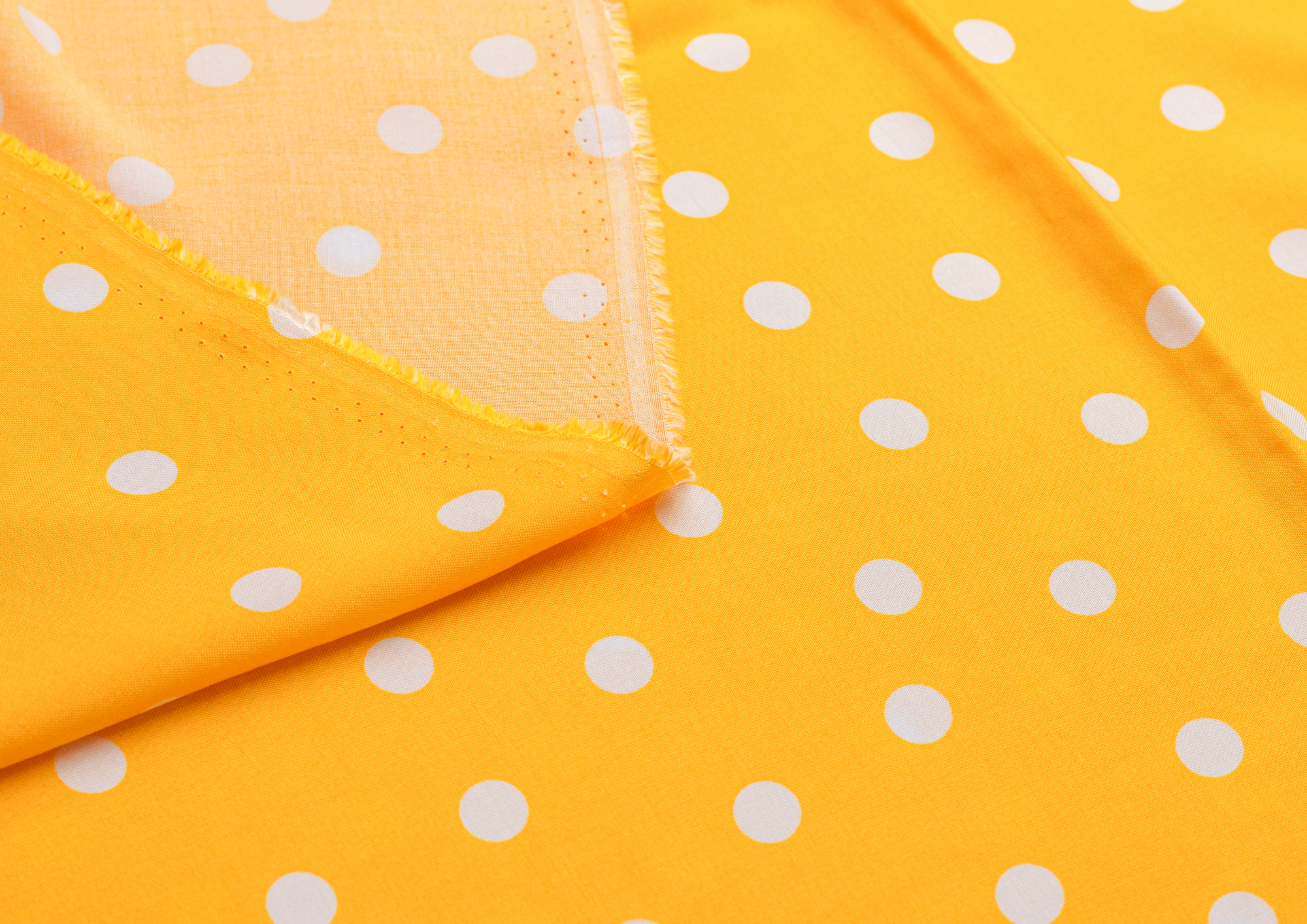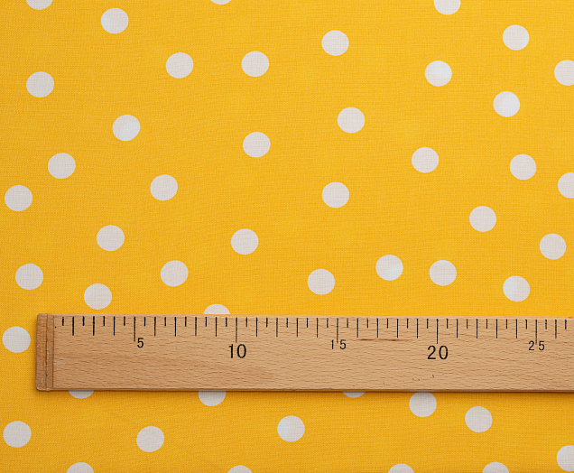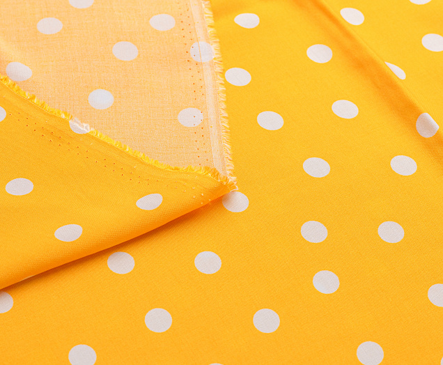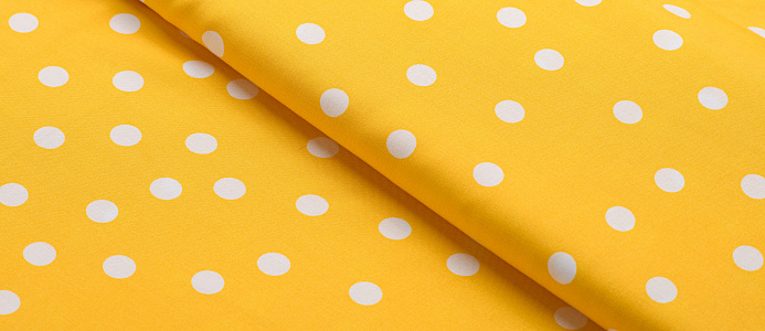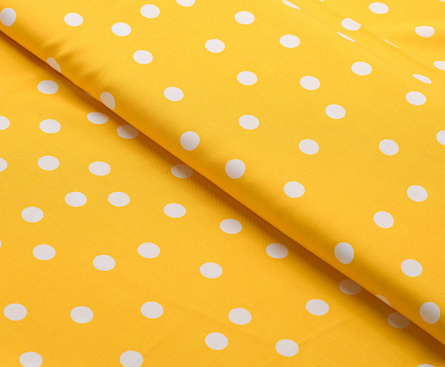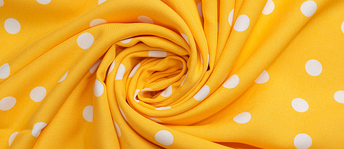 Ткань Штапель Горох белый цв. желтый
