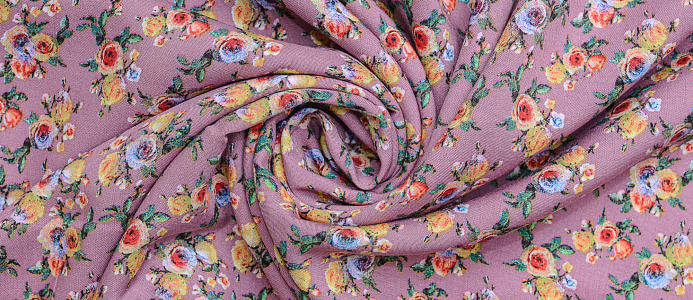 Легкая , мягкая , приятная на ощупь ткань . Поверхность шелковистая . По всей поверхности ткани расположен мелкий цветочный принт. Ткань воздухопроницаемая, хорошо подходит для жаркой погоды. Отлично драпируется , образовывая мягкие складки. Подходит для пошива платьев, сарафанов, халатов, юбок.