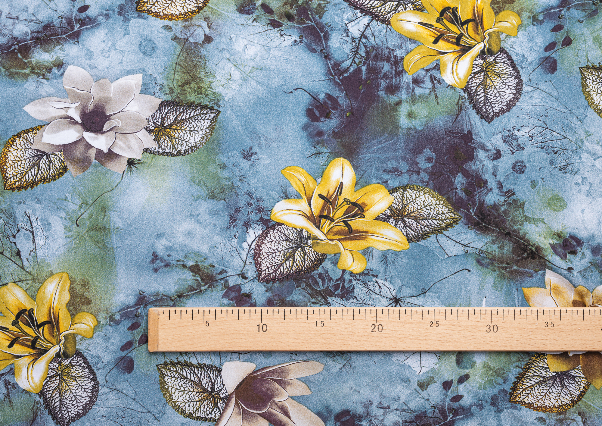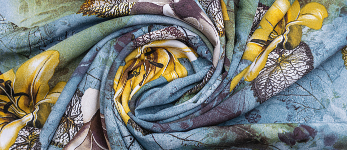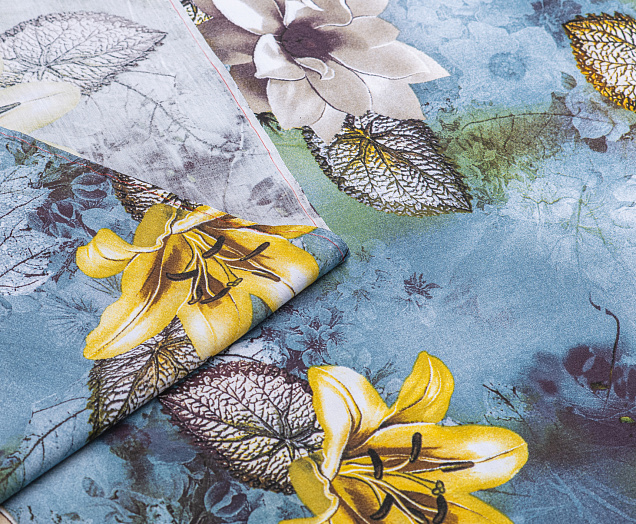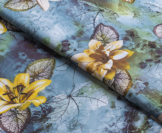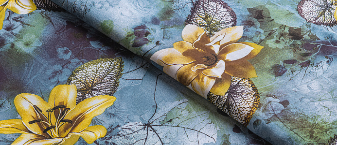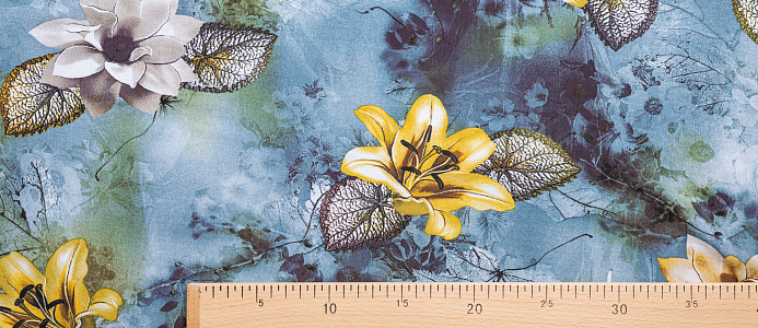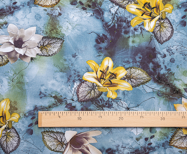 Ткань Штапель принт № 43 Лилии на серо-голубом