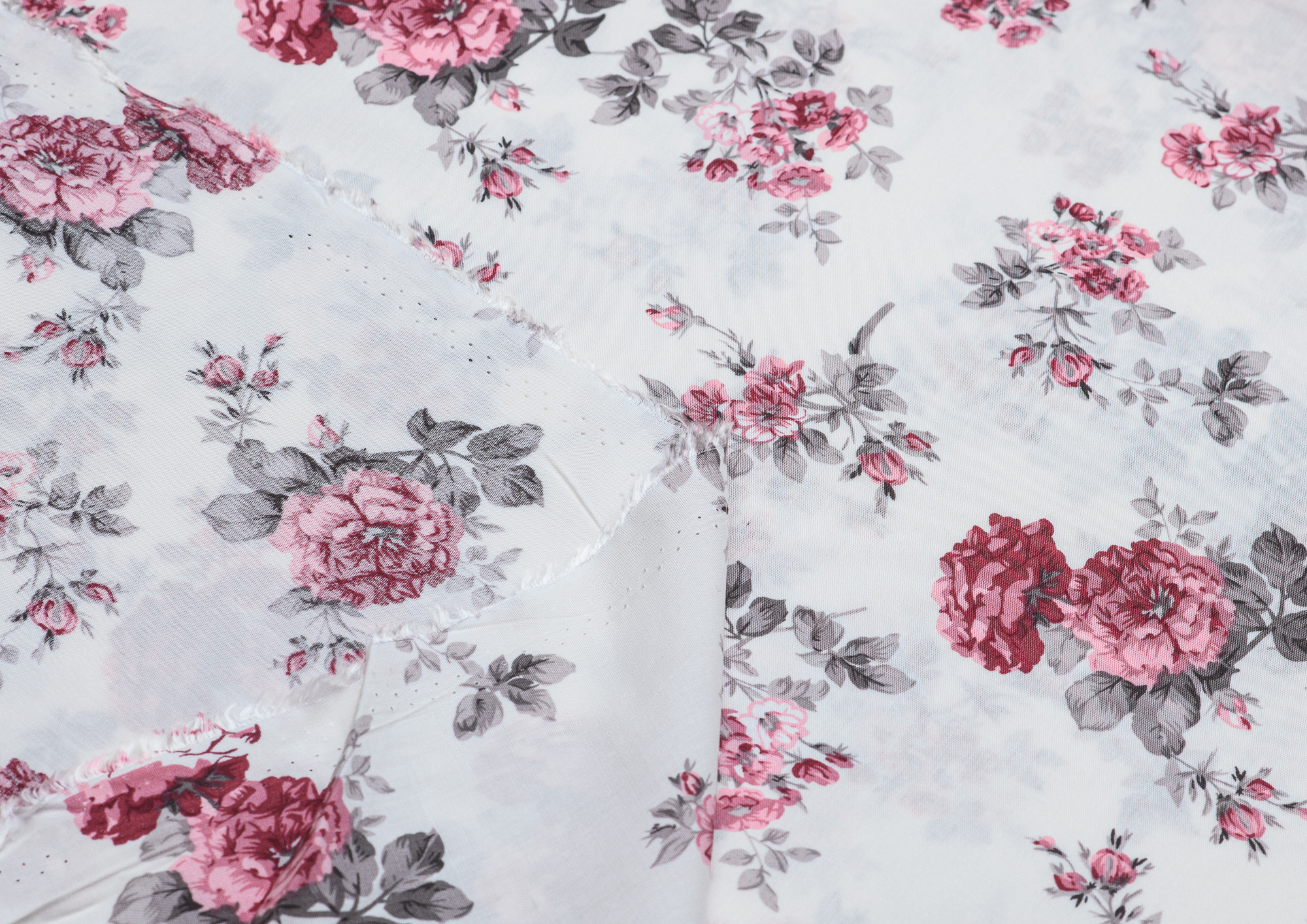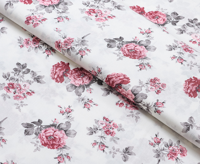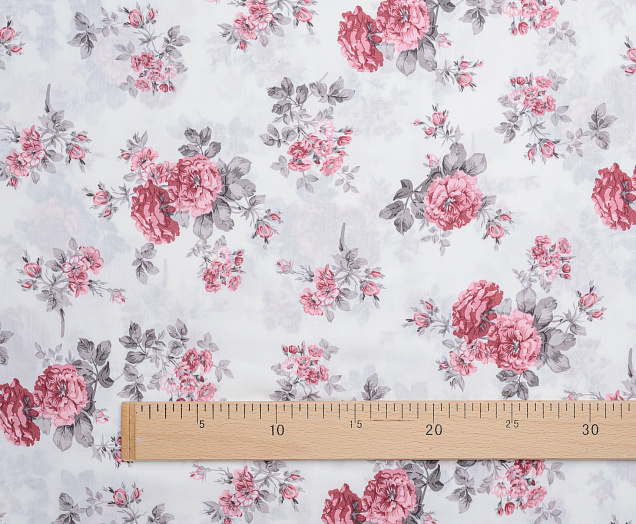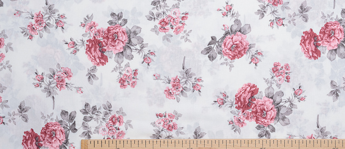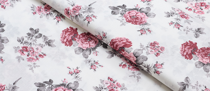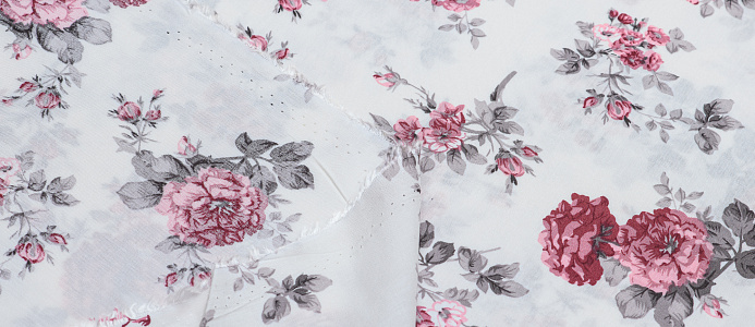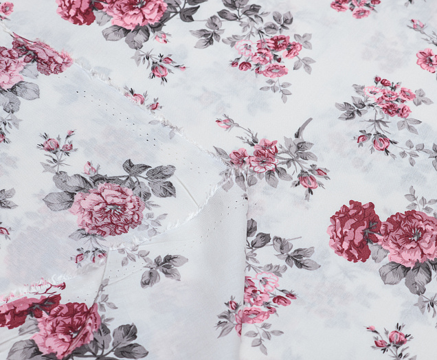 Ткань Штапель принт 8 розовые цветы на белом