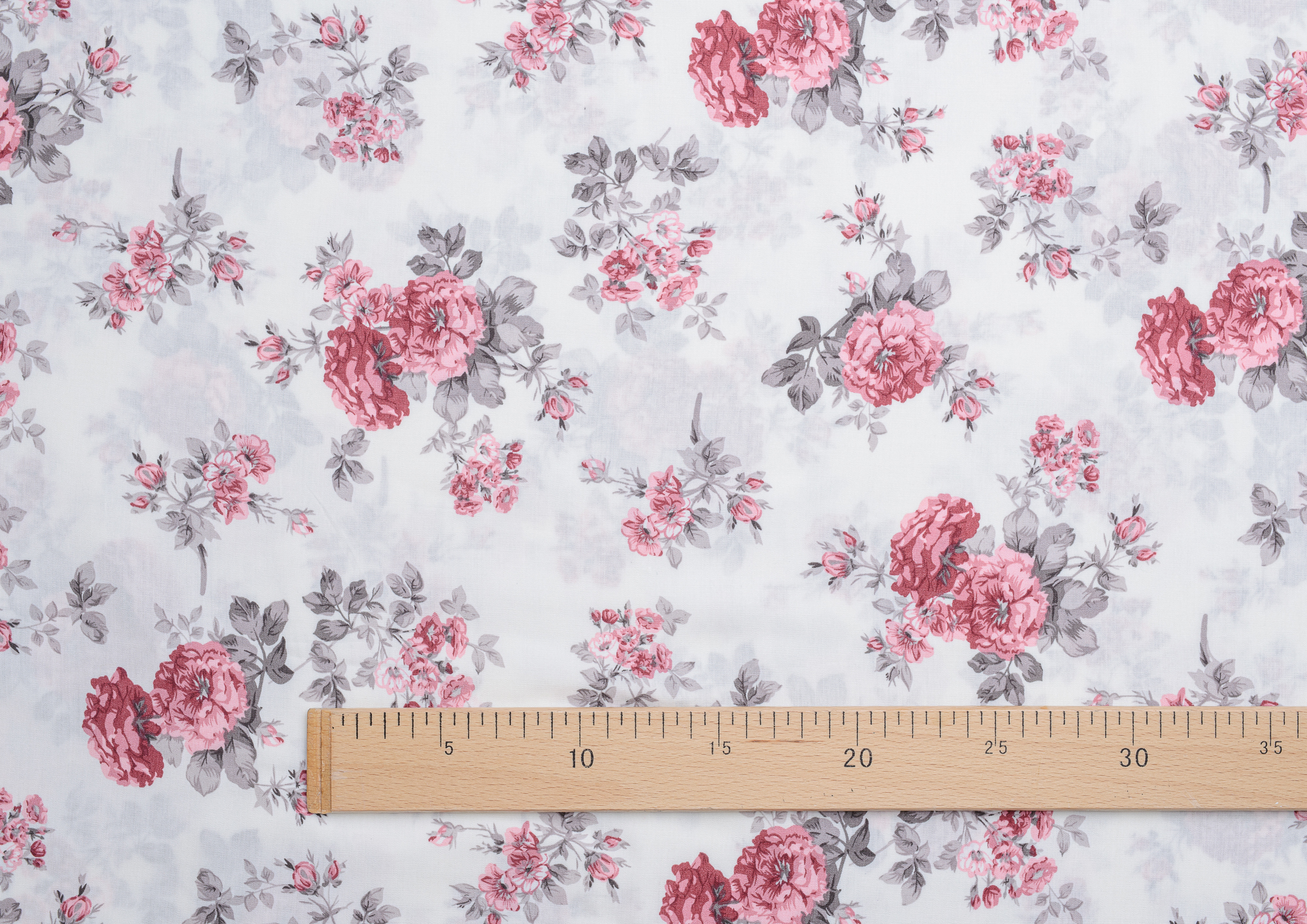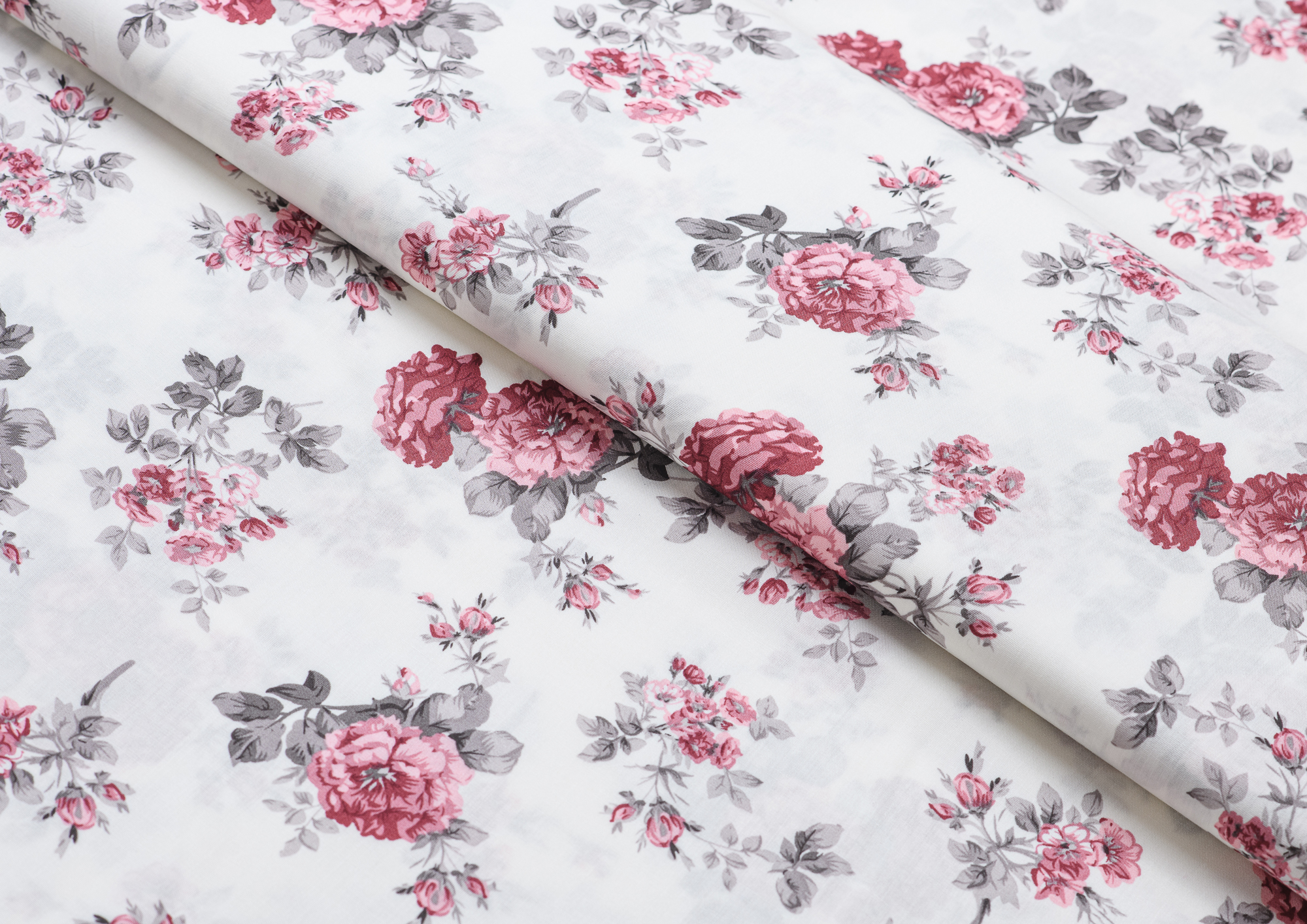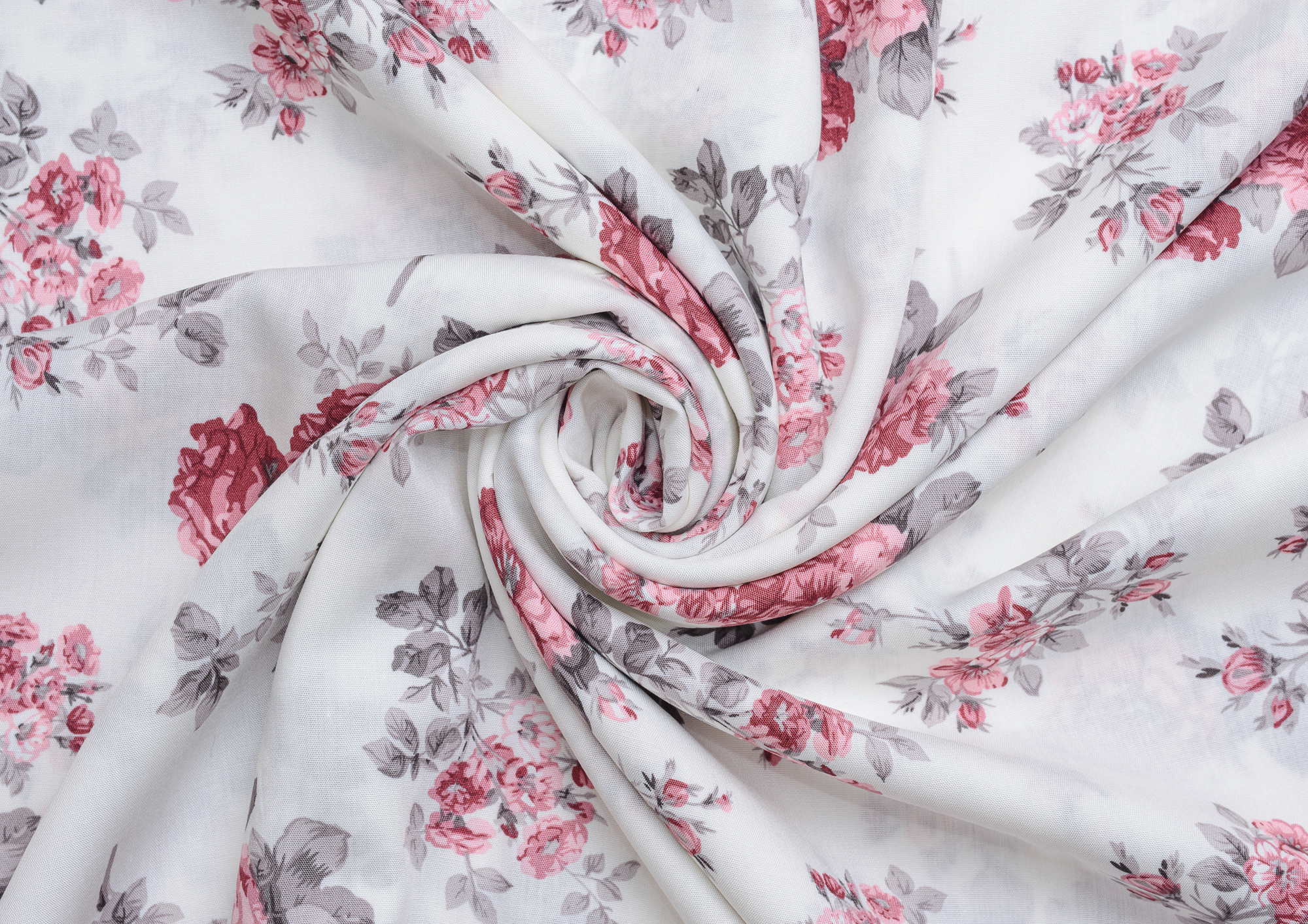 Ткань Штапель принт 8 розовые цветы на белом