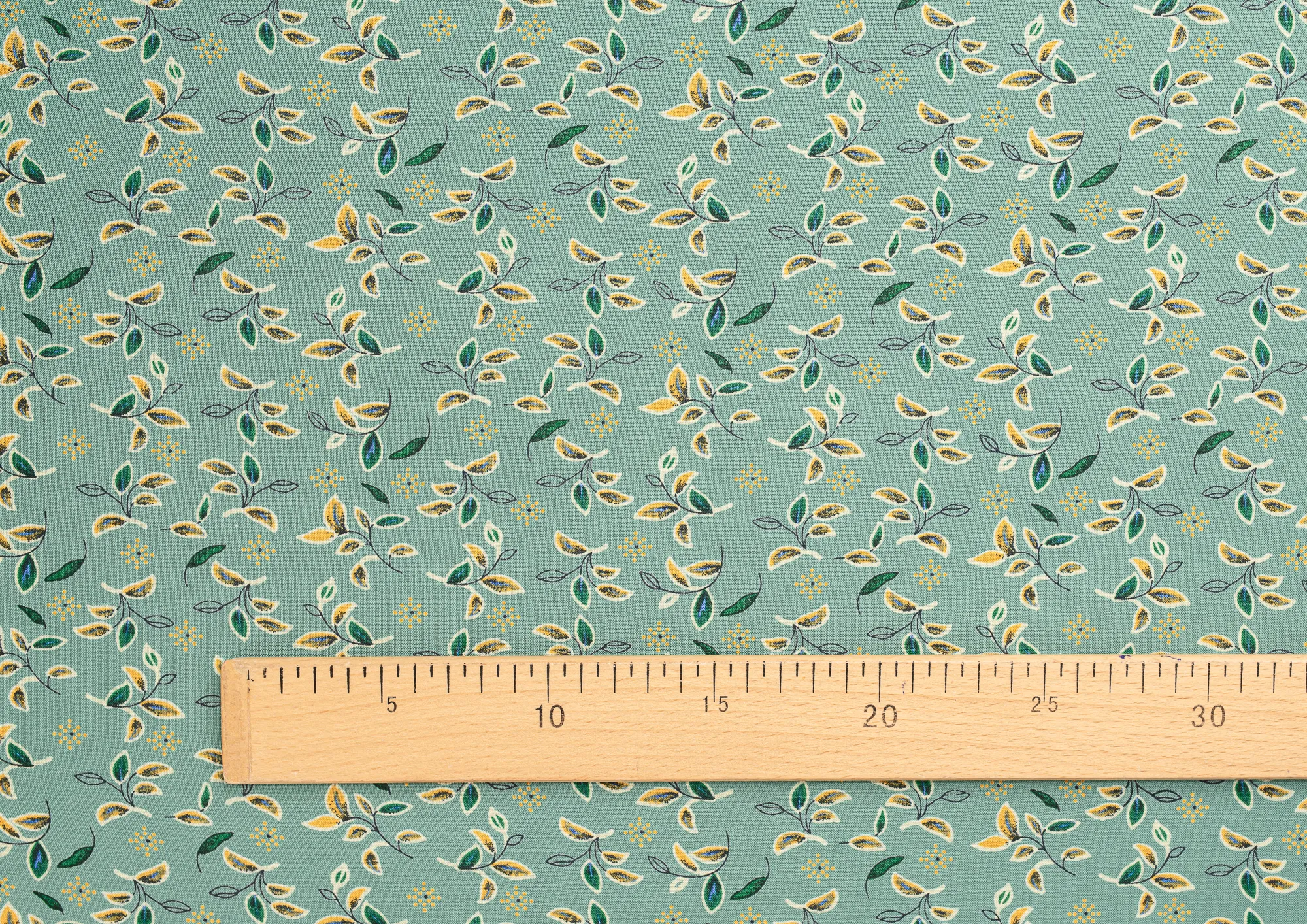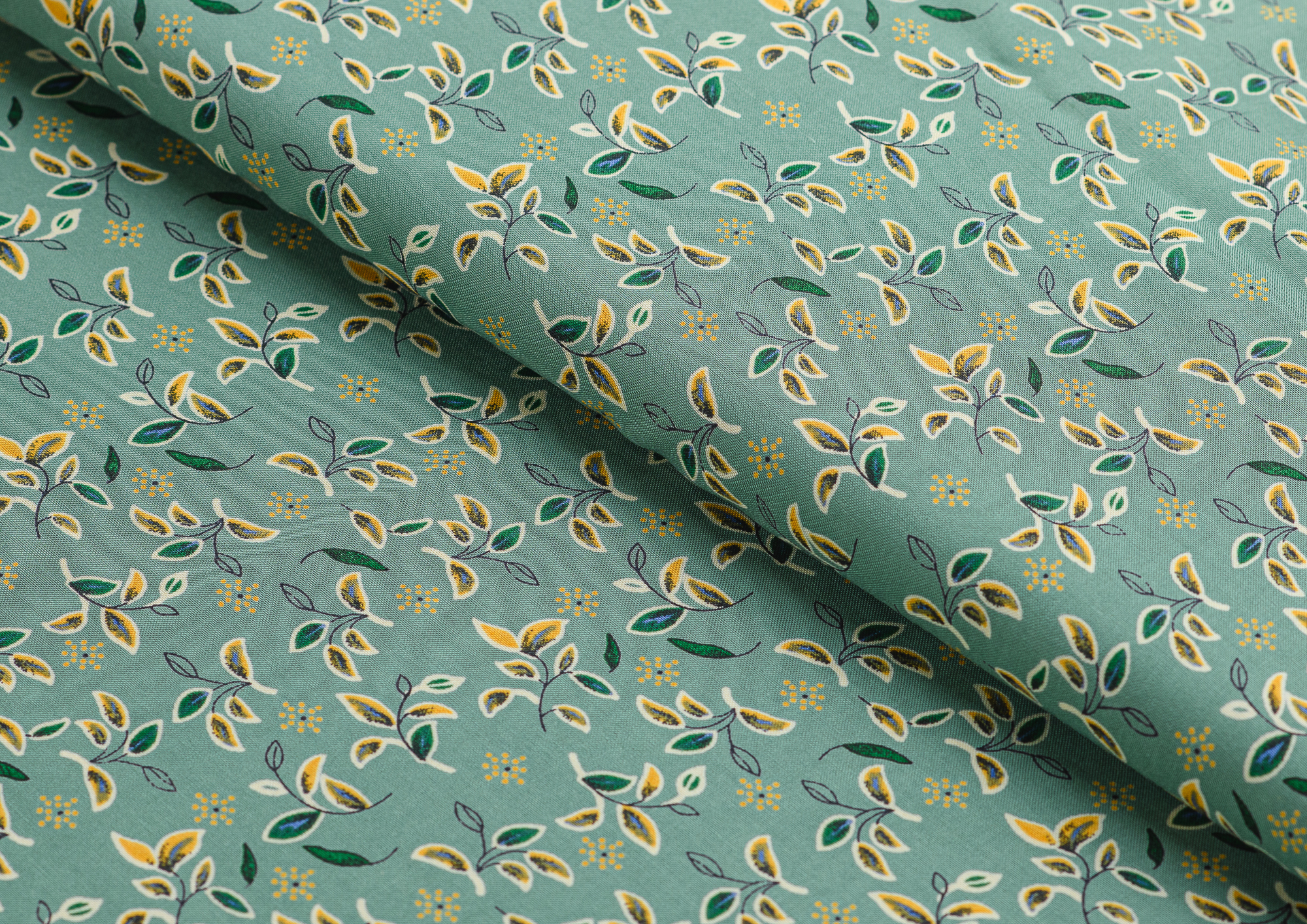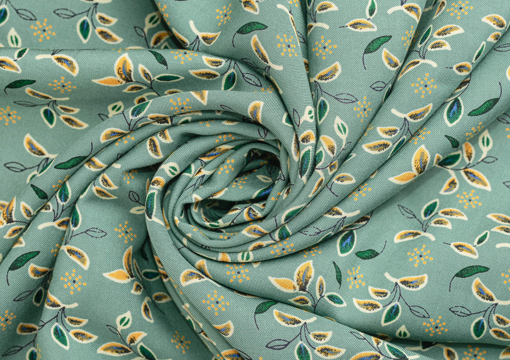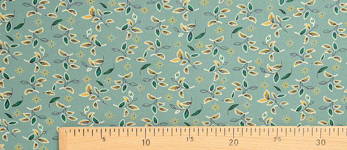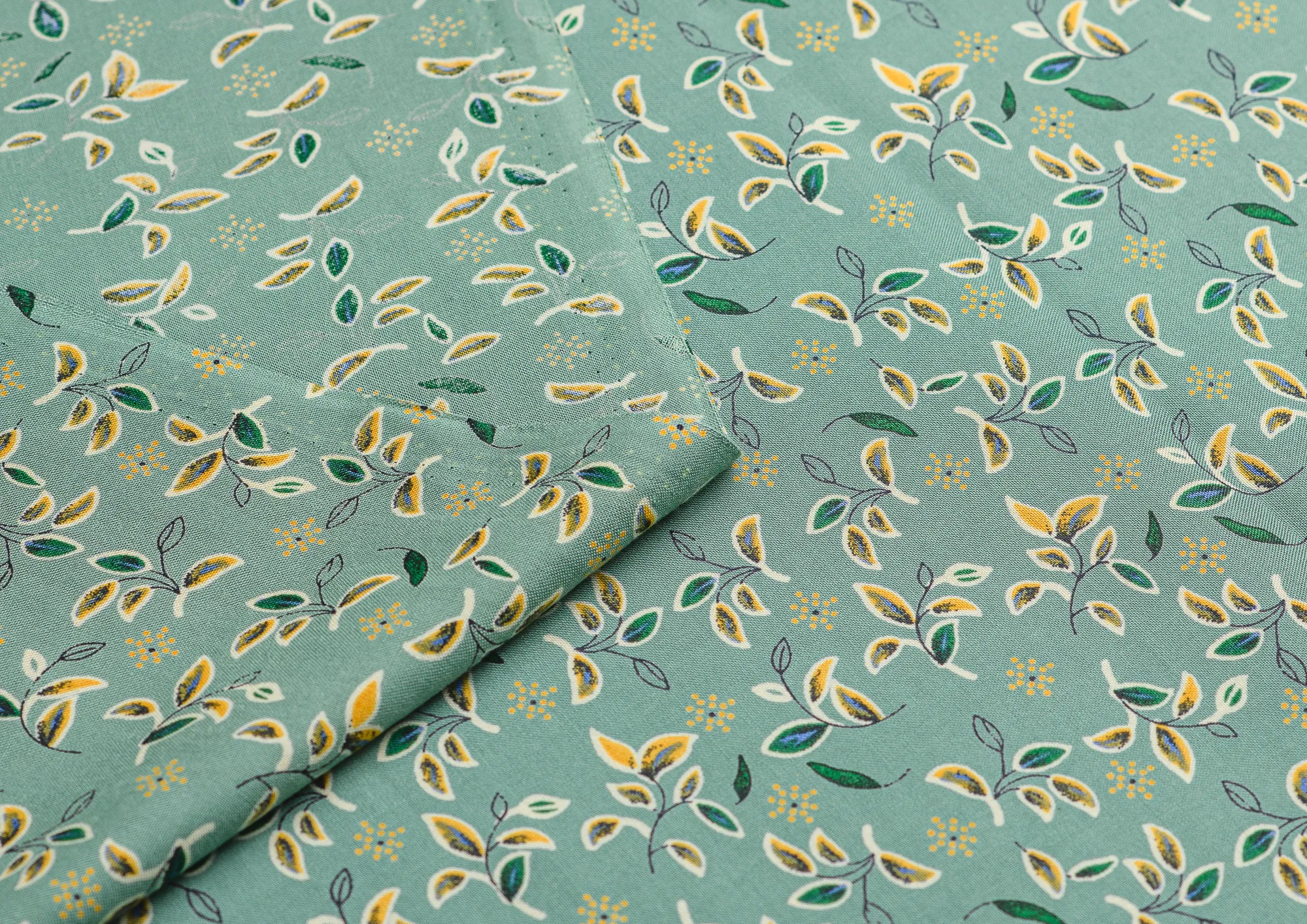 Ткань Штапель Принт листочки на зеленом