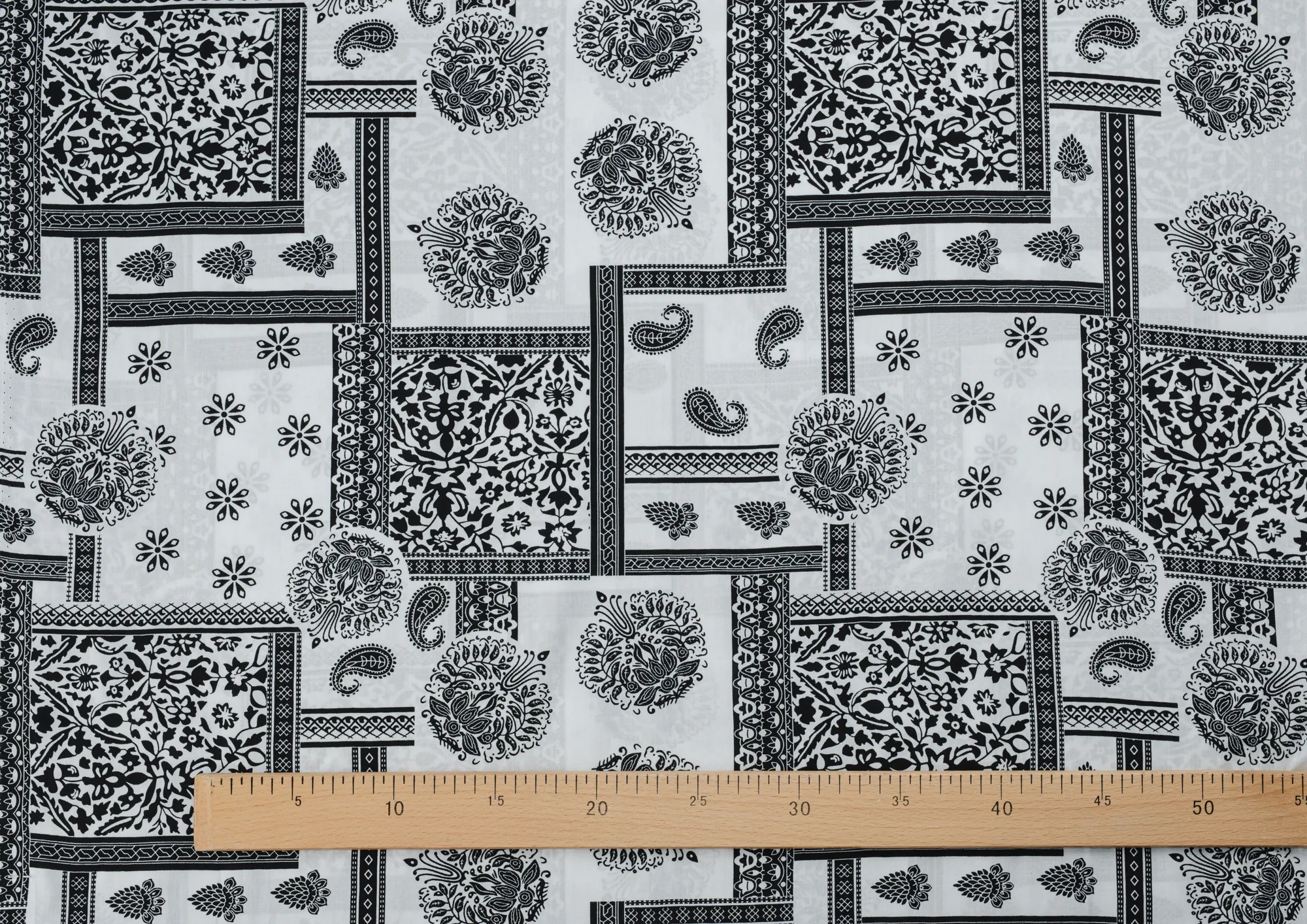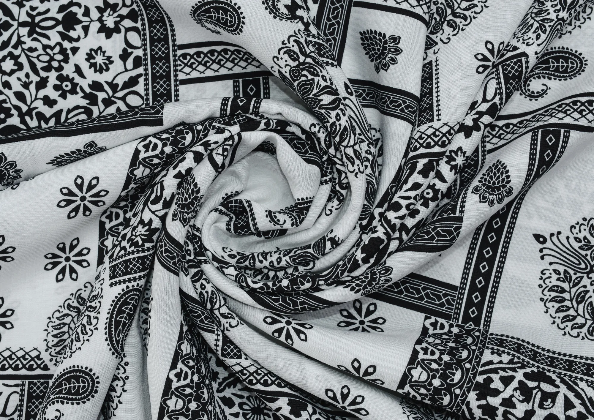 Легкая, мягкая, приятная на ощупь ткань. Поверхность шелковистая. По всей поверхности расположен равномерно принт. Ткань воздухопроницаемая, хорошо подходит для жаркой погоды. Отлично драпируется, образовывая мягкие складки. Подходит для пошива платьев, сарафанов, халатов, юбок,