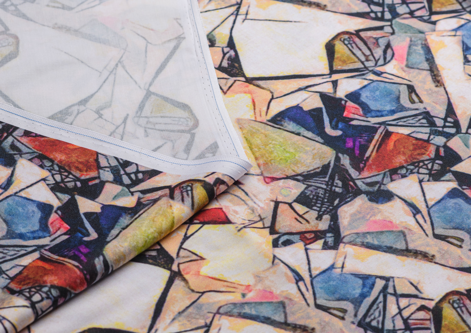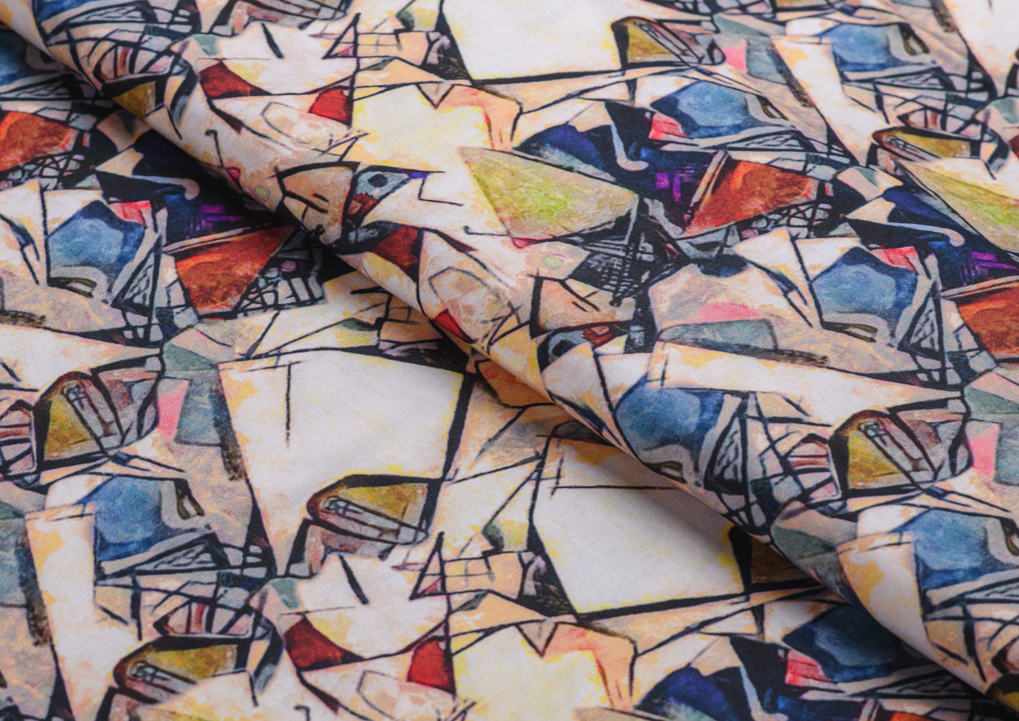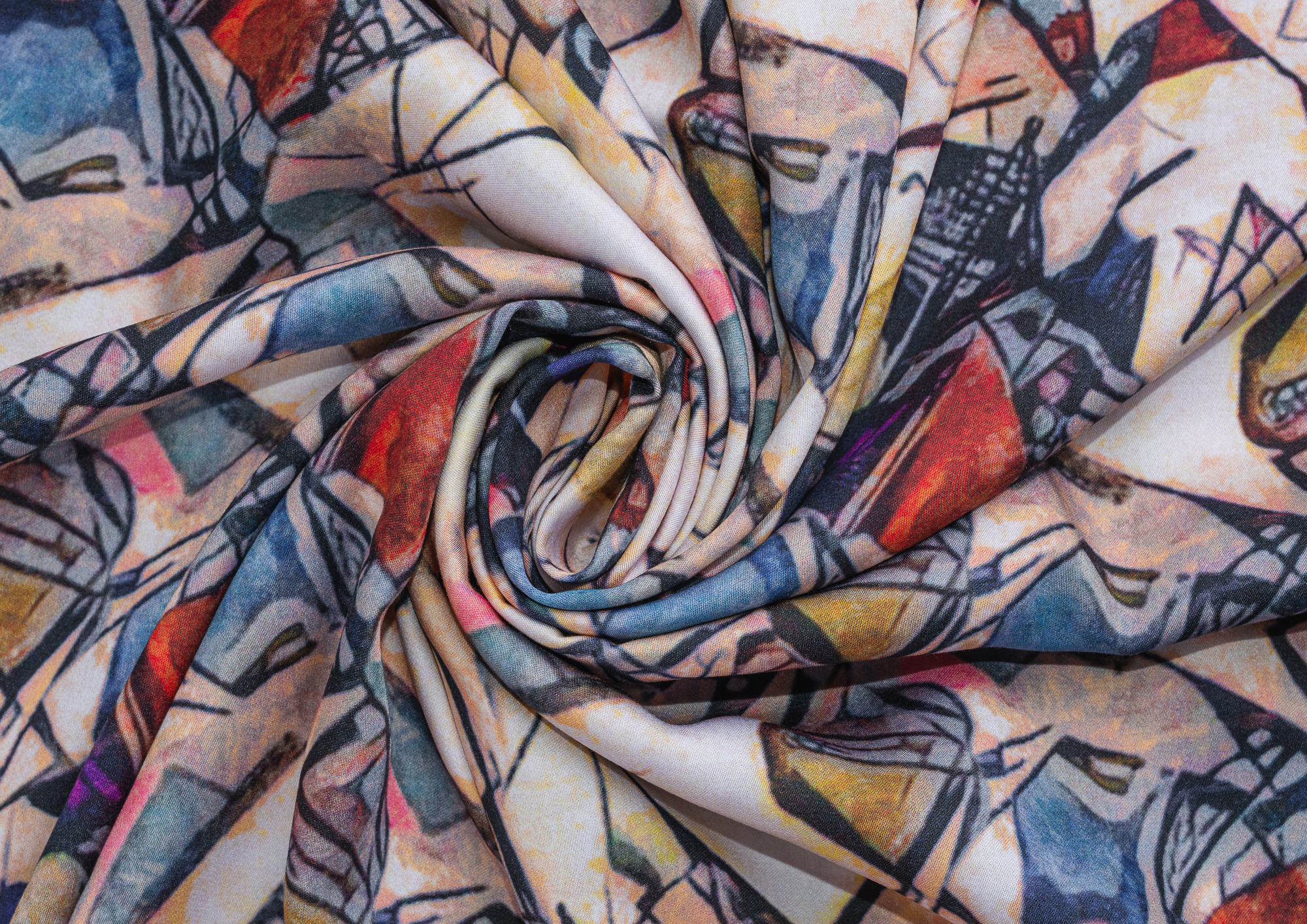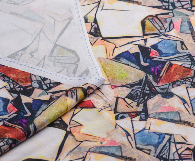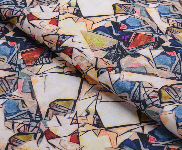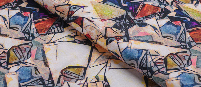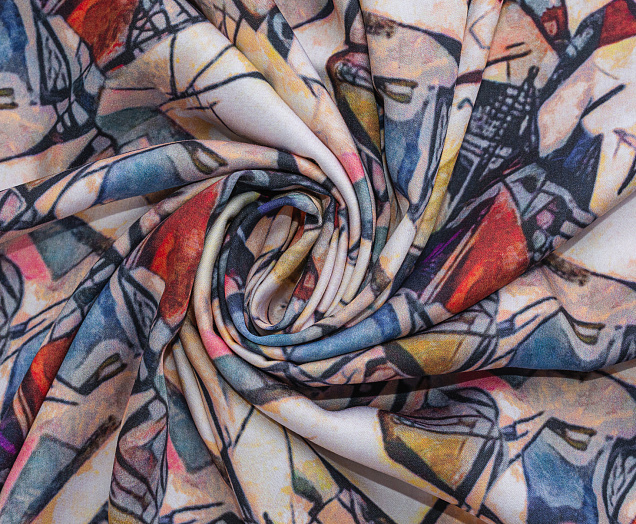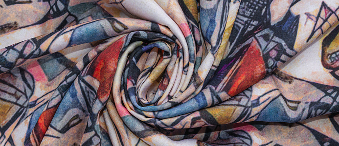 Легкая, мягкая, приятная на ощупь ткань. Поверхность шелковистая. По всей поверхности ткани расположен принт. Ткань воздухопроницаемая, хорошо подходит для жаркой погоды. Отлично драпируется, образовывая мягкие складки. Подходит для пошива платьев, сарафанов, халатов, юбок.