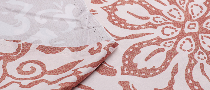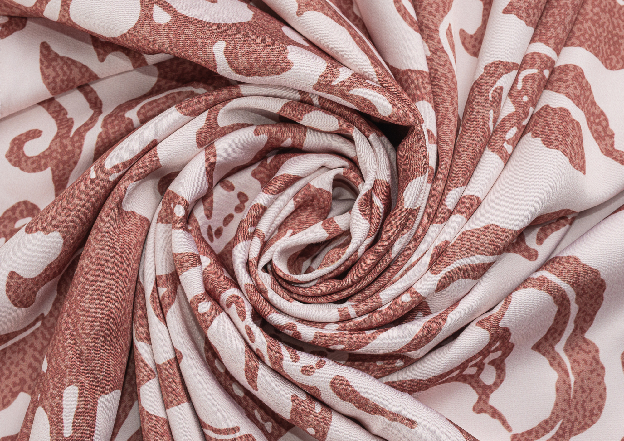 Легкая, мягкая, приятная на ощупь ткань. Поверхность шелковистая. По всей поверхности ткани расположен принт. Ткань воздухопроницаемая, хорошо подходит для жаркой погоды. Отлично драпируется, образовывая мягкие складки. Подходит для пошива платьев, сарафанов, халатов, юбок.