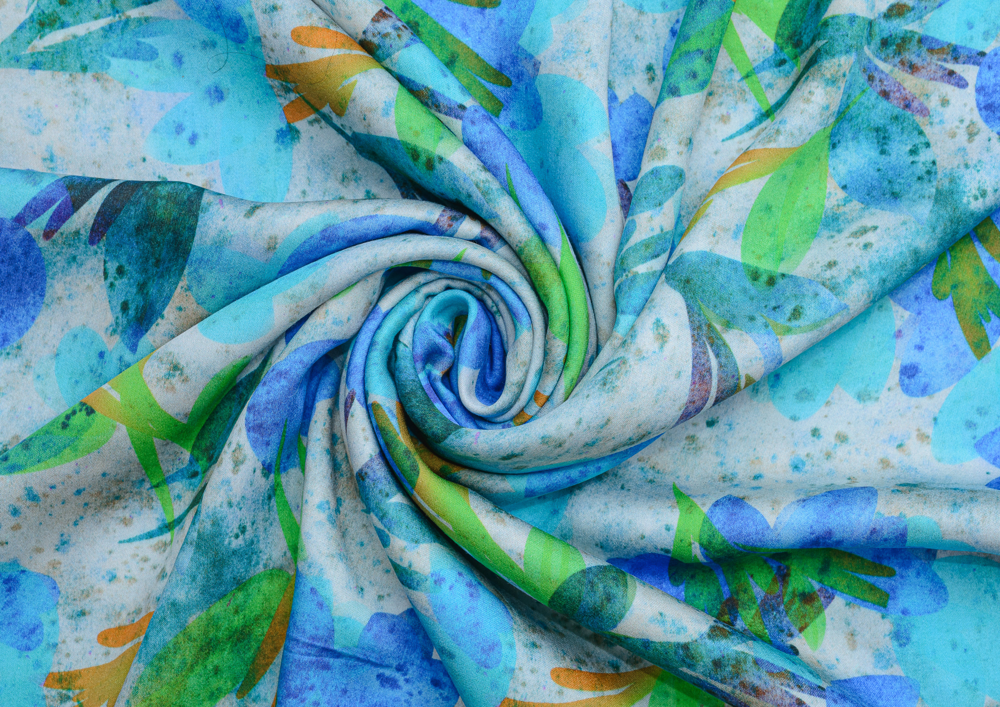 Легкая , мягкая , приятная на ощупь ткань . Поверхность шелковистая . По всей поверхности ткани расположен принт. Ткань воздухопроницаемая, хорошо подходит для жаркой погоды. Отлично драпируется , образовывая мягкие складки. Подходит для пошива платьев, сарафанов, халатов, юбок.