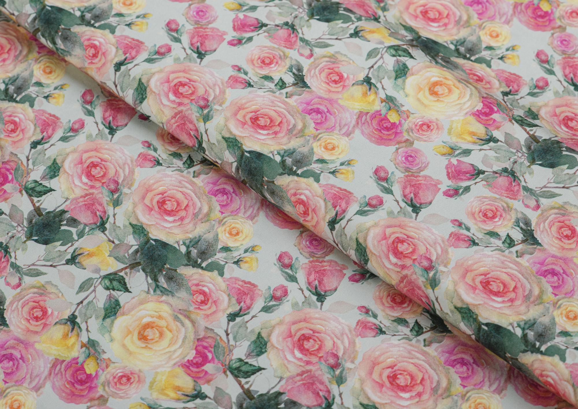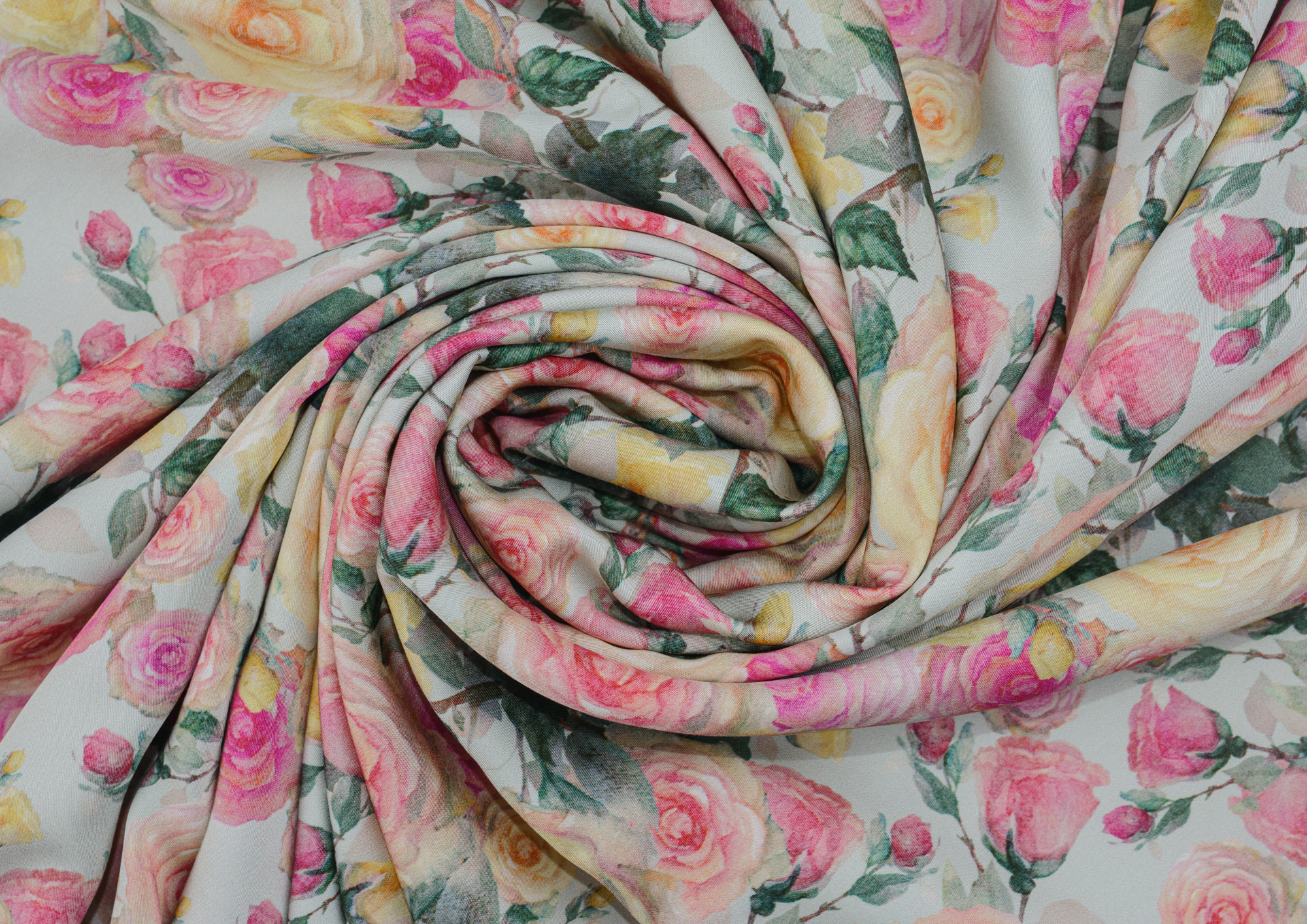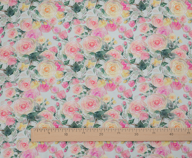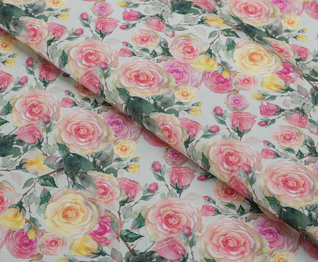 Ткань шёлковый штапель принт Розочка цв. оливковый