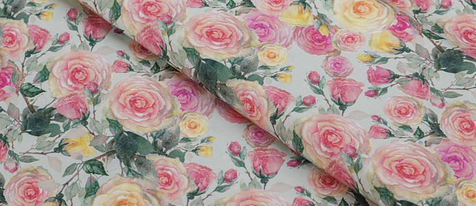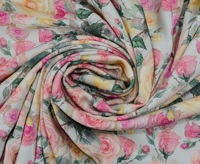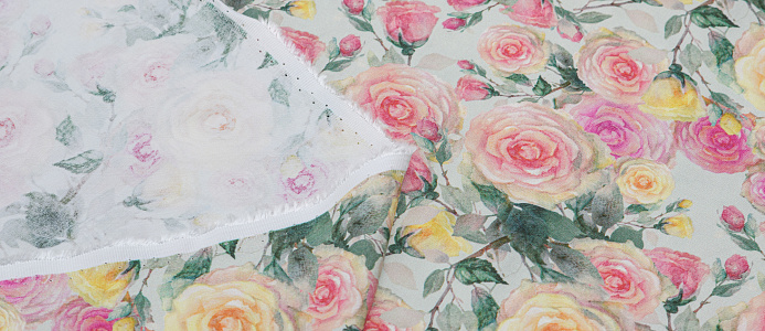 Легкая , мягкая , приятная на ощупь ткань . Поверхность шелковистая . По всей поверхности ткани расположен принт. Ткань воздухопроницаемая, хорошо подходит для жаркой погоды. Отлично драпируется , образовывая мягкие складки. Подходит для пошива платьев, сарафанов, халатов, юбок.