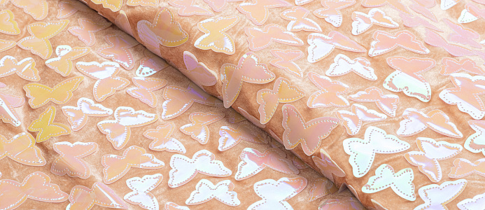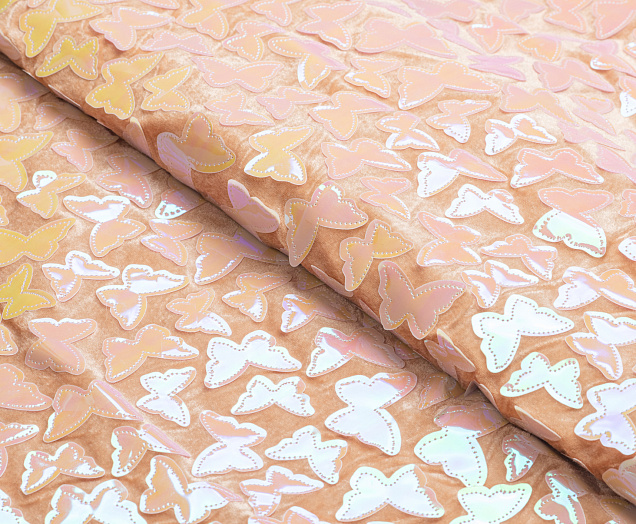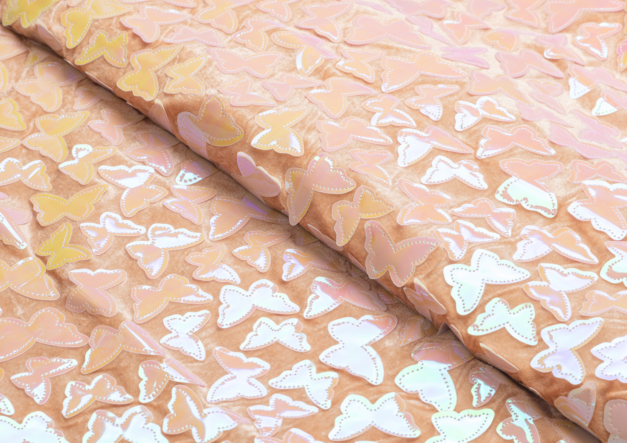 Ткань Бархат Галограмма Бабочки цв. светло розовый