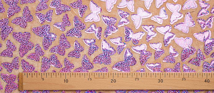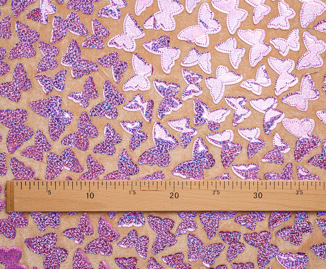 Ткань Бархат Галограмма Бабочки цв. ярко розовый