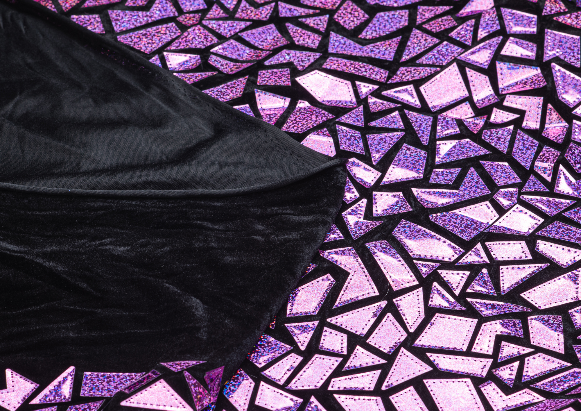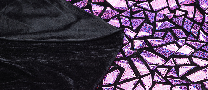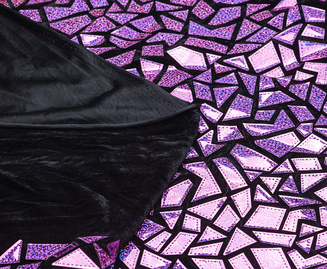 Коротковорсный бархат стрейч расшит галографическими фигурами . Ткань подходит для пошива вечерних и новогодних костюмов , а так же для изготовления стильных аксессуаров.Ширина 160 см  Ширина расшитая фигурами 130 см