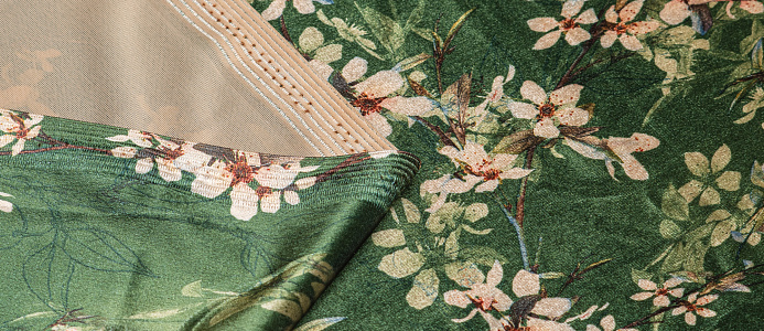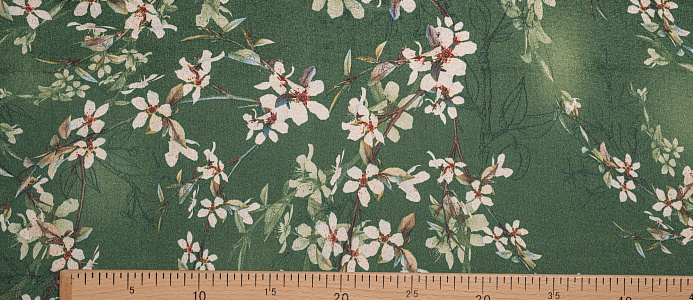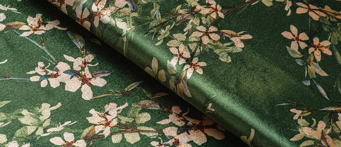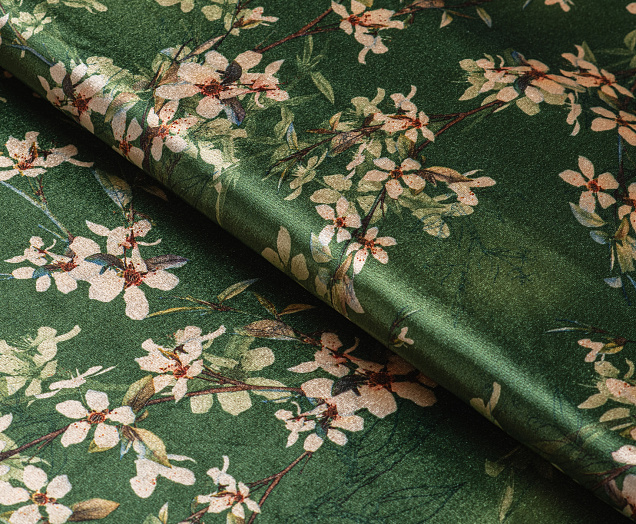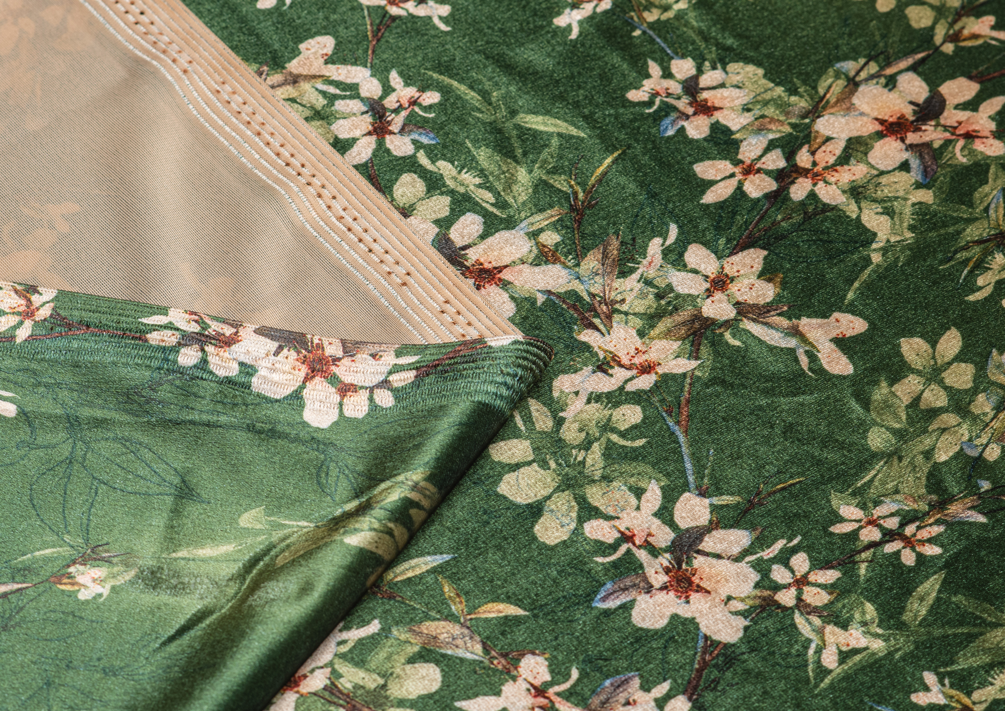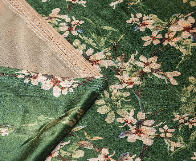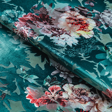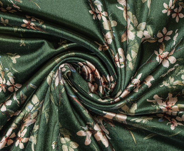 Ткань бархат принт цв. зеленый/мелкий цветок