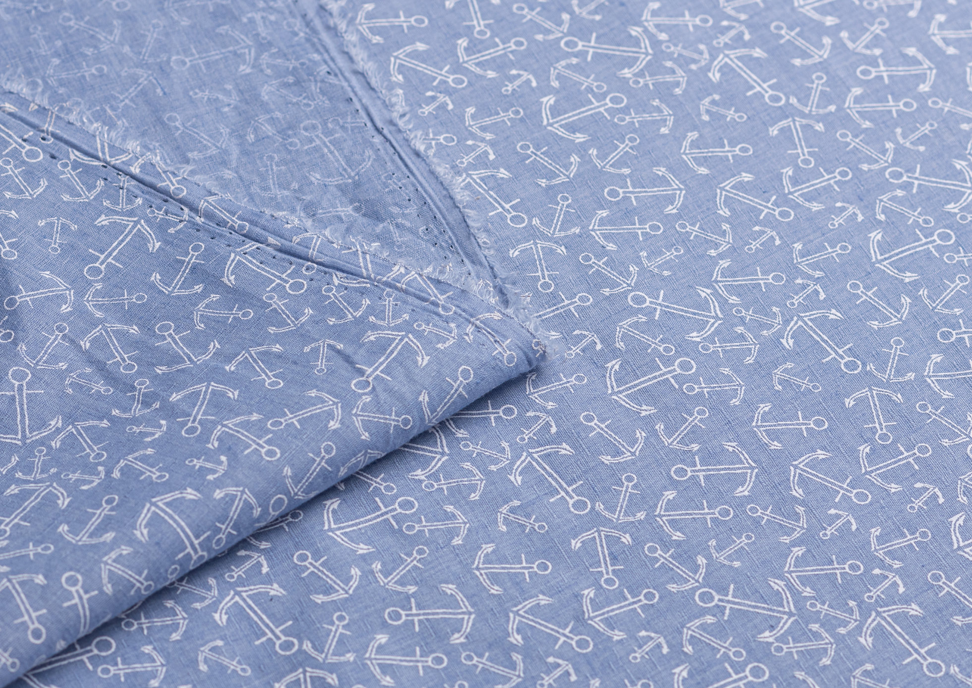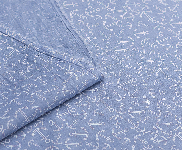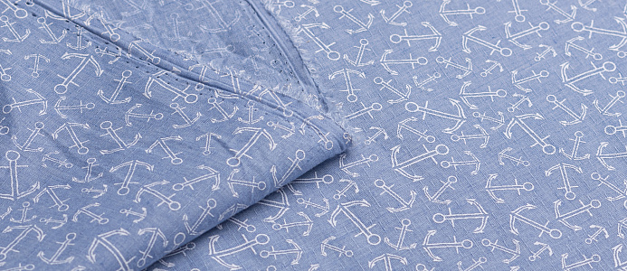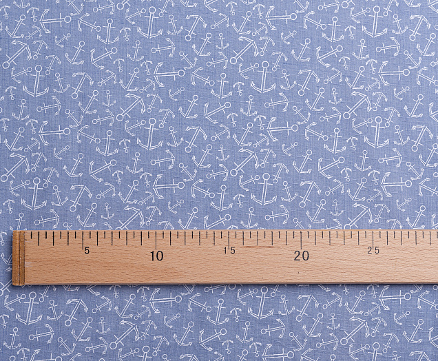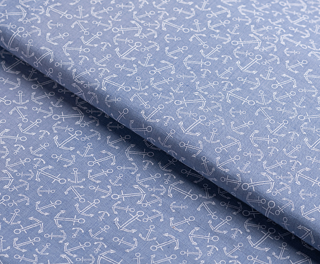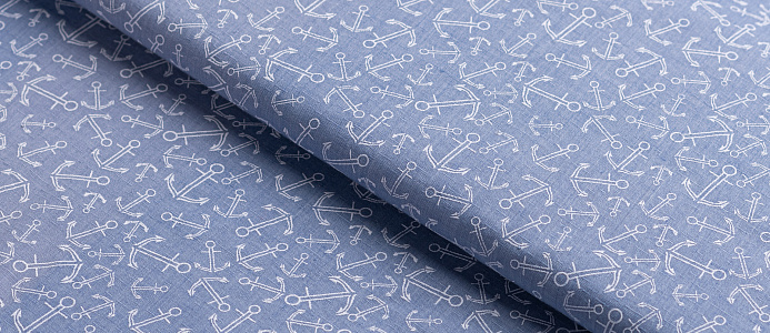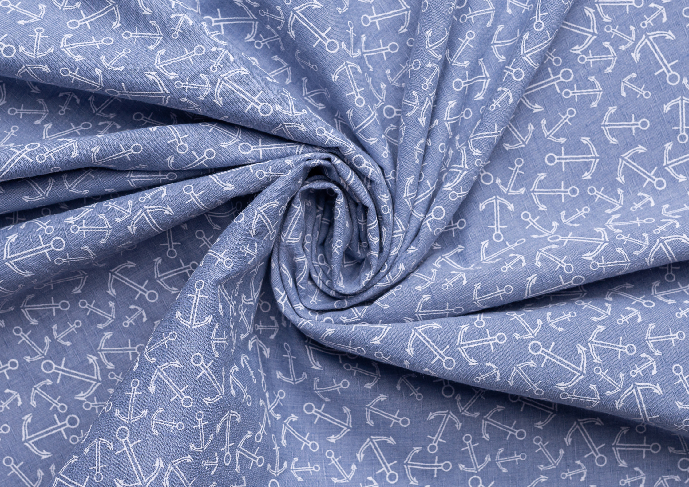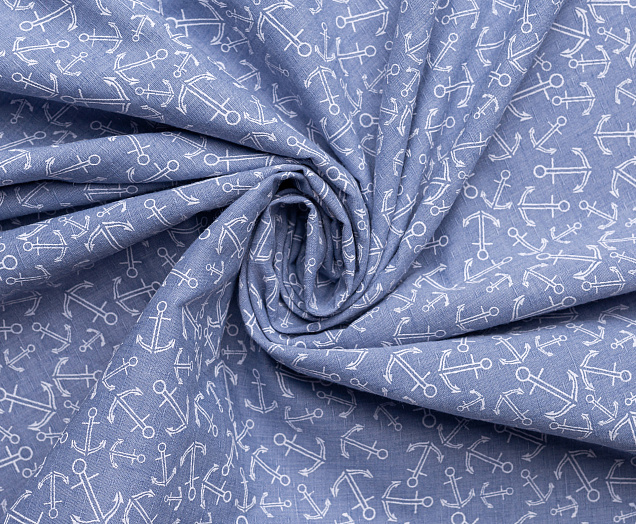 Ткань батист принт" Якоря " цв.№ 1 джинсовый