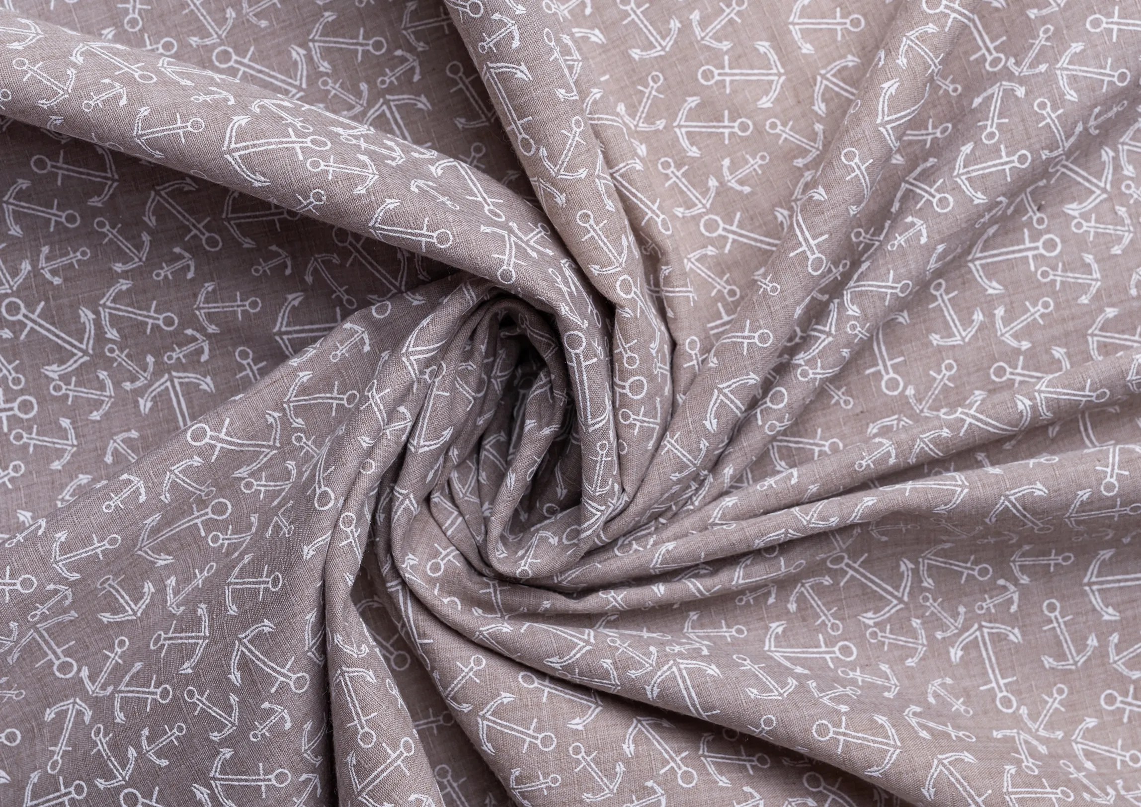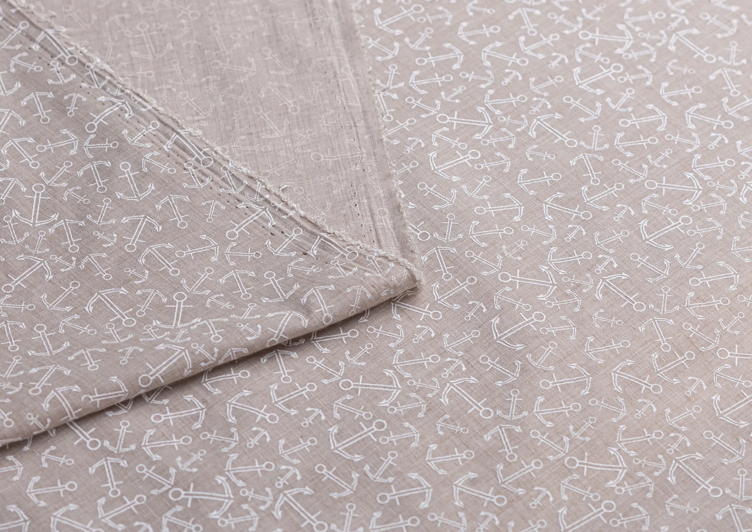 Ткань батист принт" Якоря " цв.№ 2 беж