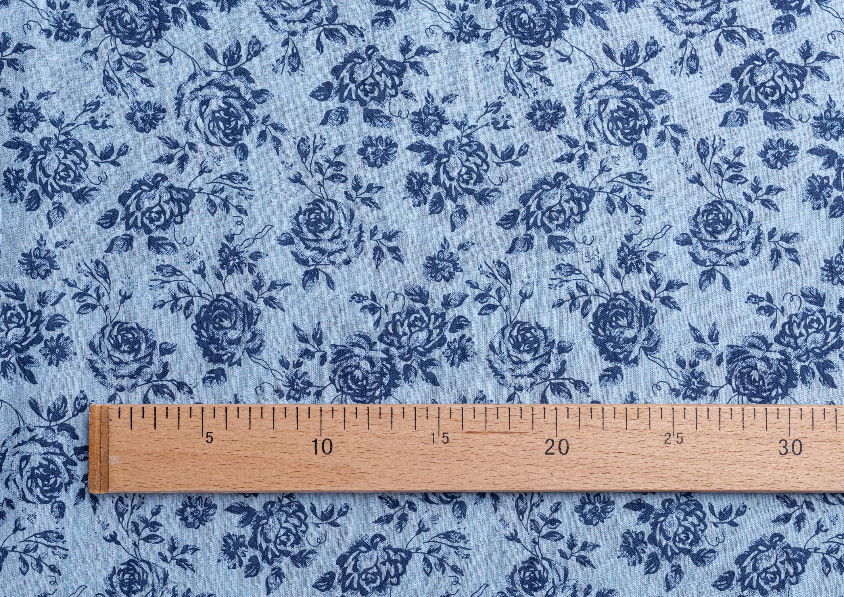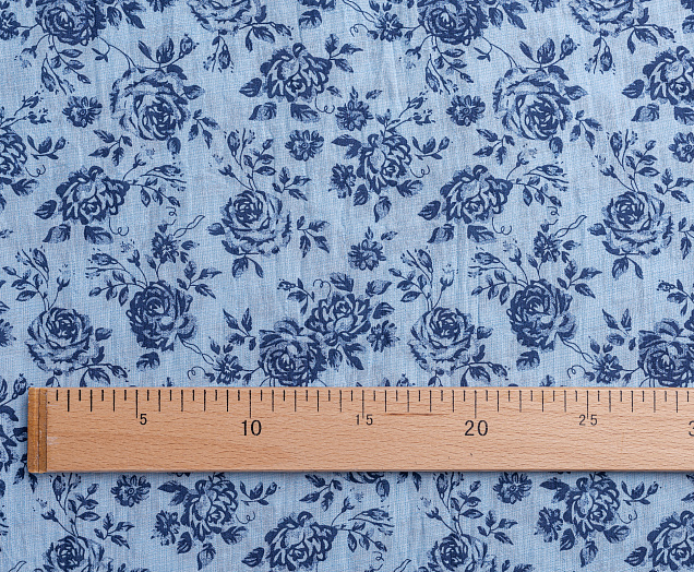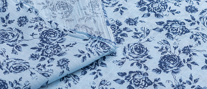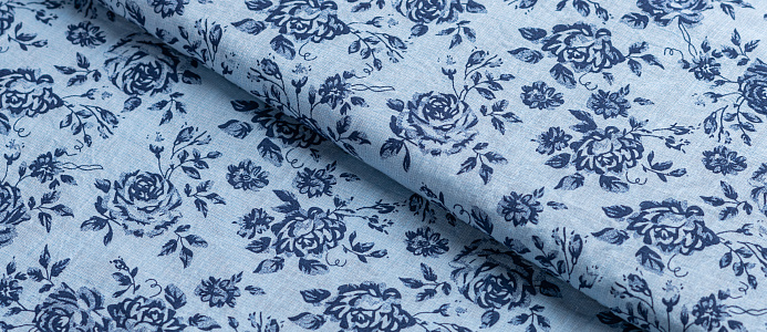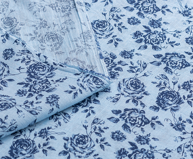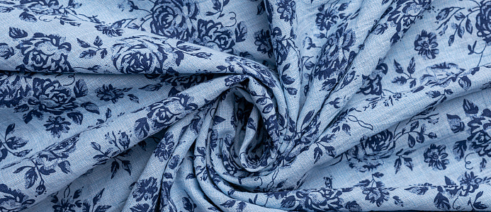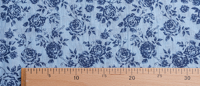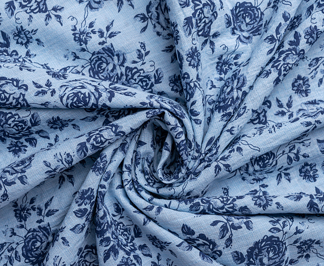 Ткань батитст "Крупные розочки" цв.голубой