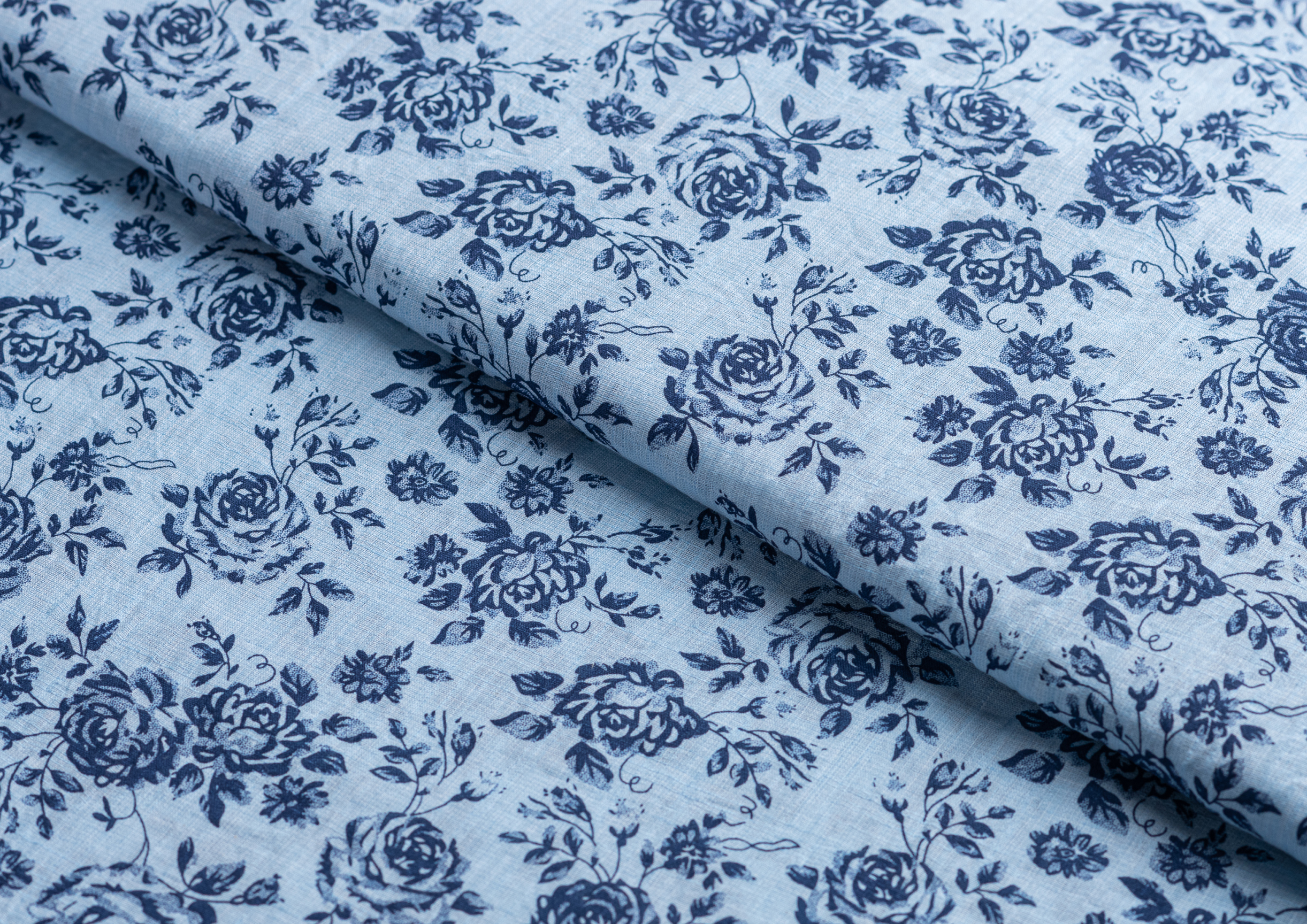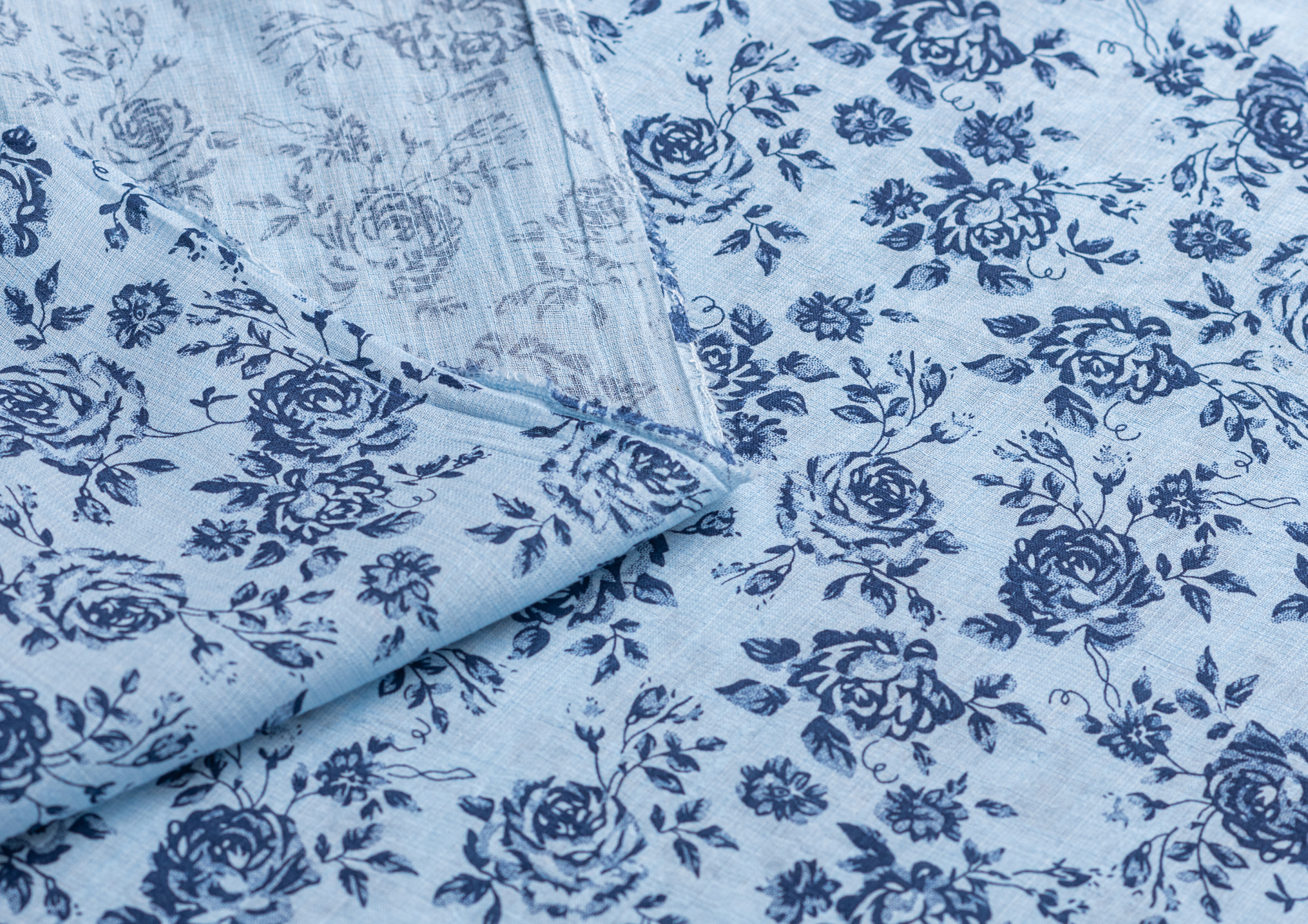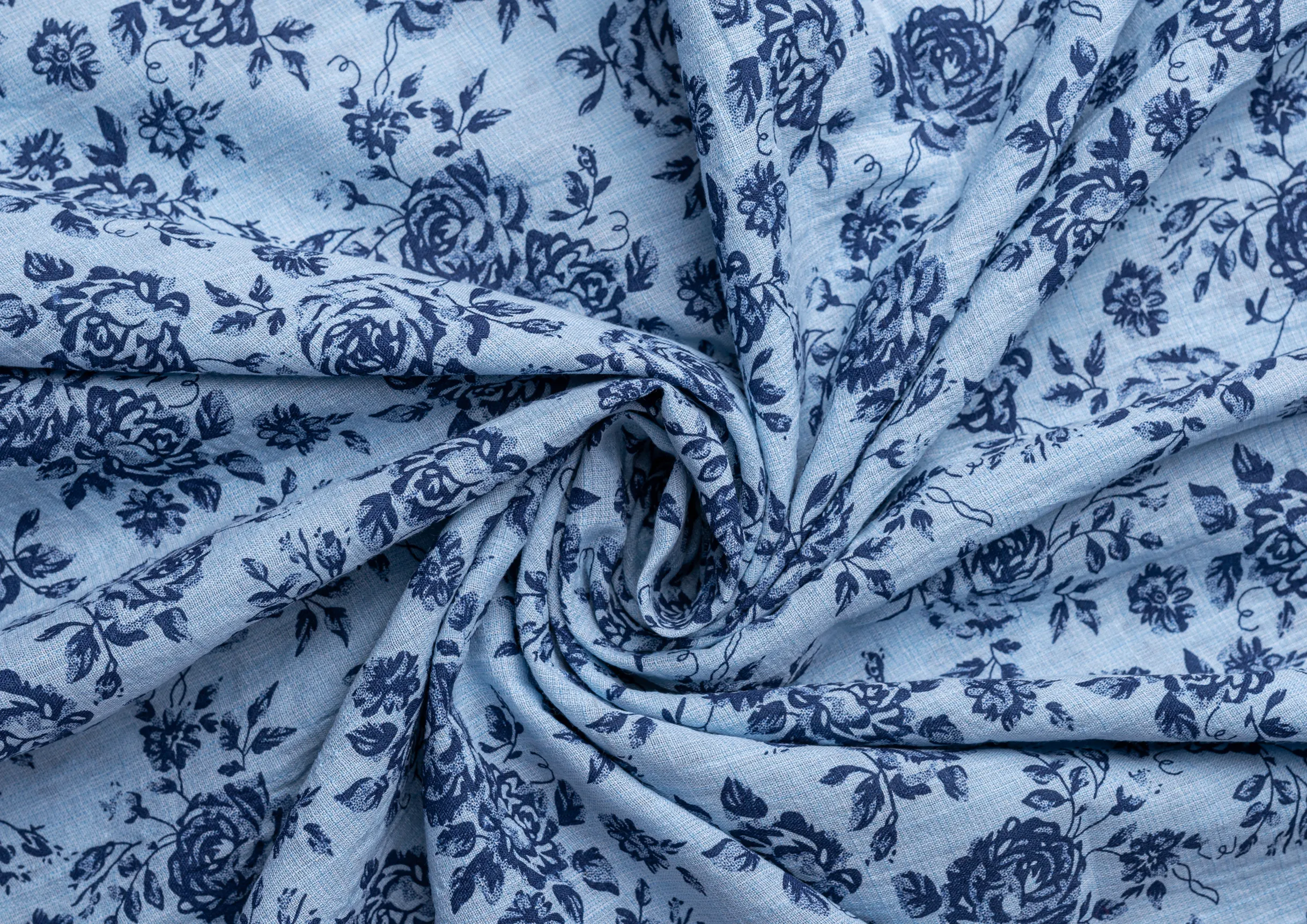 Ткань батитст "Крупные розочки" цв.голубой