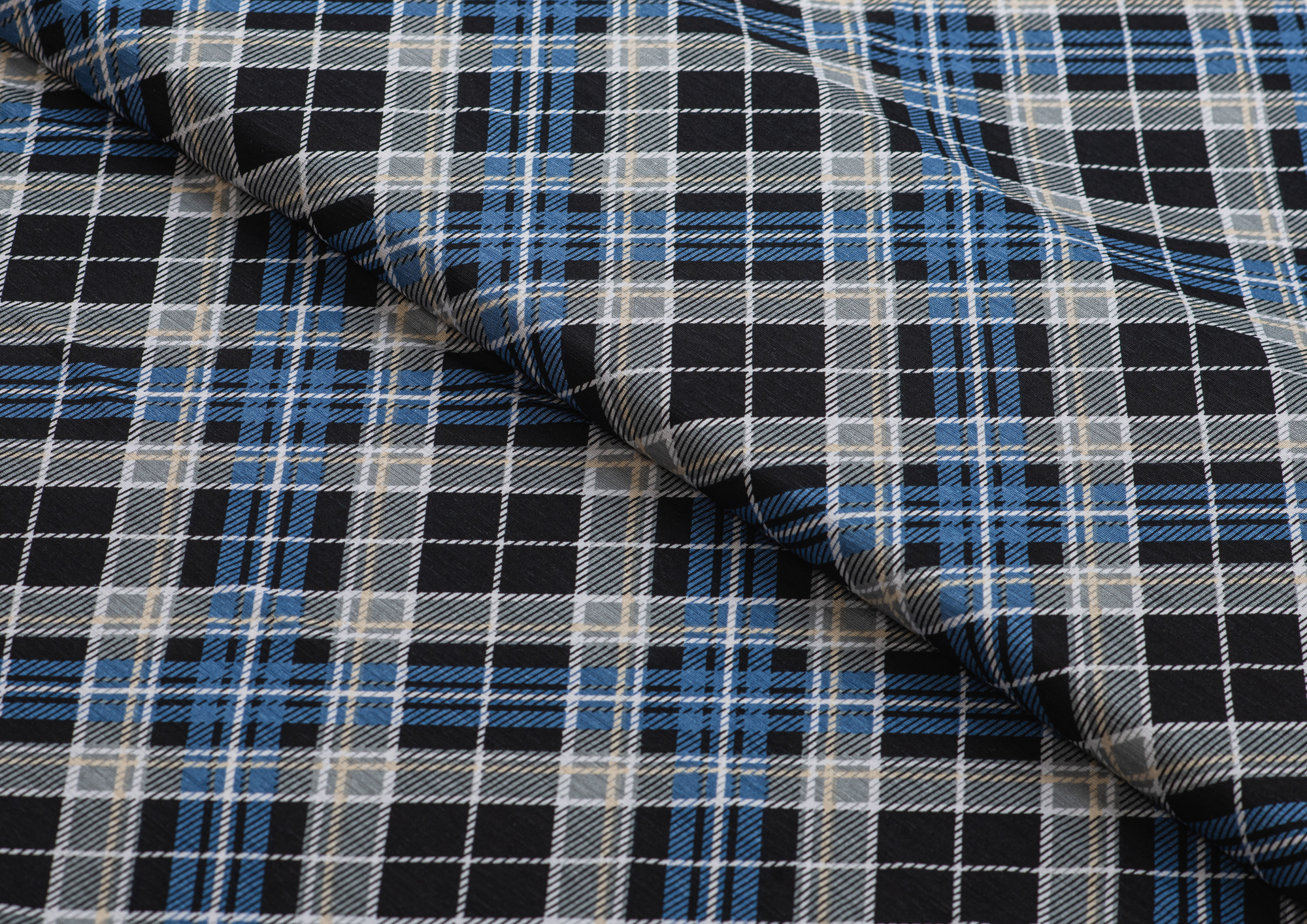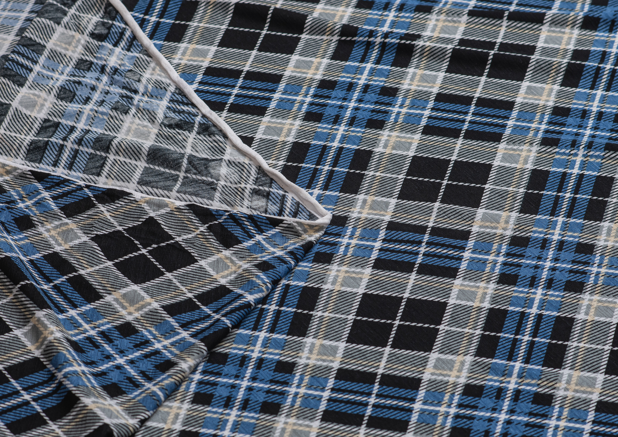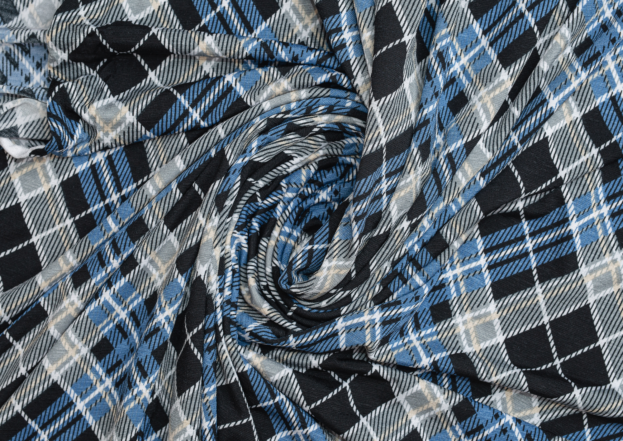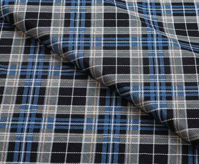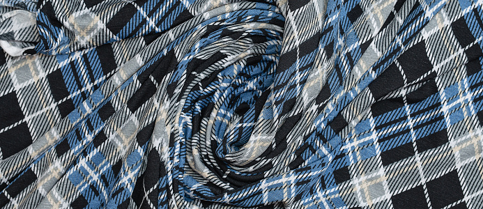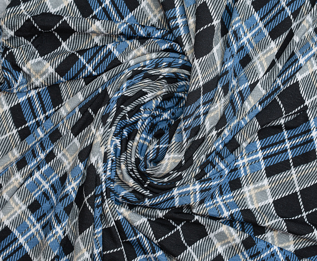 Тонкое , эластичное трикотажное полотно . По всей поверхности полотна расположен геометрический рисунок клеточки. Подходит для пошива домашних изделий , а так же платьев, блузок .