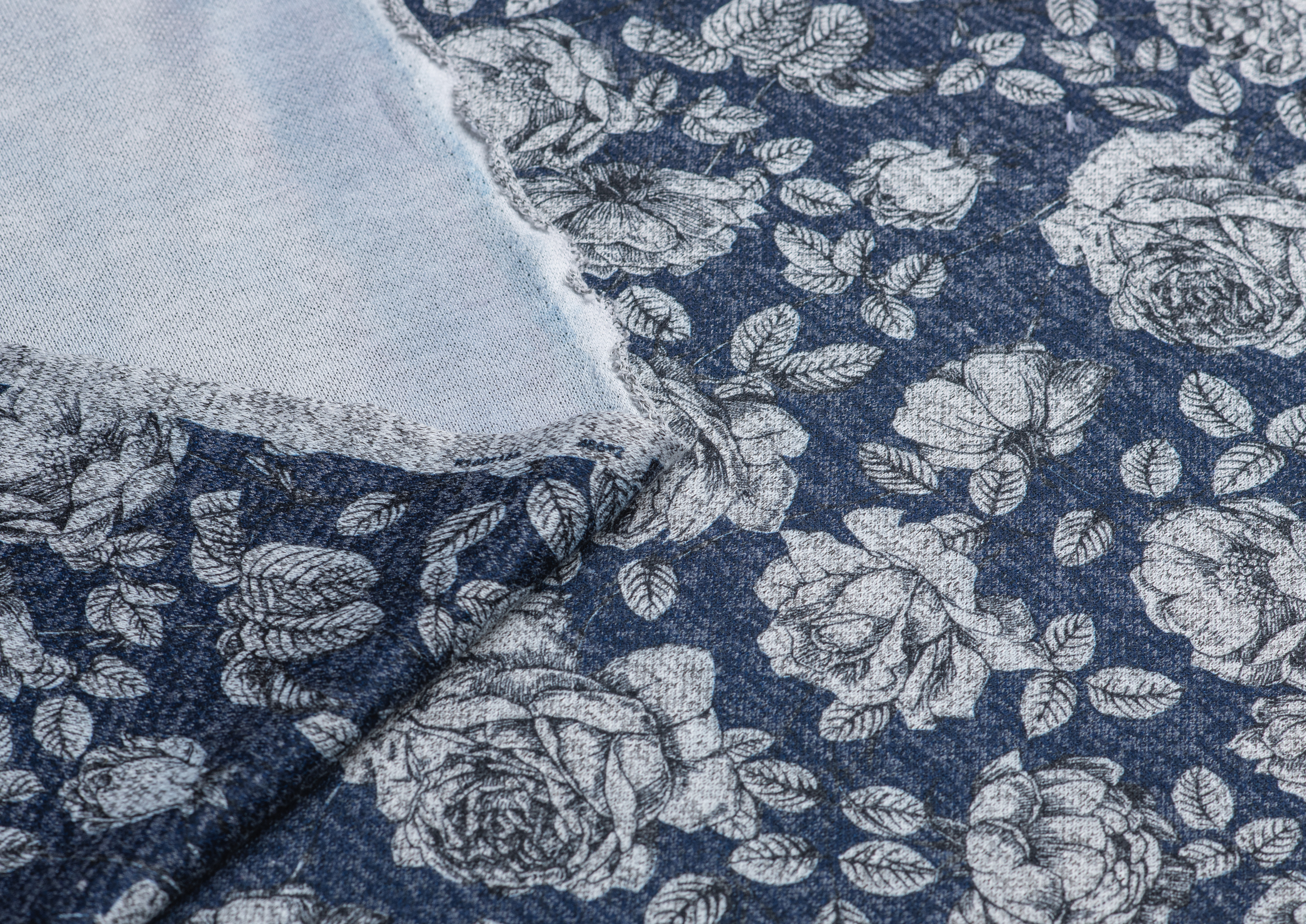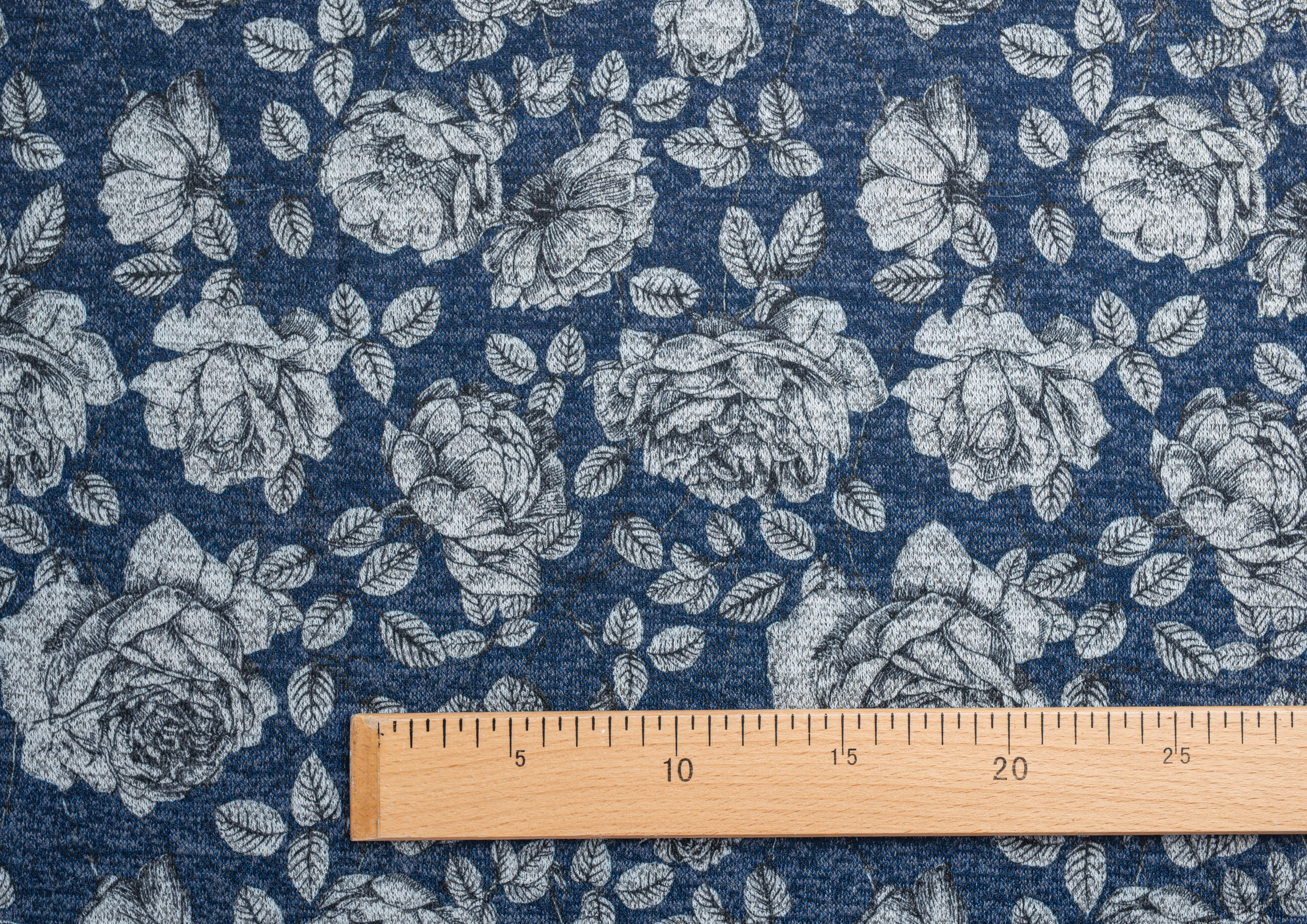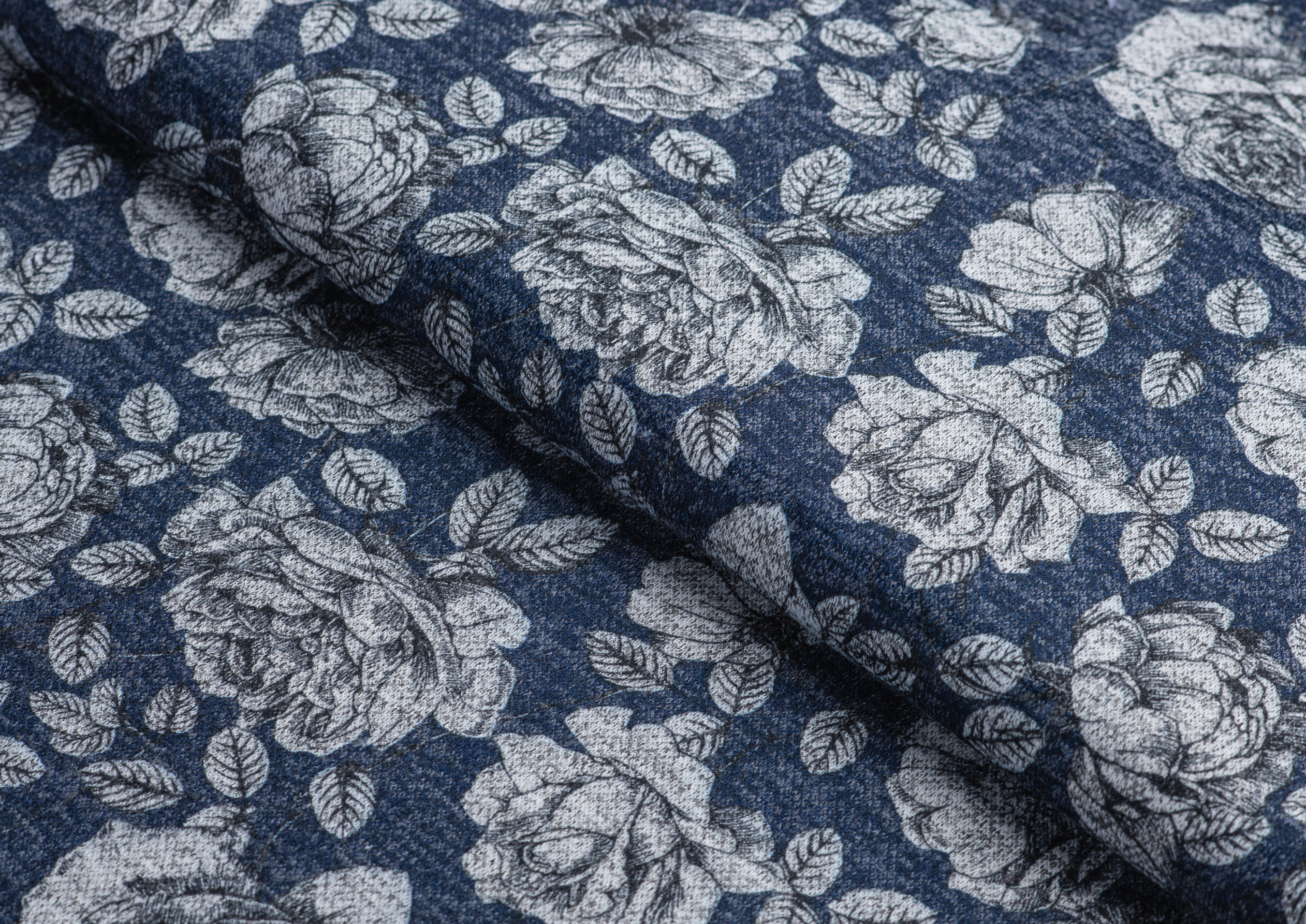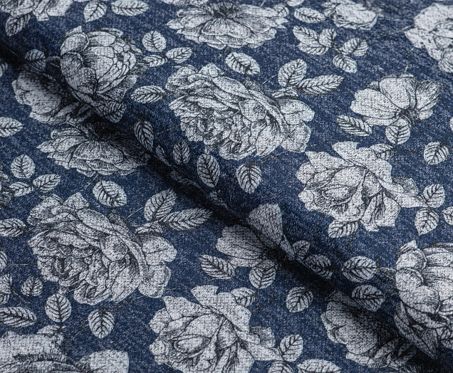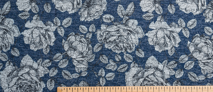 Ткань джерси Оксана принт № 11 "Пионы на синем "