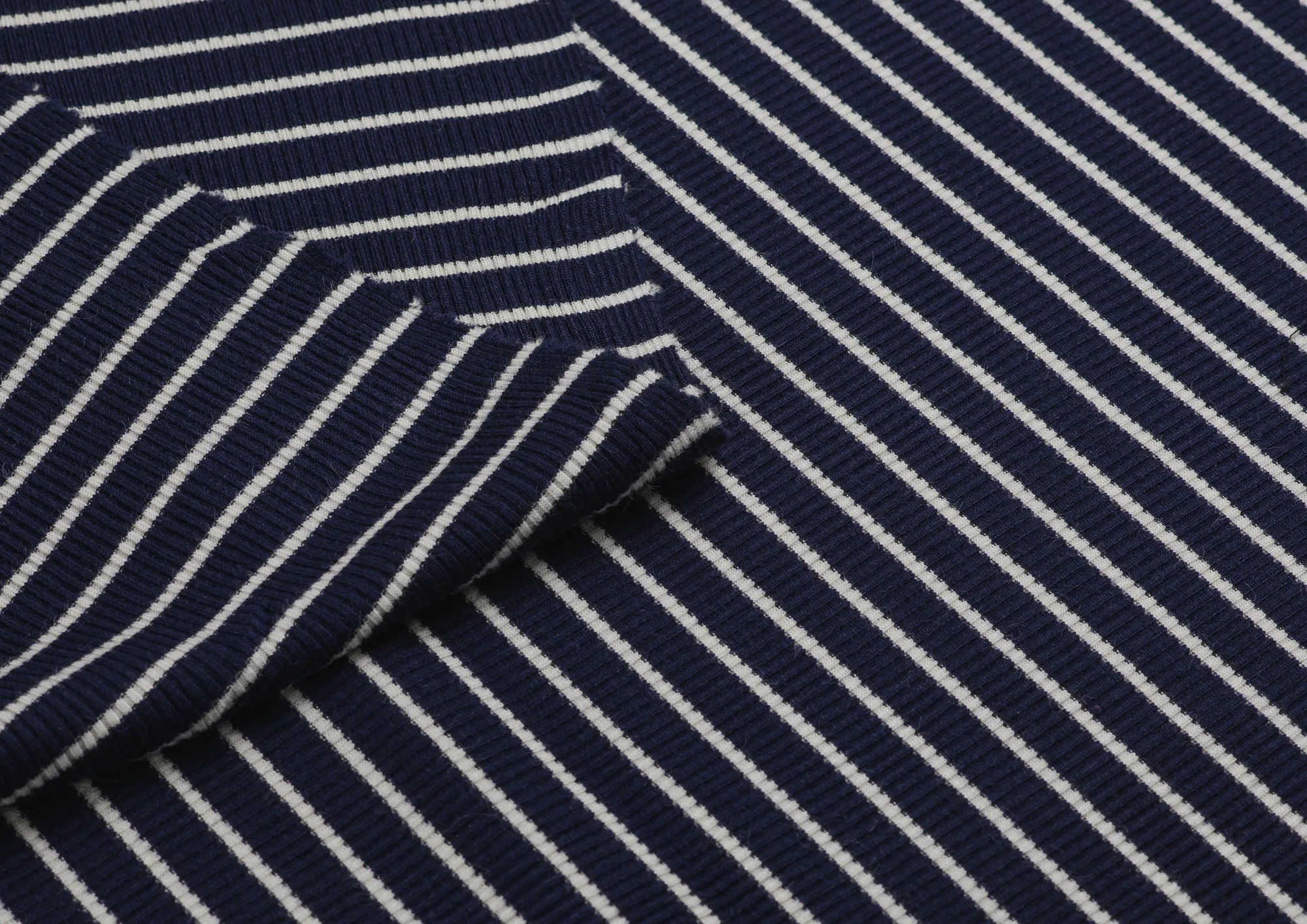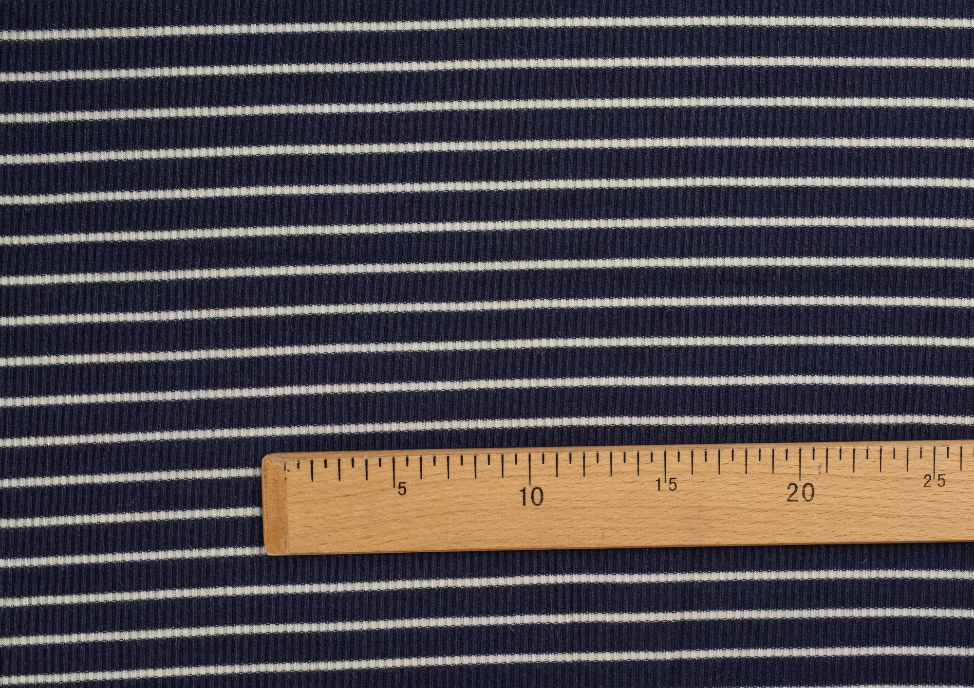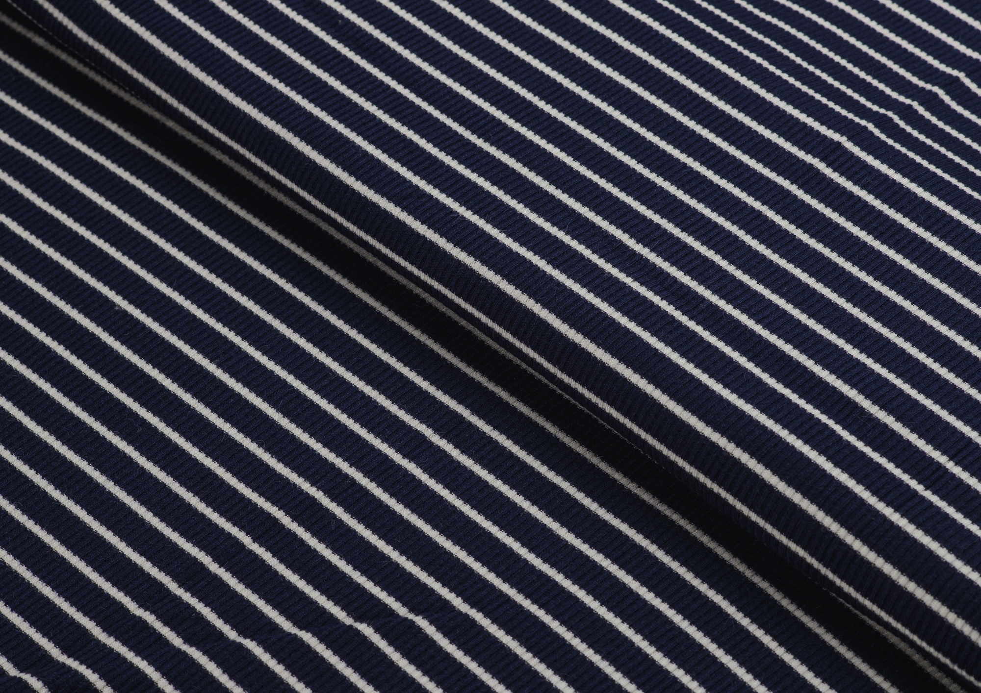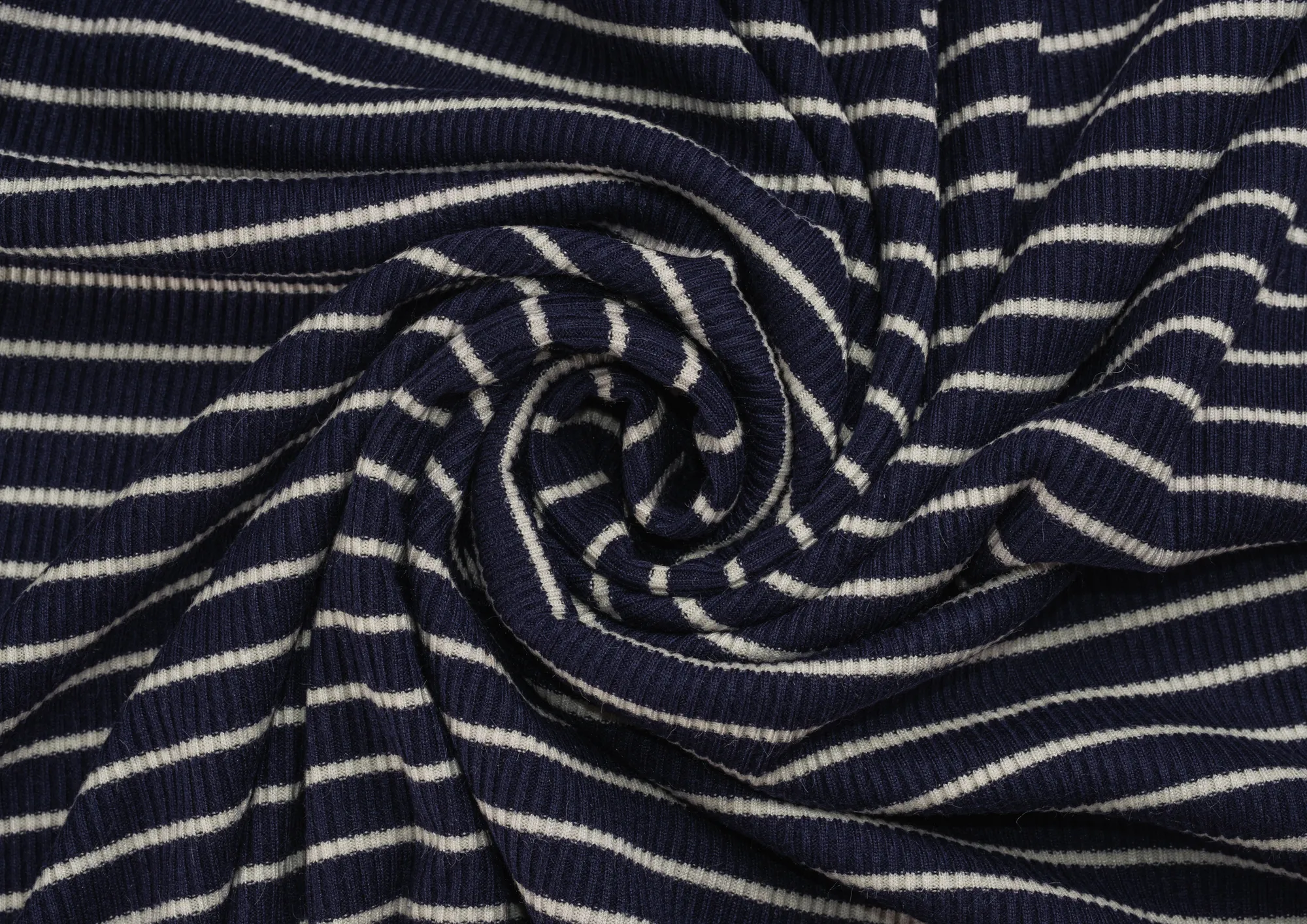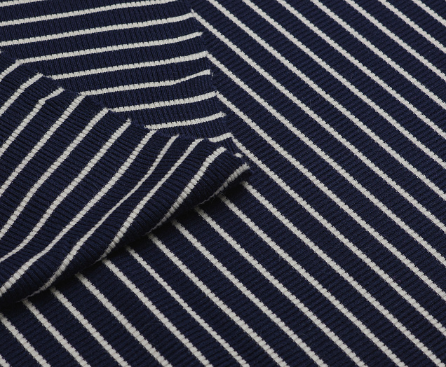 Костюмно-плательный трикотаж, поверхность матовая. Материал устойчив к деформации. По всему полотну расположен принт полоски. Ткань невероятно мягкая, приятная на ощупь. Отлично подходит для пошива платьев, юбок, жакетов, костюмов, брюк.                                                                              Плотность 515 гр/м.пог.