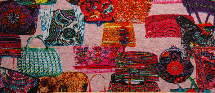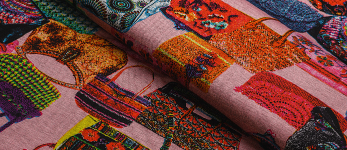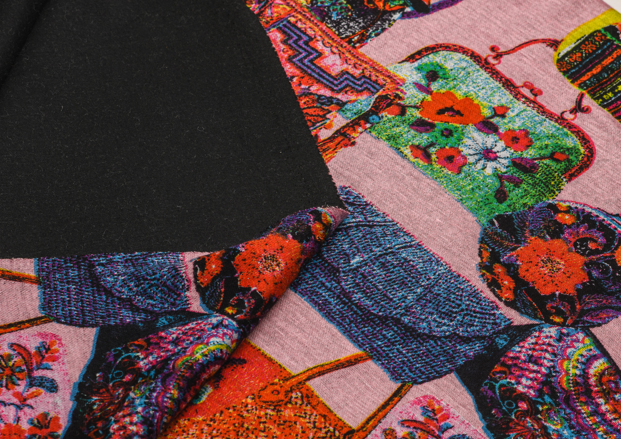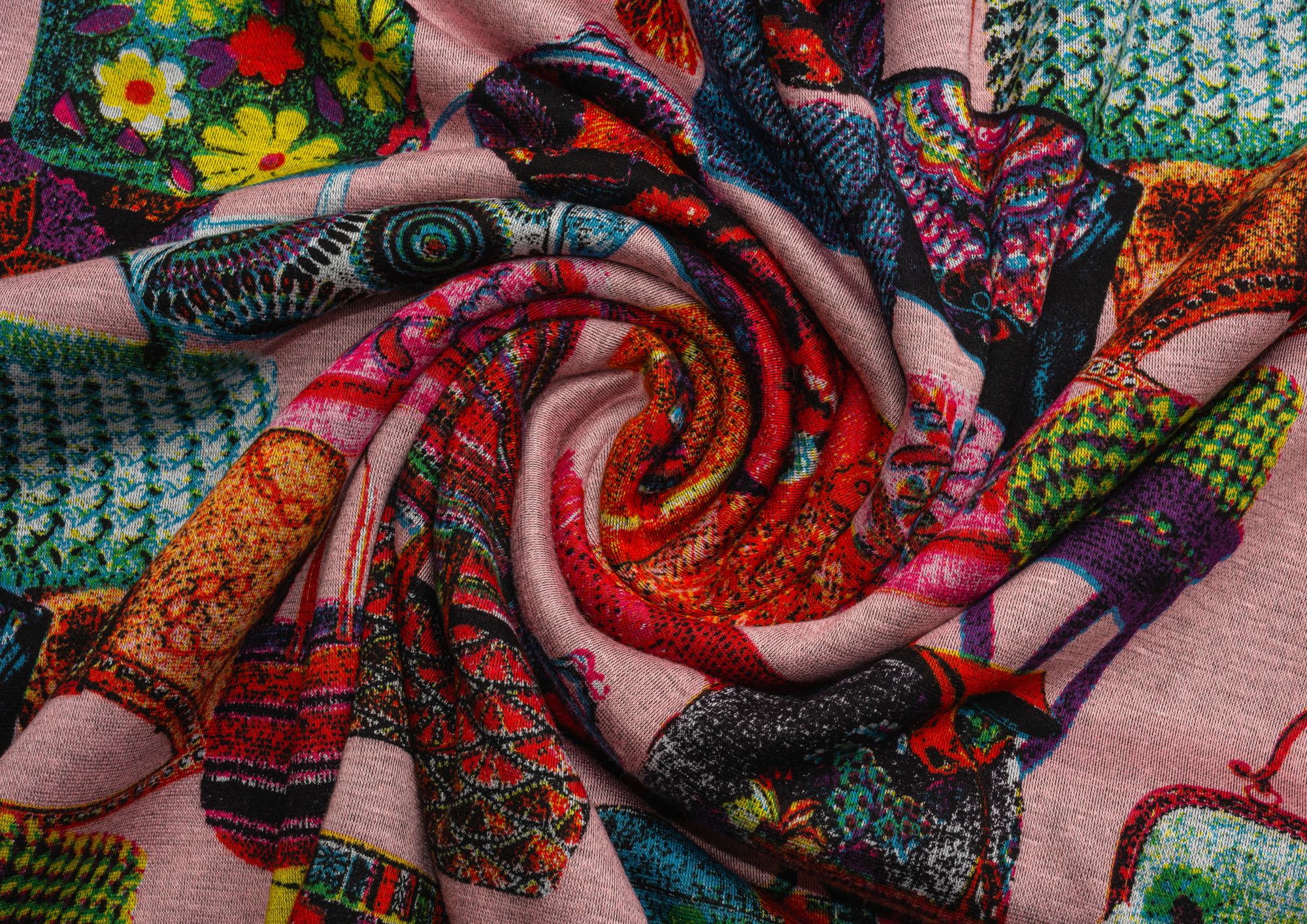 Эластичное трикотажное полотно. По всей поверхности полотна расположен принт. Подходит для пошива домашних изделий, а так же платьев, блузок.