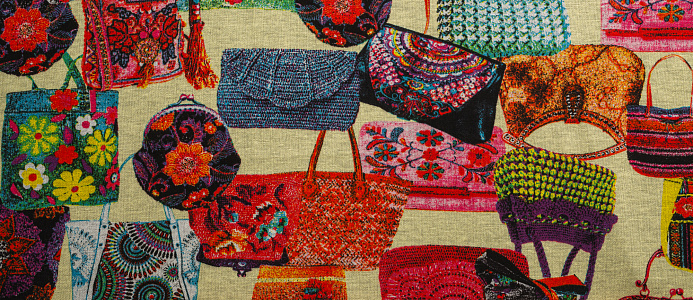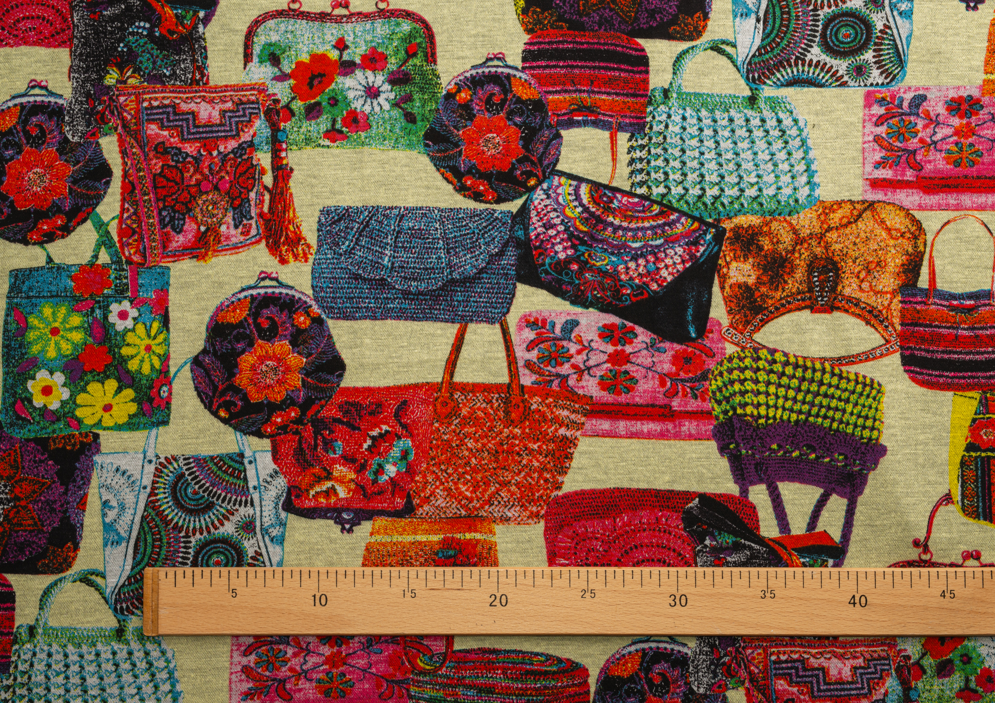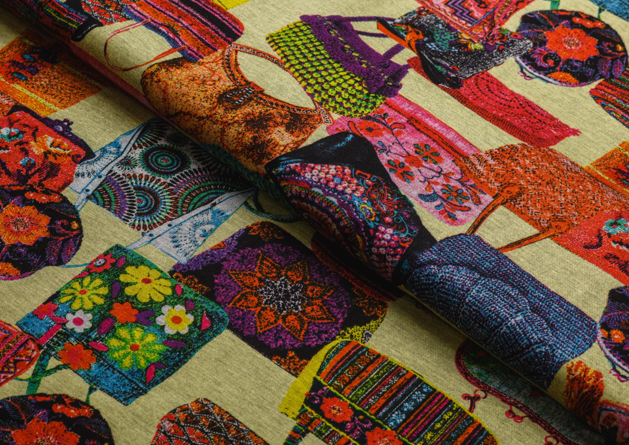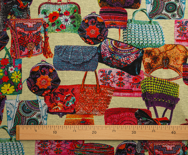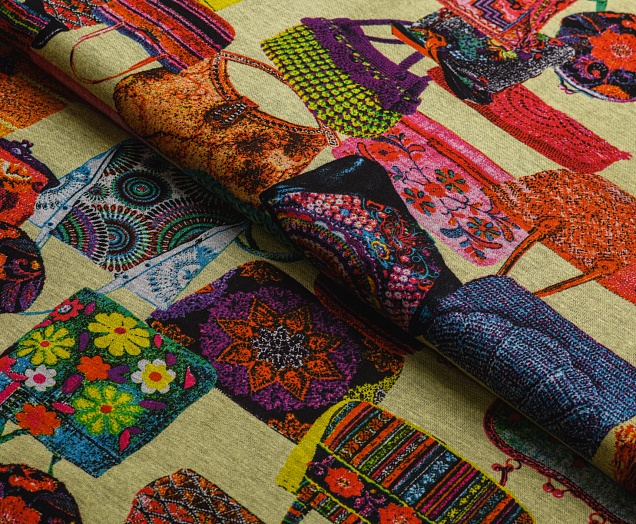 Ткань джерси "Сумочки" цв. желтый