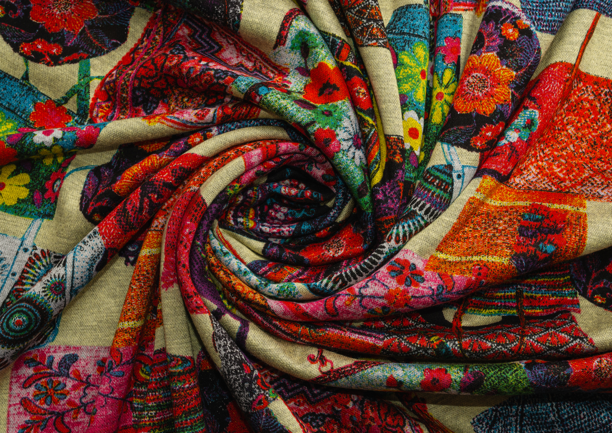 Эластичное трикотажное полотно. По всей поверхности полотна расположен принт. Подходит для пошива домашних изделий, а так же платьев, блузок.