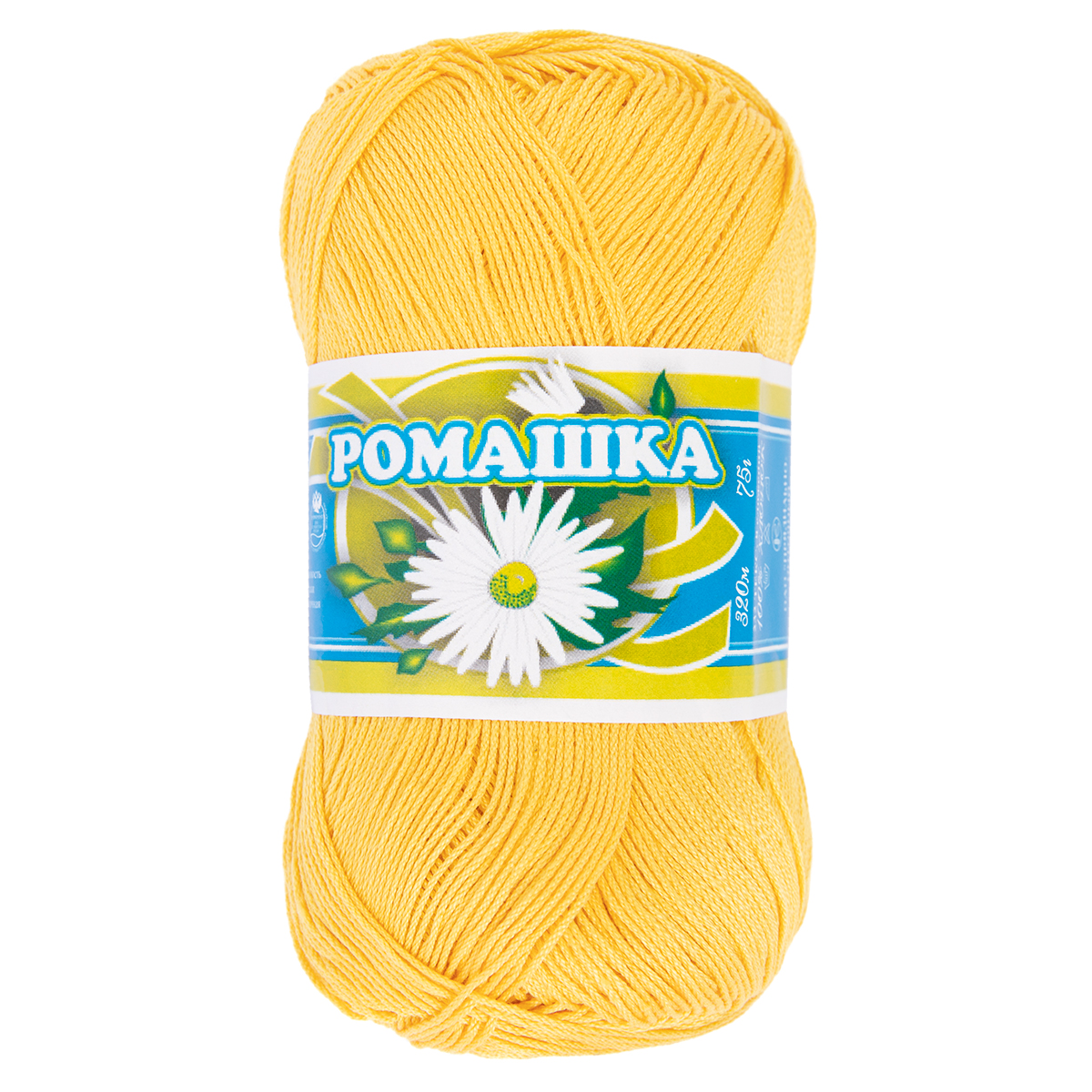 Мерсеризованные вязальные нитки "Ромашка" производятся из высокачественного тонковолокнистого хлопкового волокна, технология химической обработки - мерсеризация - придает ниткам блеск и яркость цветов, а также устойчивость к влажно-тепловой обработке. Используется для машинного и ручного вязания ажурного трикотажа, салфеток, воротничков.